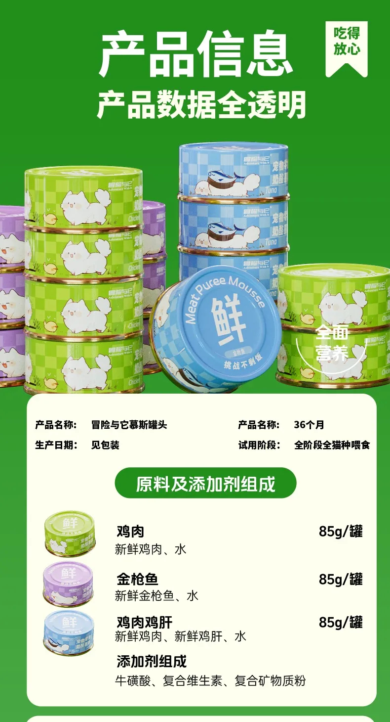冒险与它猫罐头85g猫咪零食罐成幼猫湿粮奶酪慕斯随机口味/罐