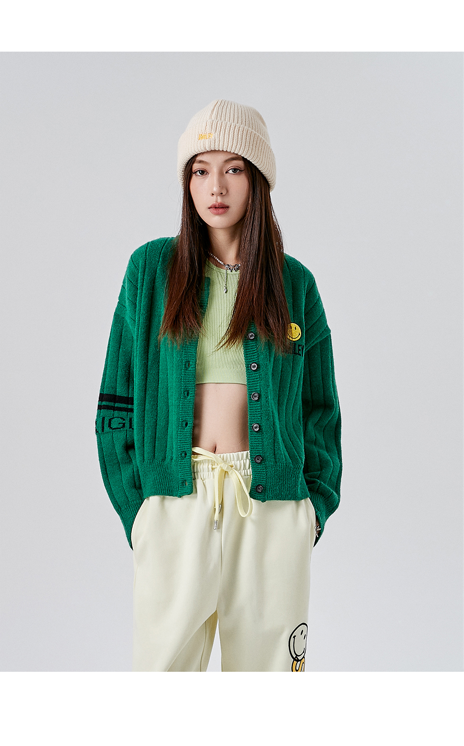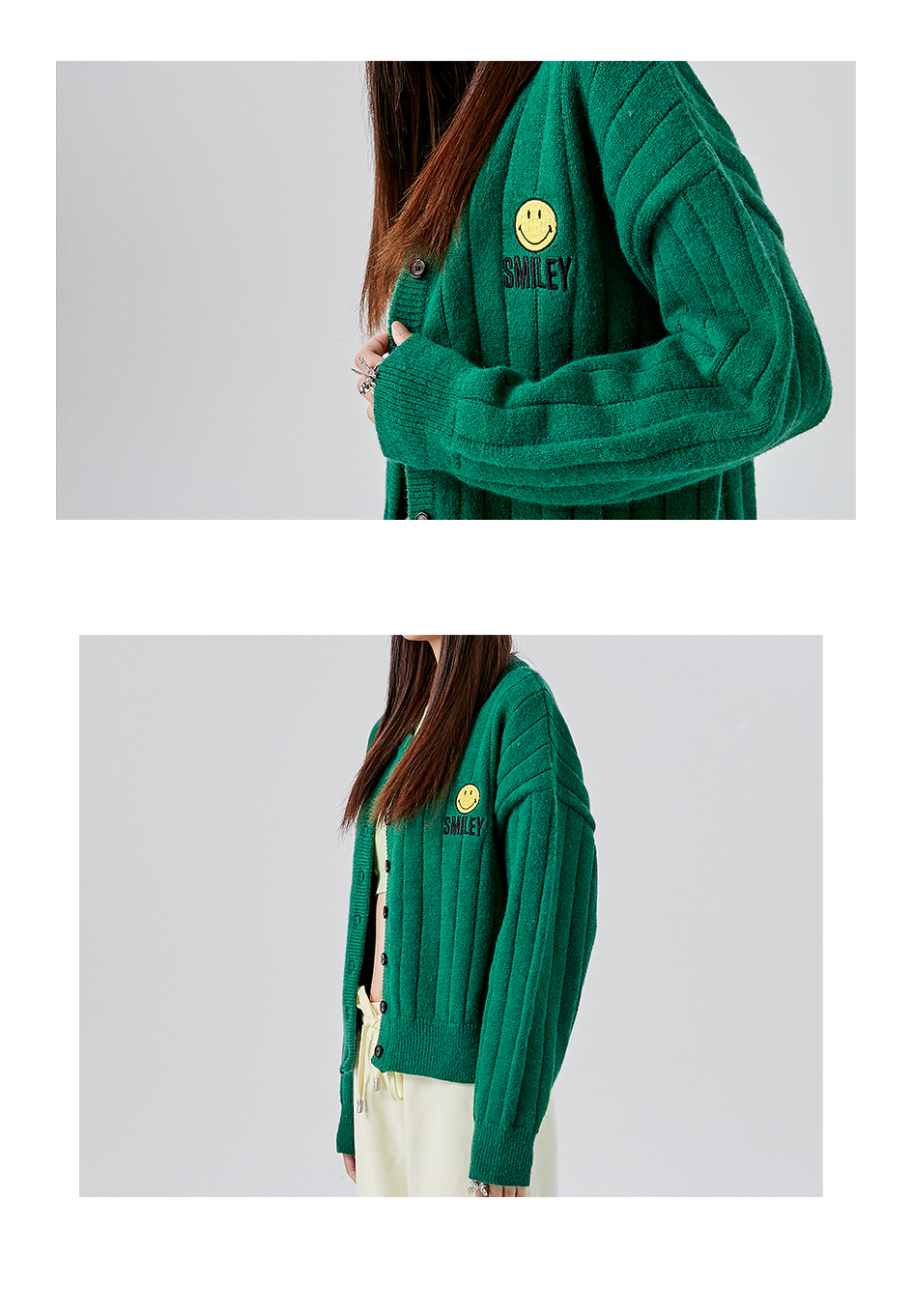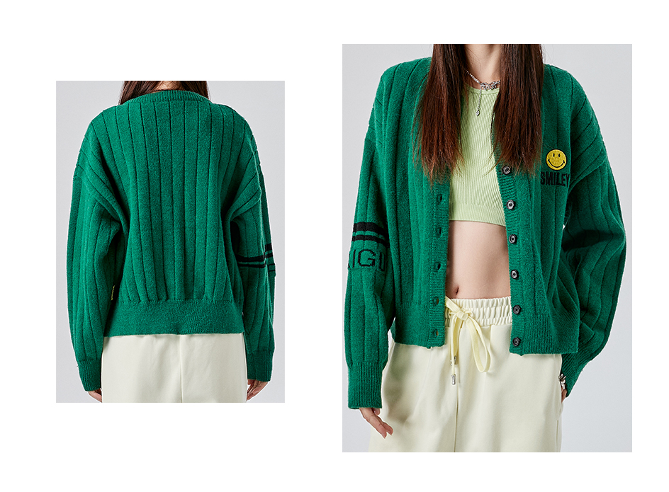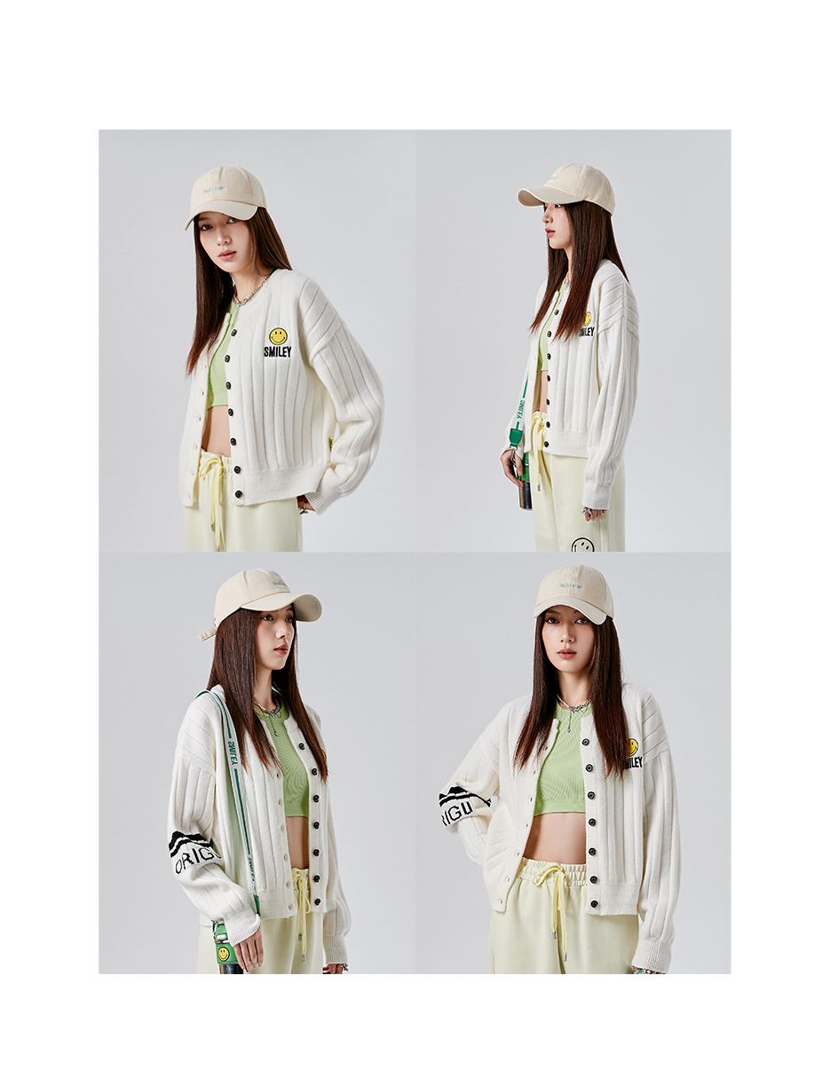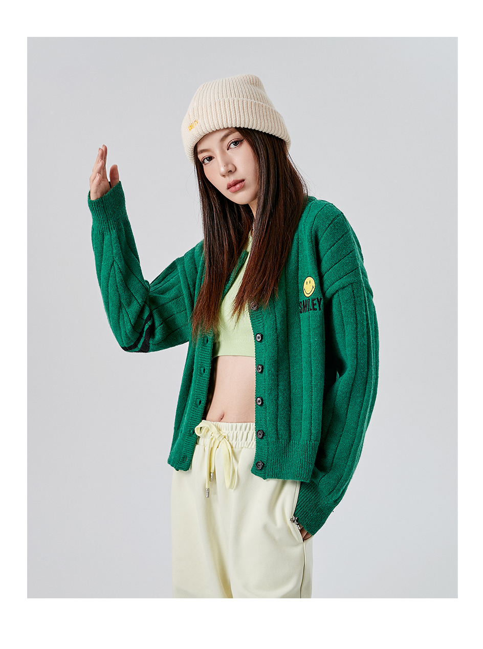[韩国潮牌] SMILEY 正品微笑秋冬新品笑脸标志刺绣提花无领开衫毛衣外套523