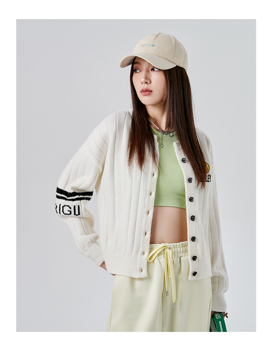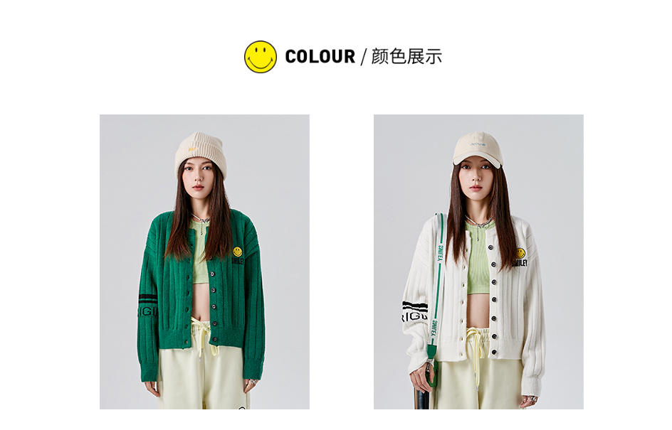 【品名】:笑脸标志刺绣提花无领开衫毛衣外套