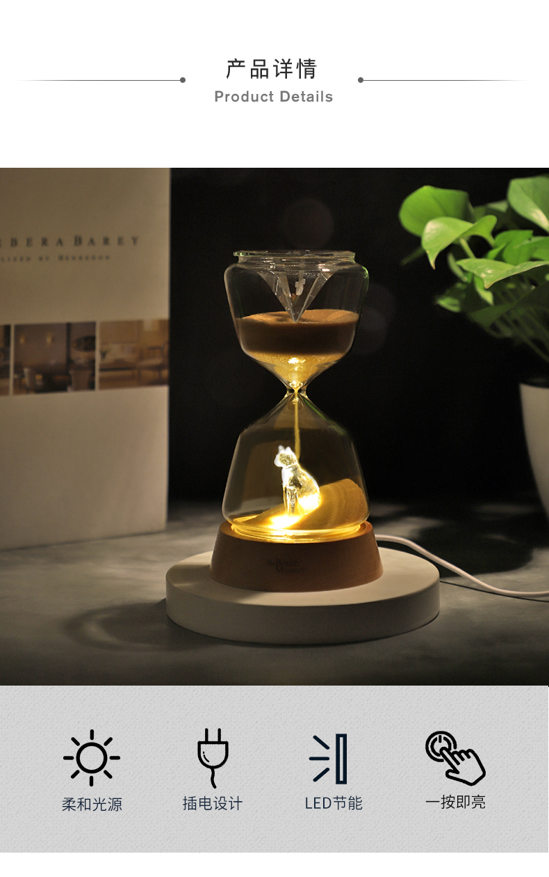 大英博物馆盖亚·安德森猫沙漏伴睡灯小夜灯创意礼物送女友可爱七夕节礼物 毕业礼物