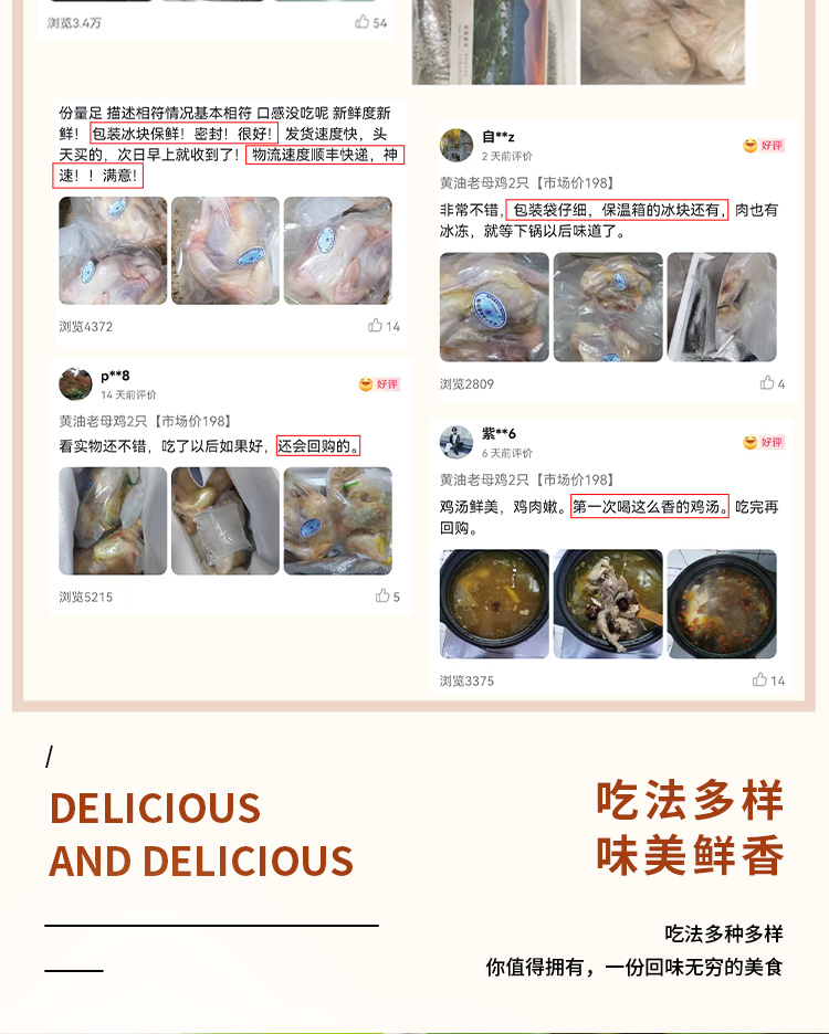 【拍1发3 到手3只】安徽大别山黄油老母鸡, 吃粮食,青菜,和自由觅食,新鲜现杀土鸡 小火煲汤2小时以上,汤汁鲜美油而不腻,肉质紧实有嚼劲