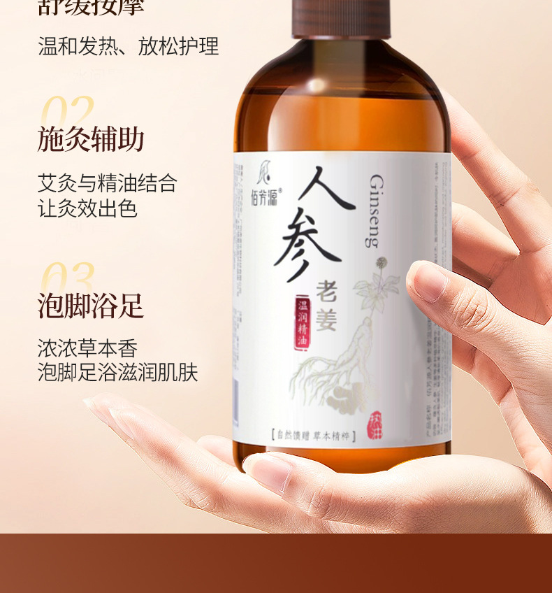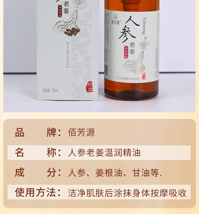 人参老姜按摩精油发热精油美容院推拿按摩刮痧开背spa专用精油