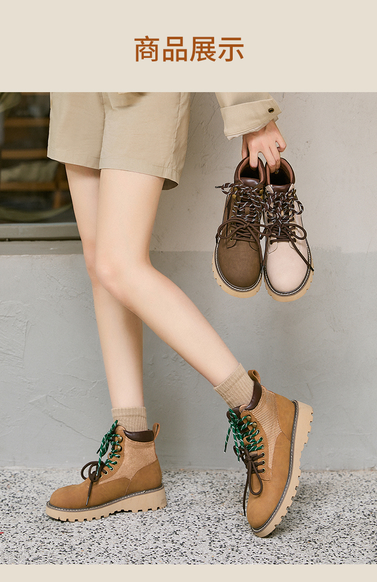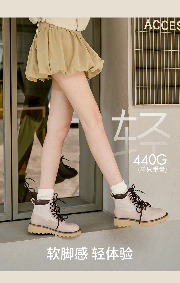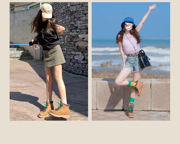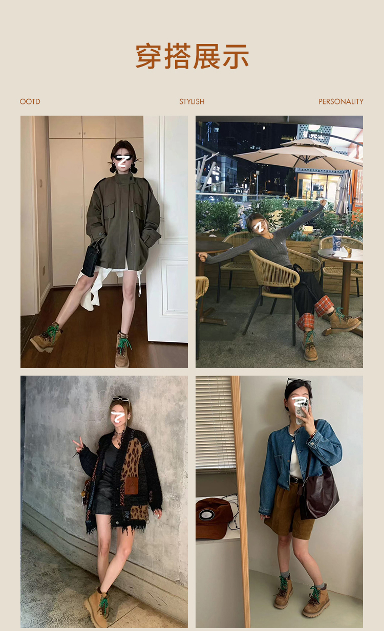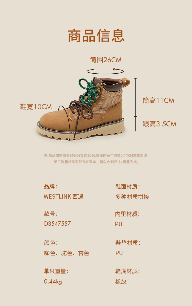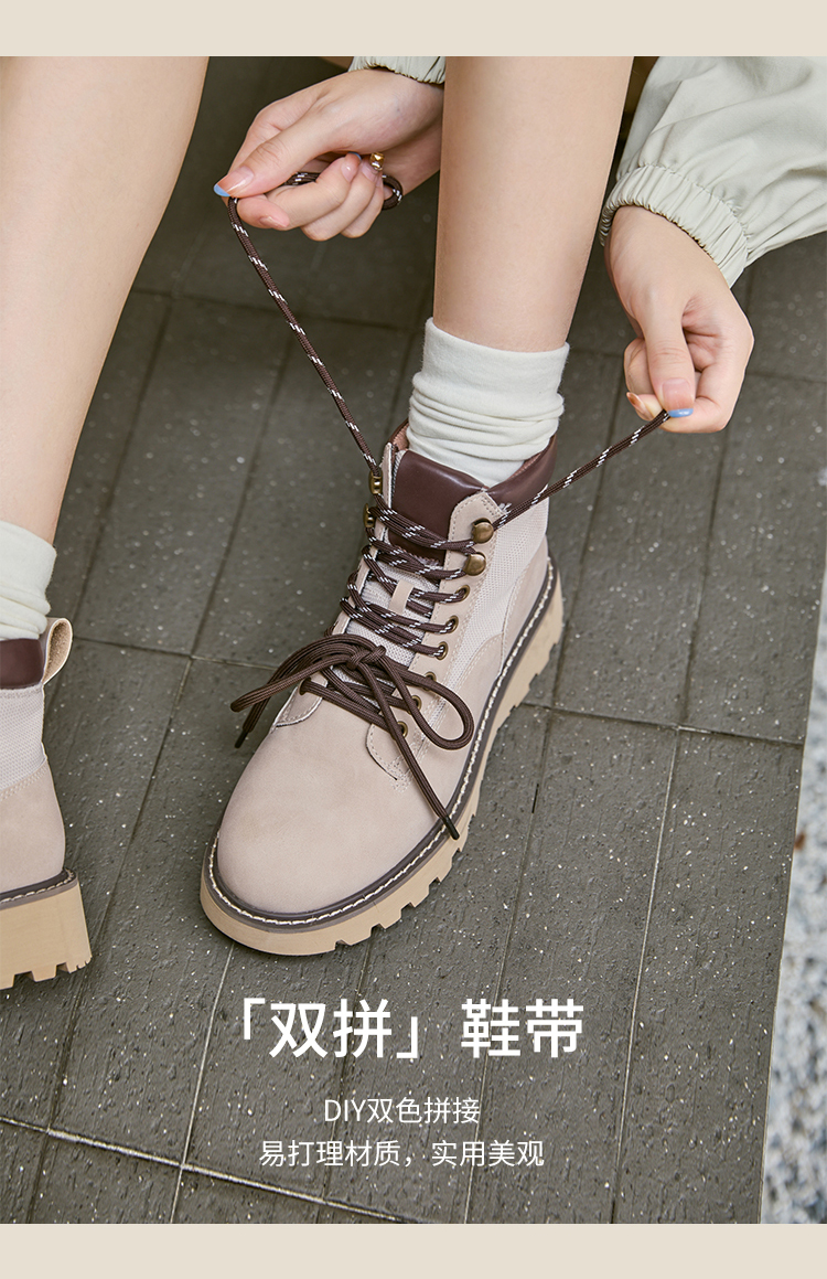 西遇厚底马丁靴大黄靴女新款秋冬爆款美式复古工装靴系带短靴D3547557