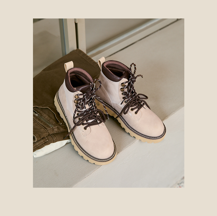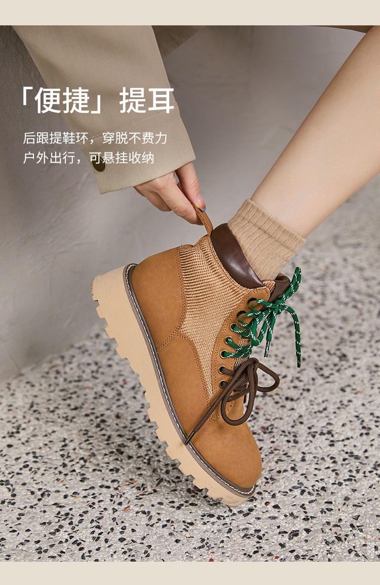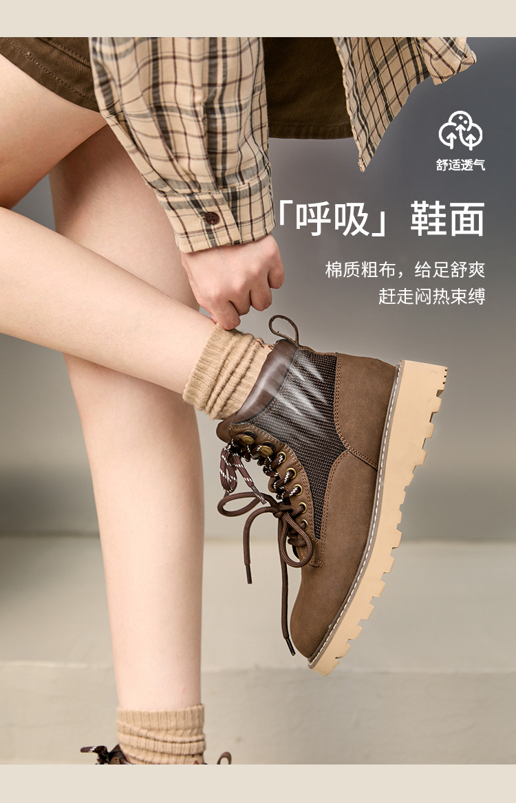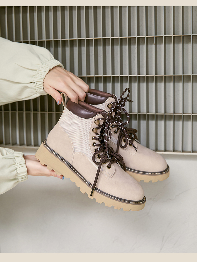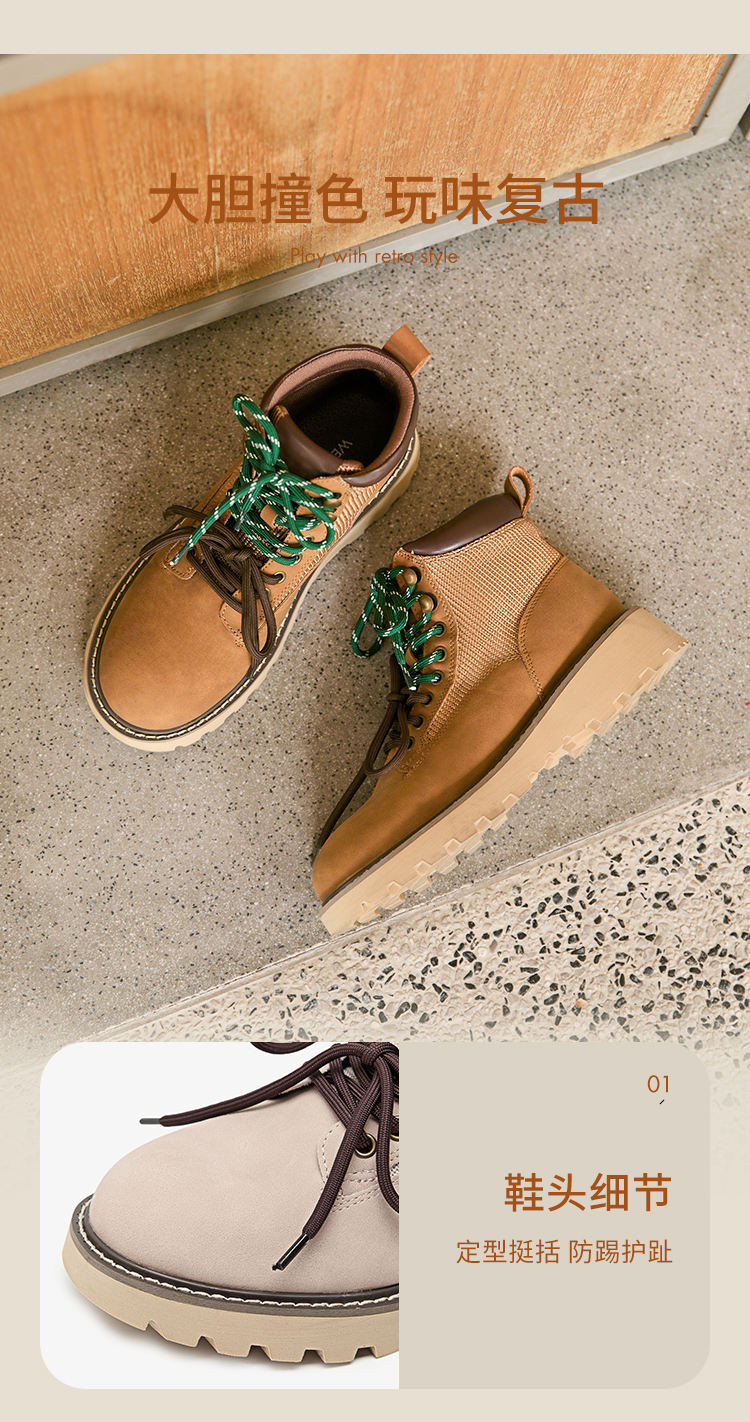 西遇厚底马丁靴大黄靴女新款秋冬爆款美式复古工装靴系带短靴D3547557