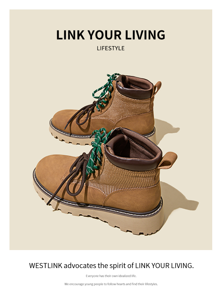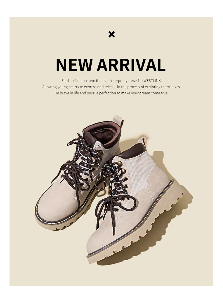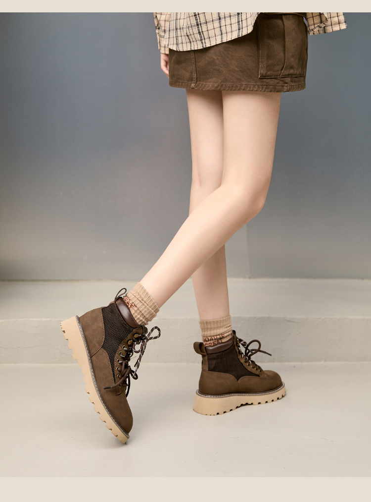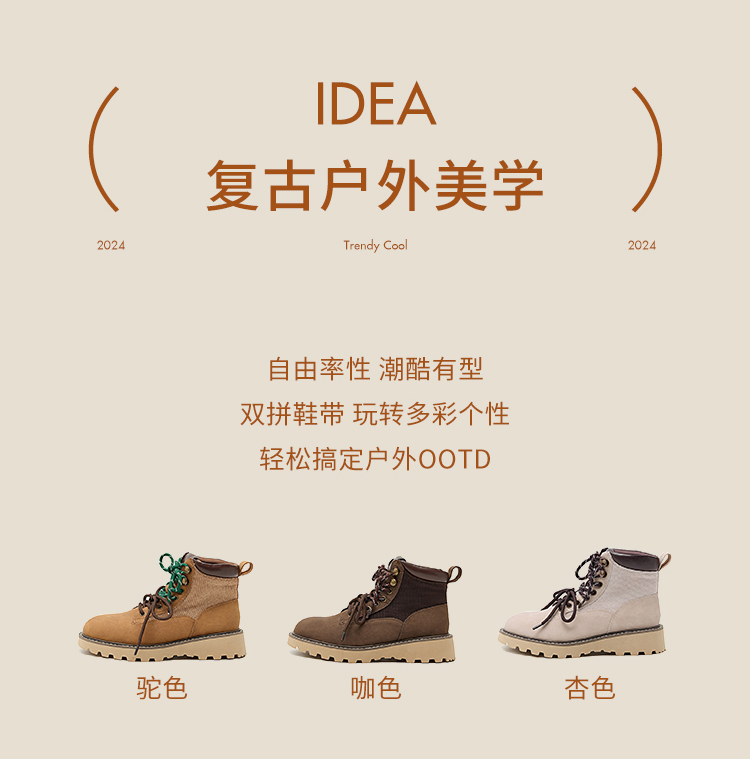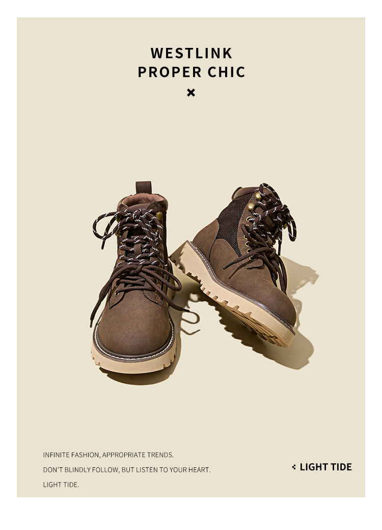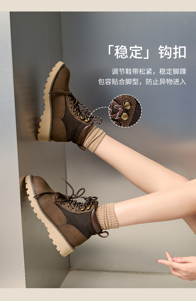 西遇厚底马丁靴大黄靴女新款秋冬爆款美式复古工装靴系带短靴D3547557