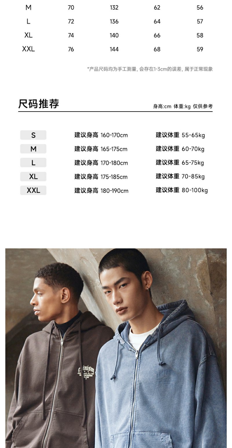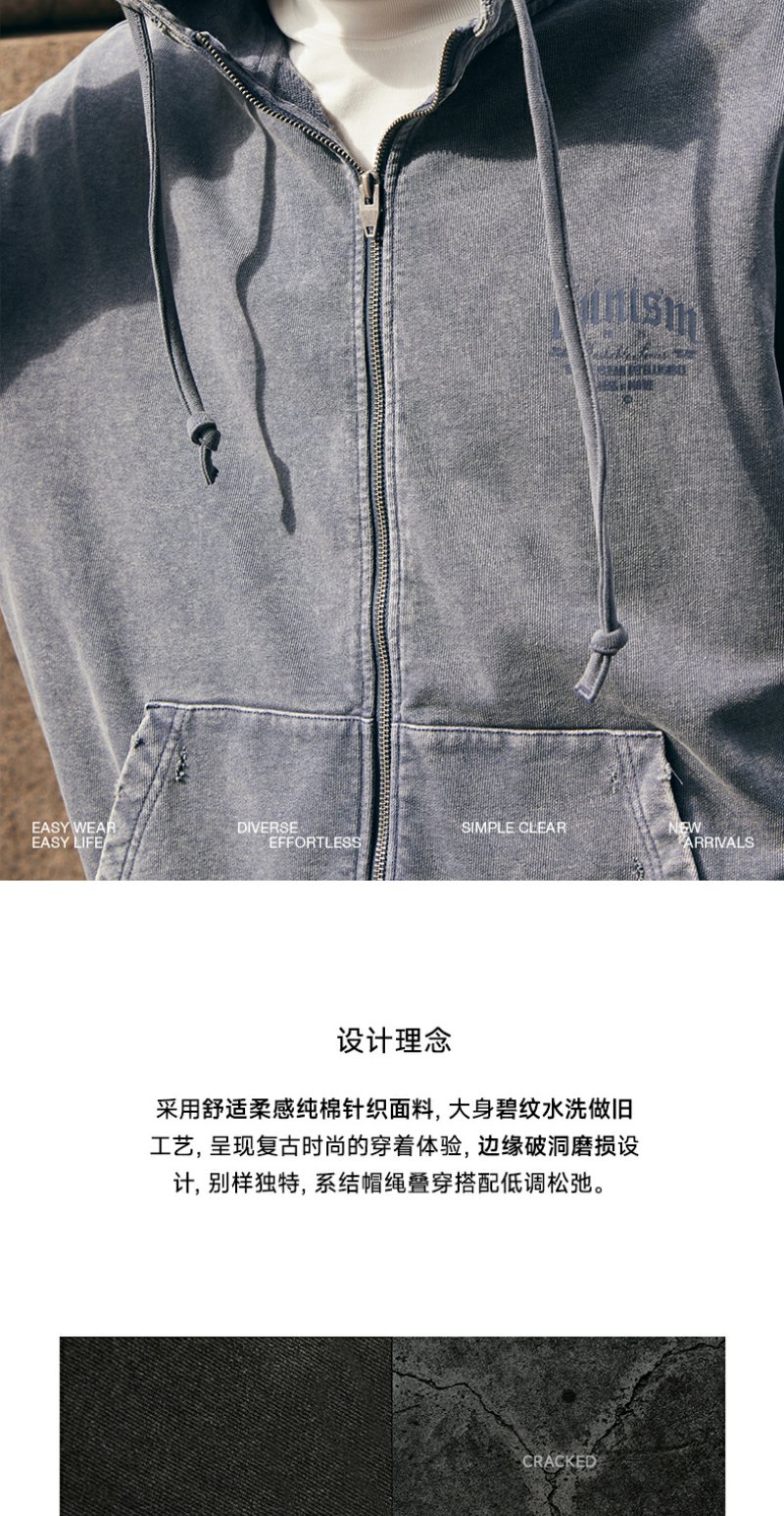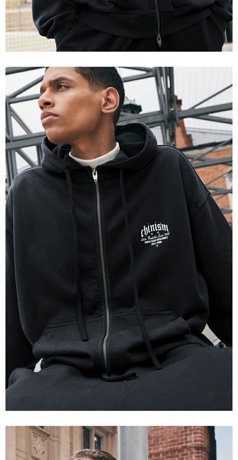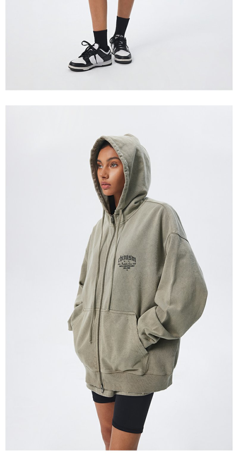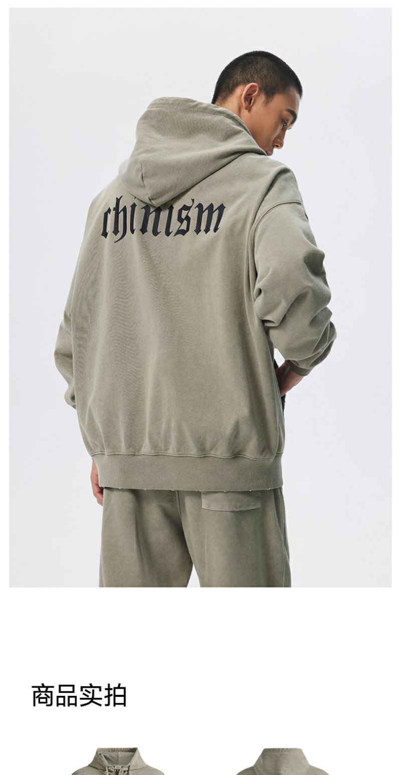 CHINISM赤尘 重磅475G连帽开衫卫衣男春季水洗做旧复古拉链外套