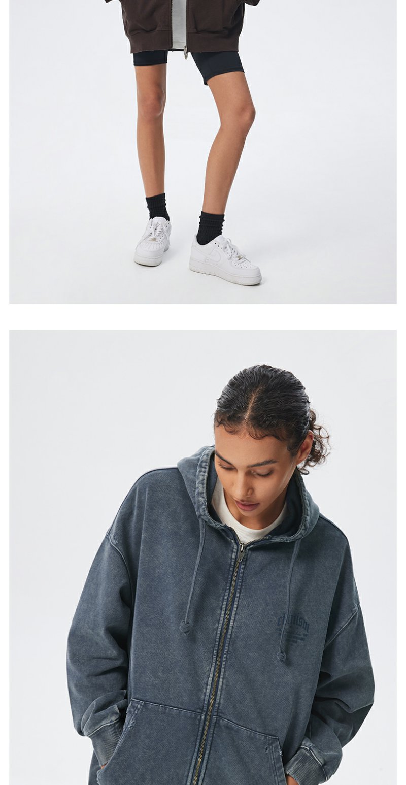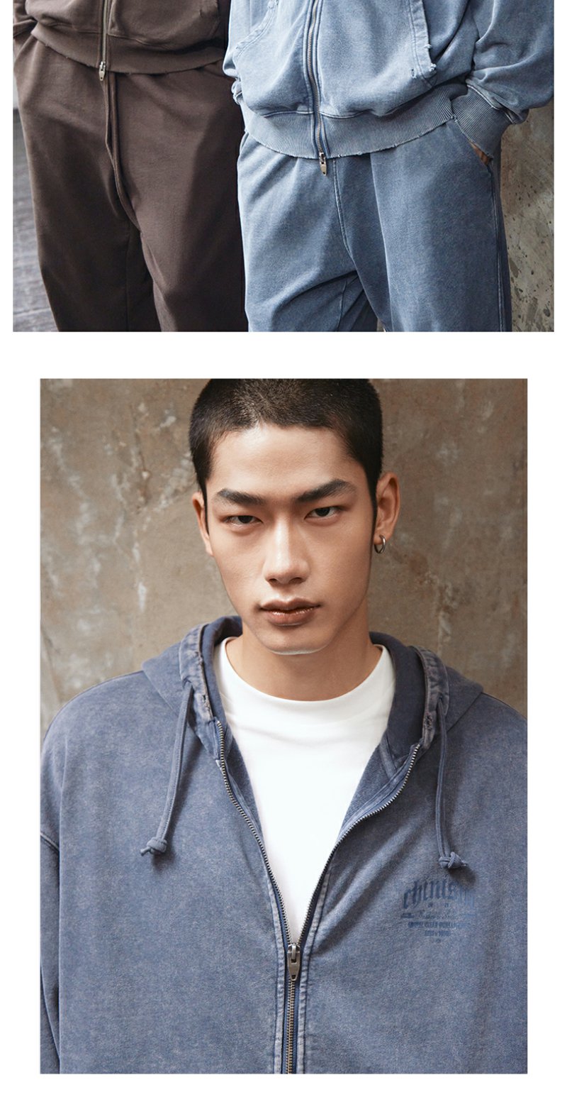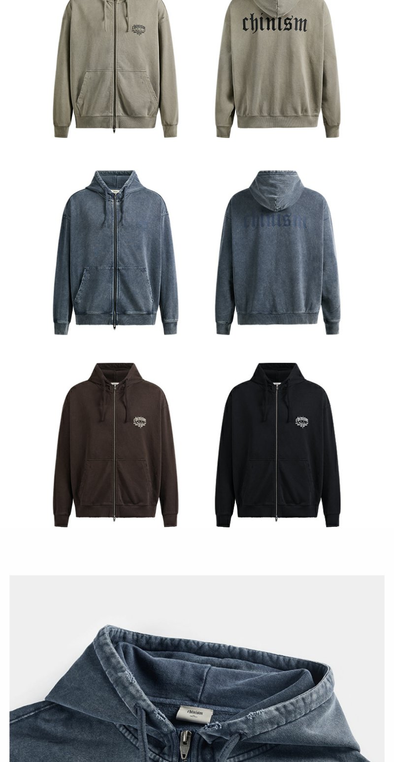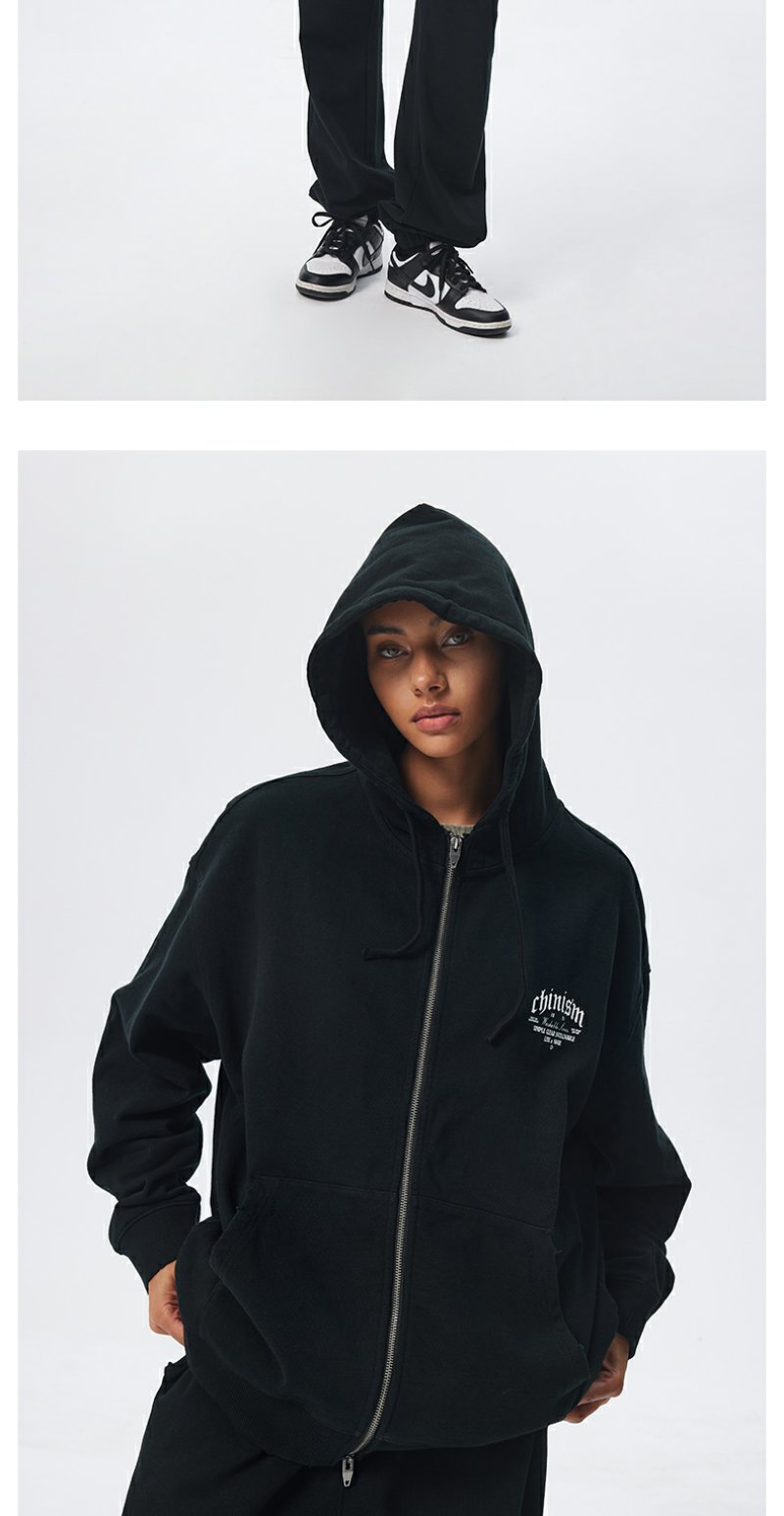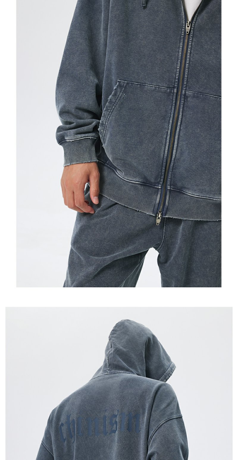 CHINISM赤尘 重磅475G连帽开衫卫衣男春季水洗做旧复古拉链外套