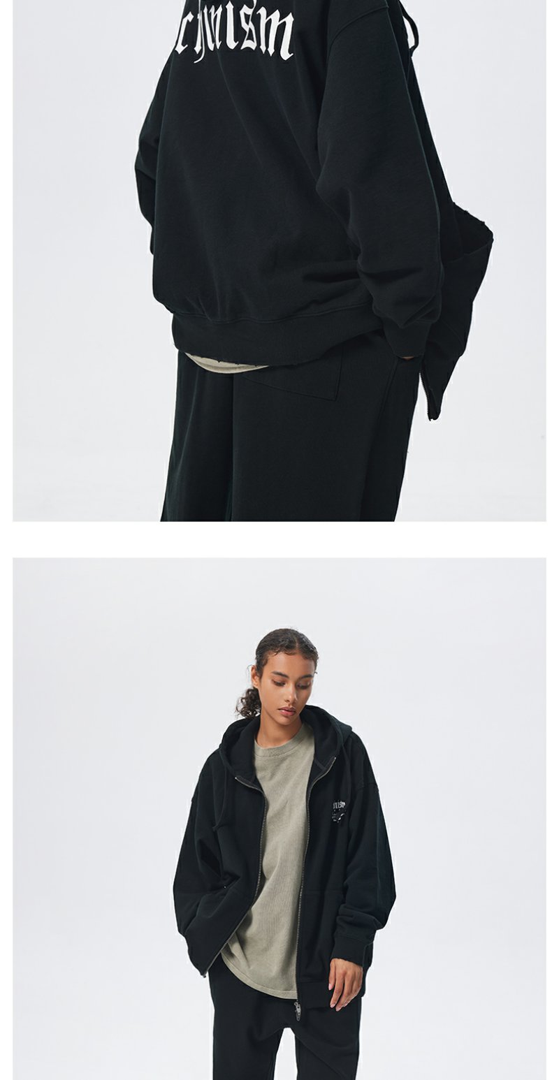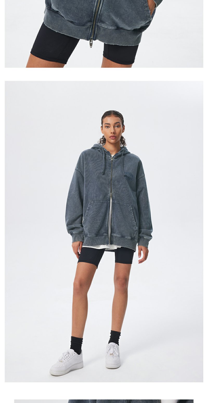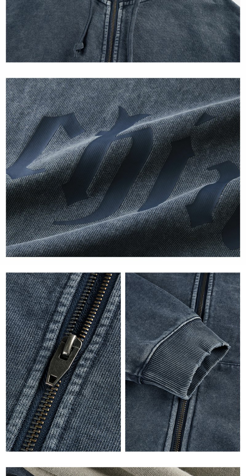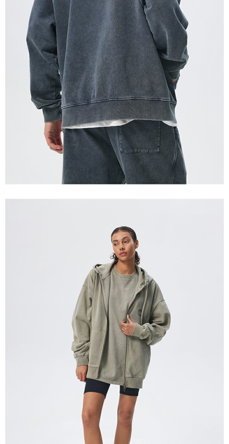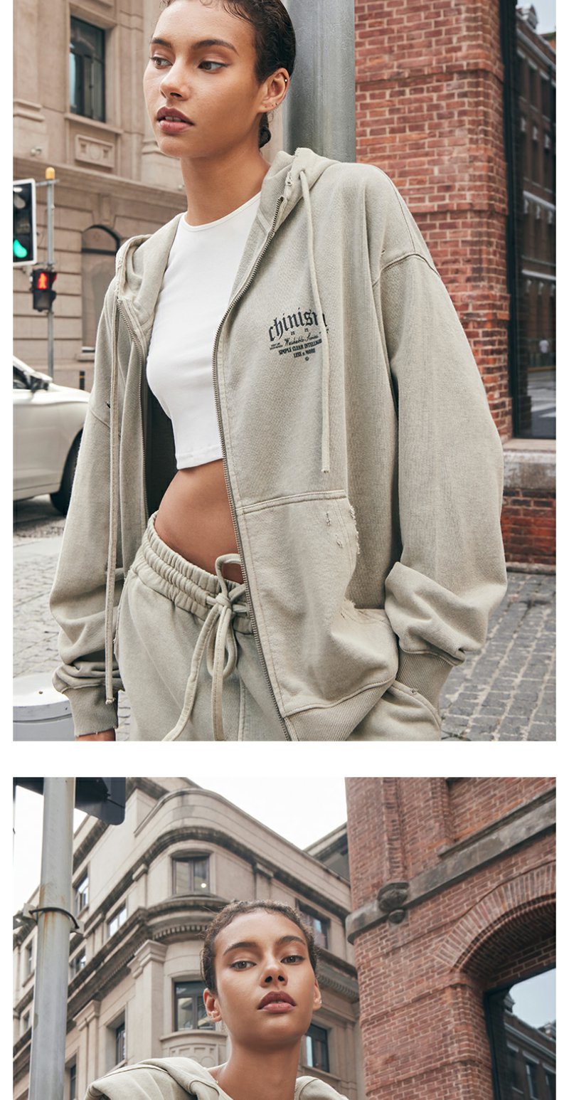 CHINISM赤尘 重磅475G连帽开衫卫衣男春季水洗做旧复古拉链外套