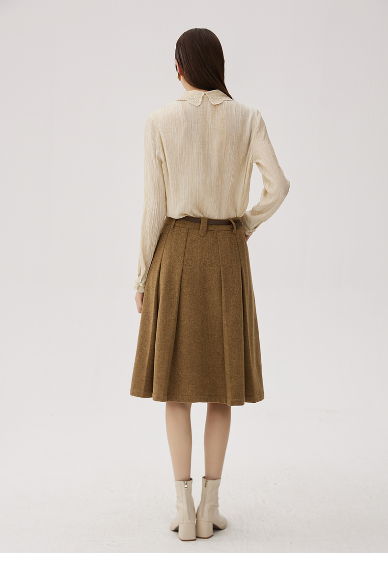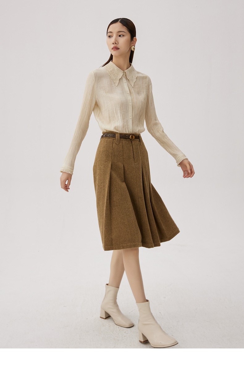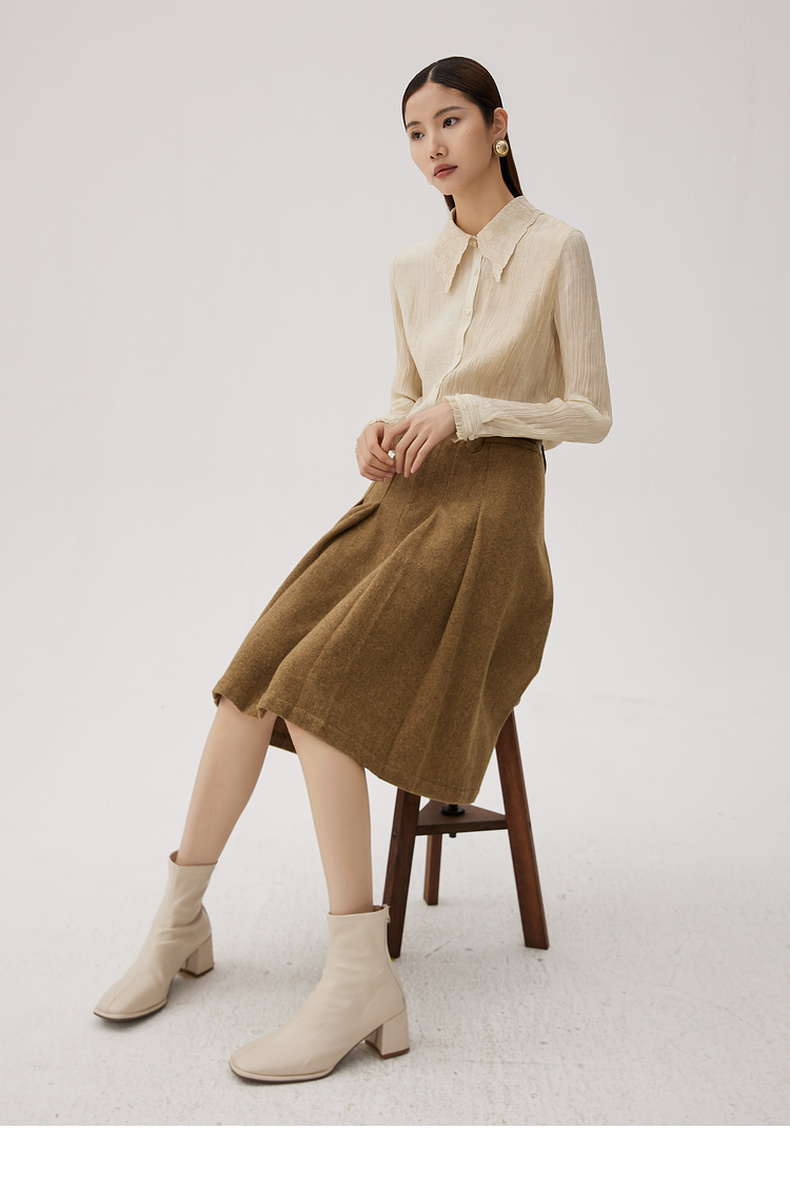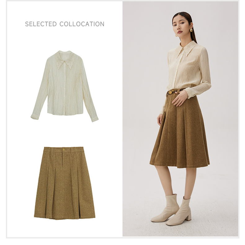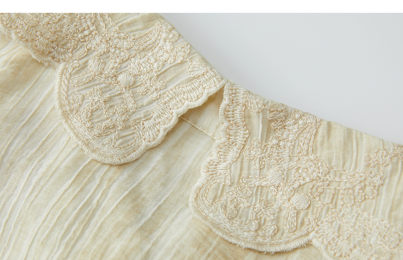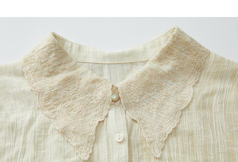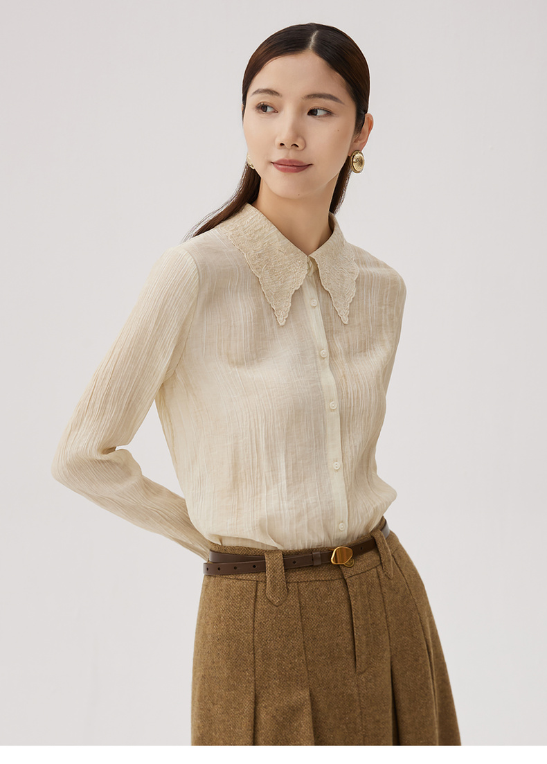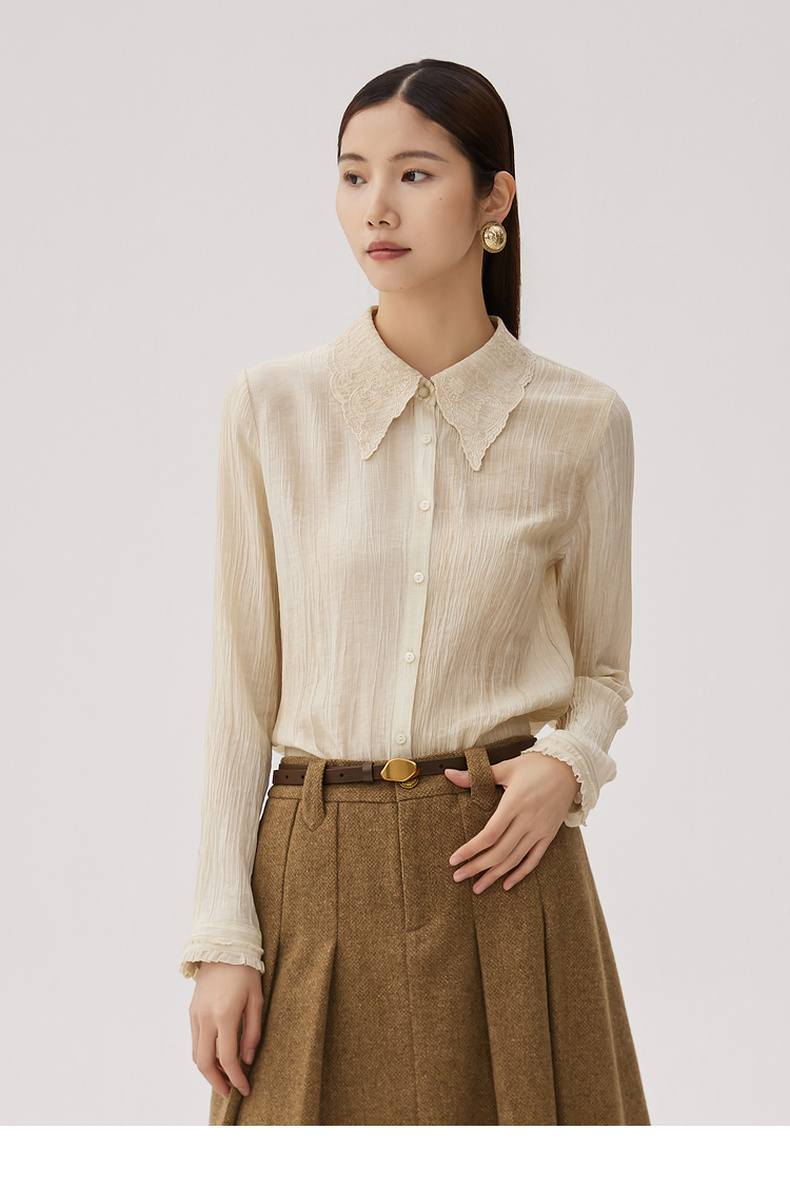 谜底衬衫长袖女2024秋季新品通勤风翻领褶皱感刺绣衬衣243MC1132