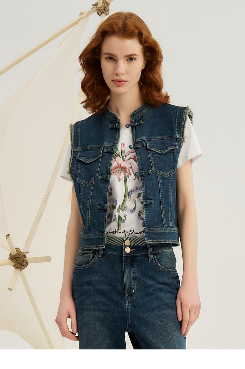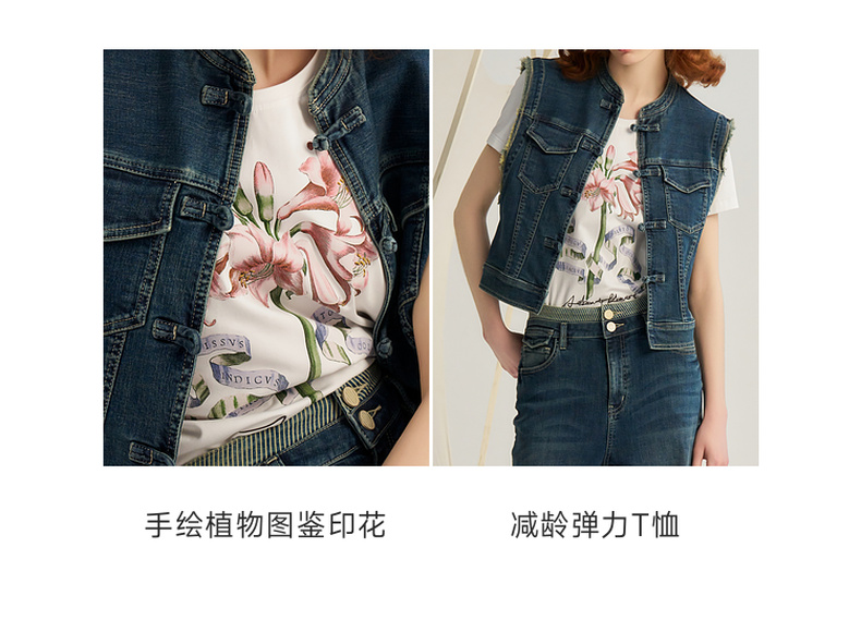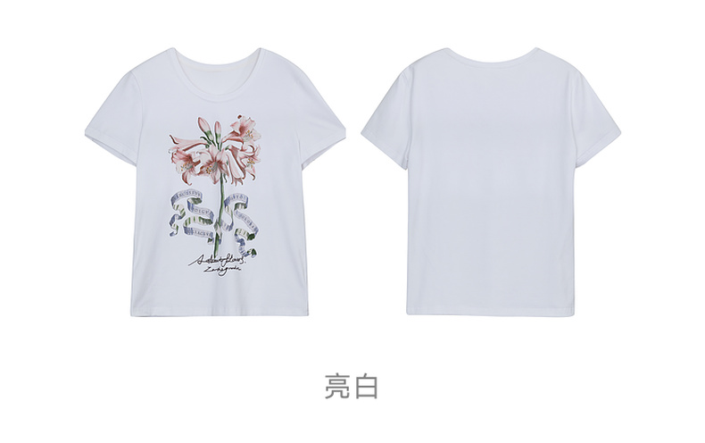 谜底印花T恤短袖女士2024秋季新品百搭高弹棉质修身上衣243MT0955