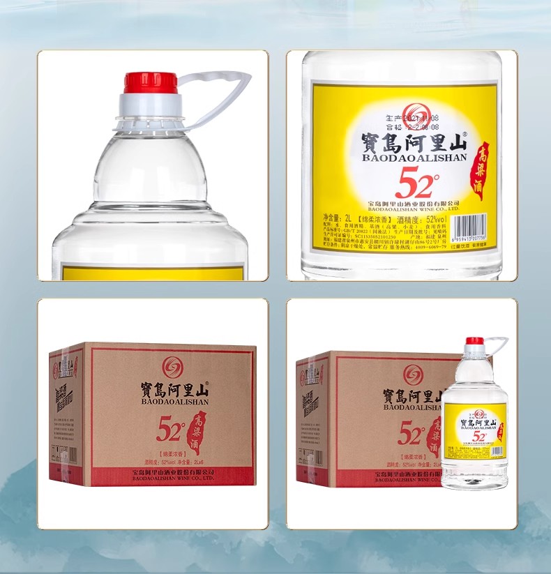 宝岛阿里山圆桶台湾高粱酒52度2L*1桶