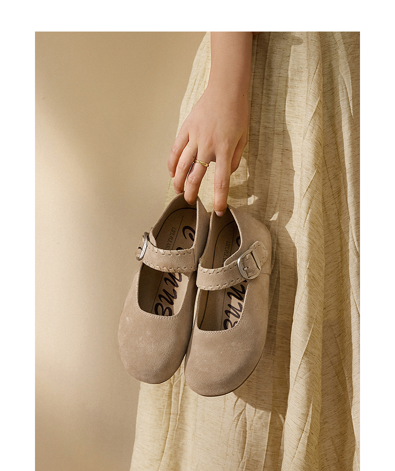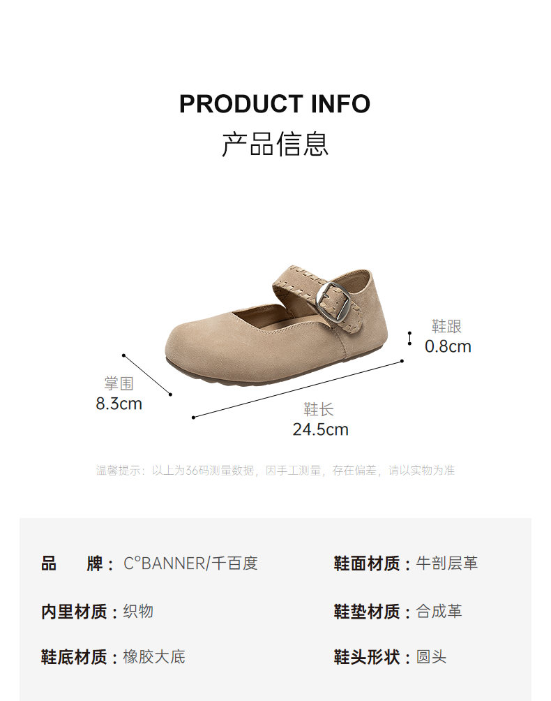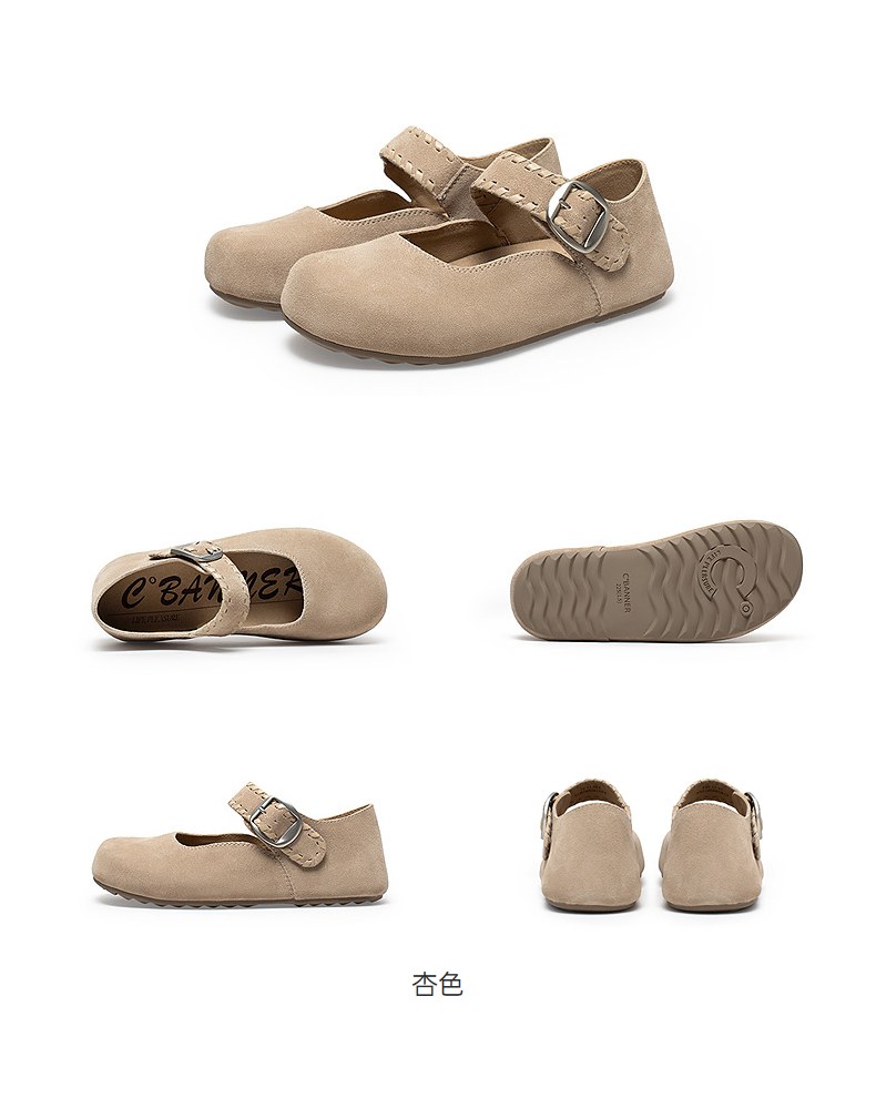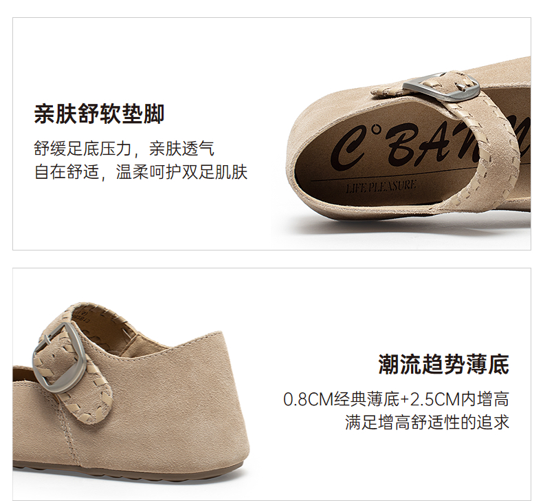 千百度全包勃肯鞋女款平底真皮玛丽珍鞋浅口舒适单鞋A25180982