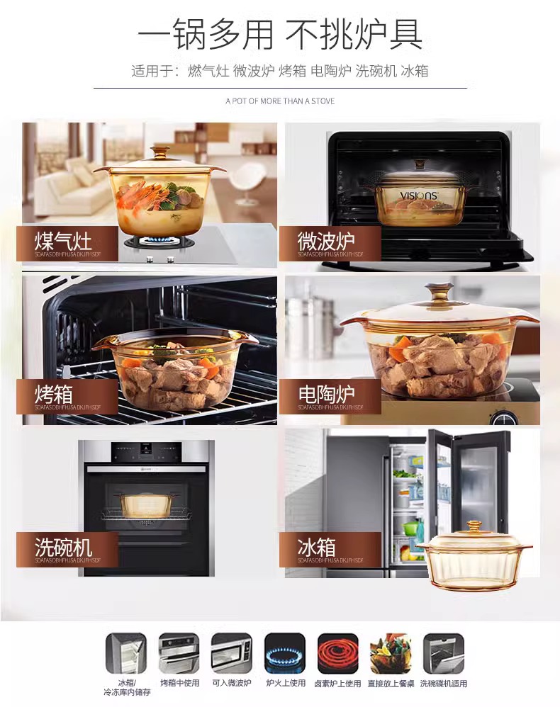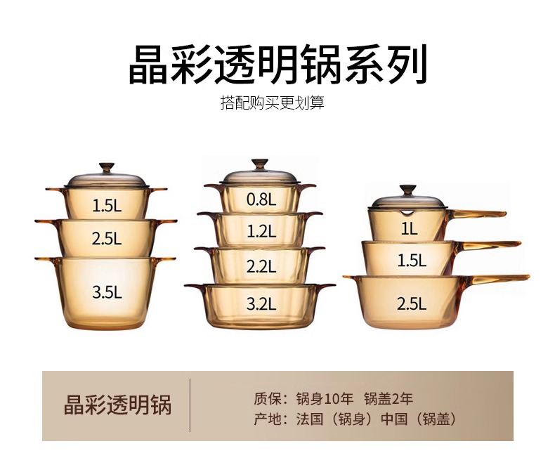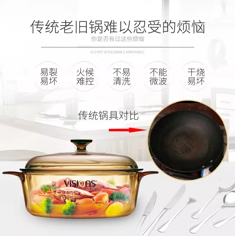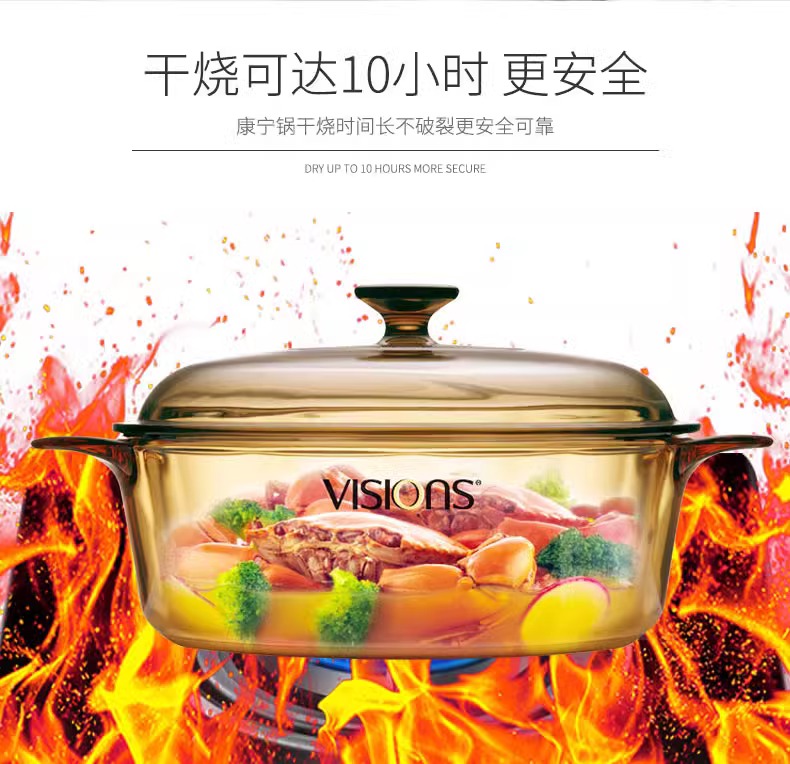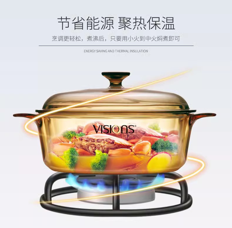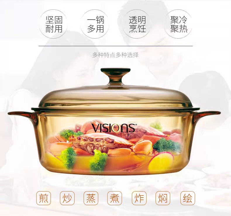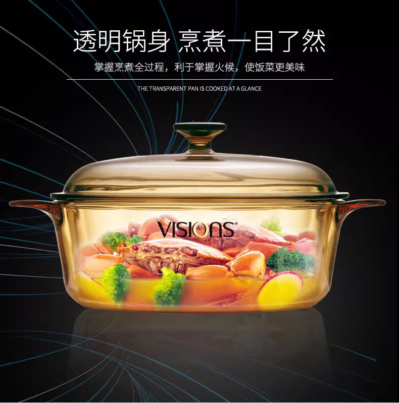康宁玻璃锅VISIONS琥珀透明家用汤锅炖锅正品晶彩双耳锅2.5L