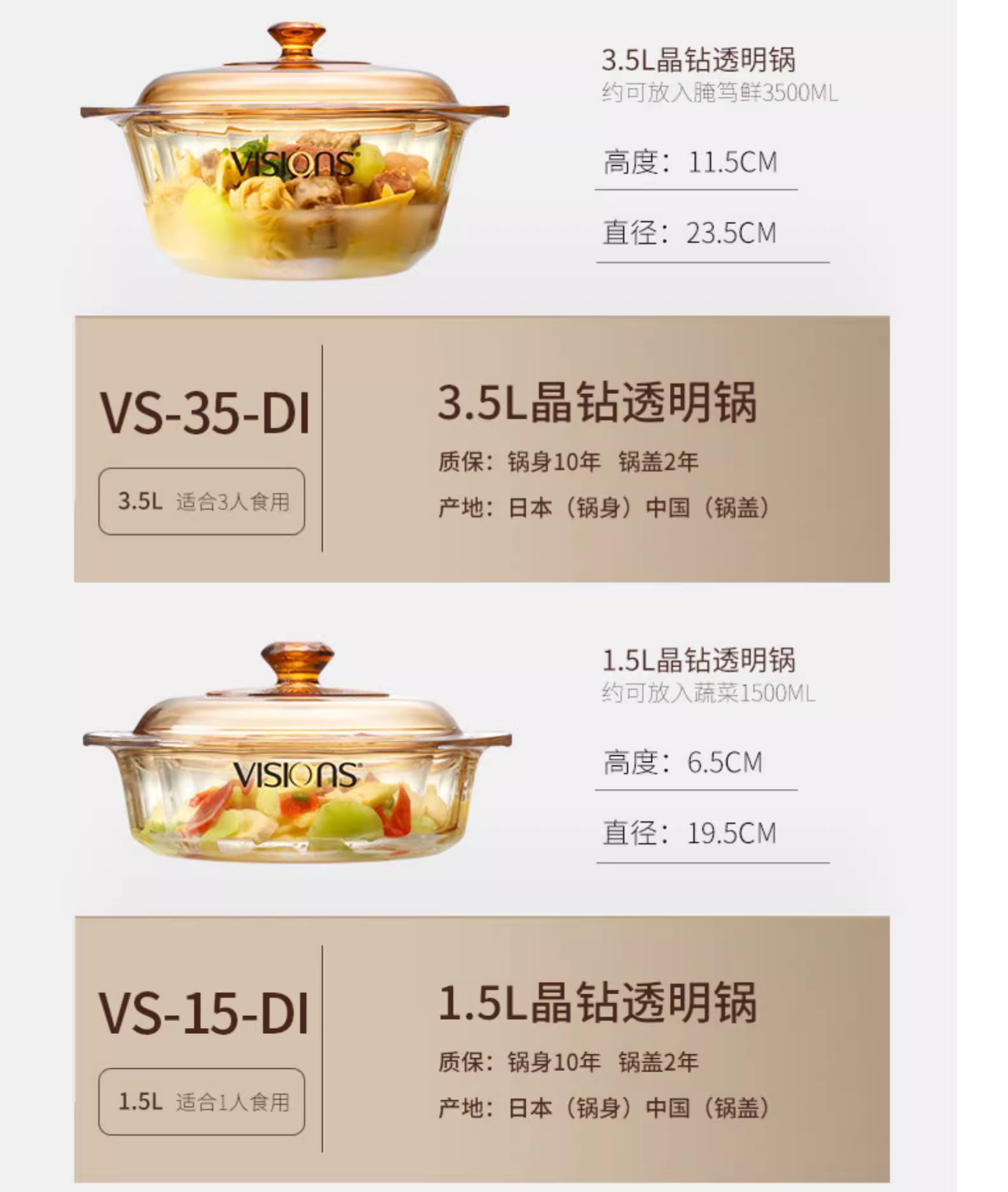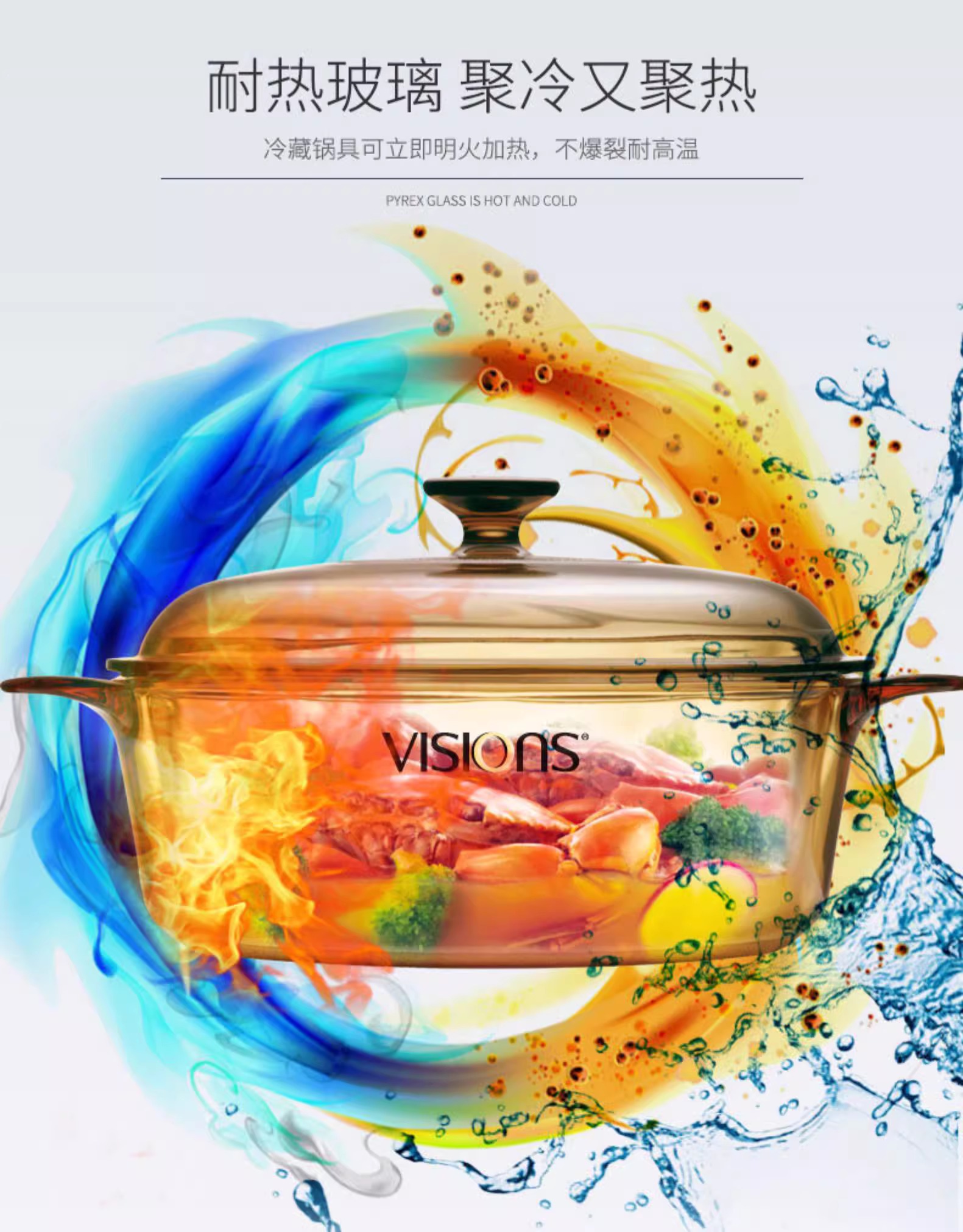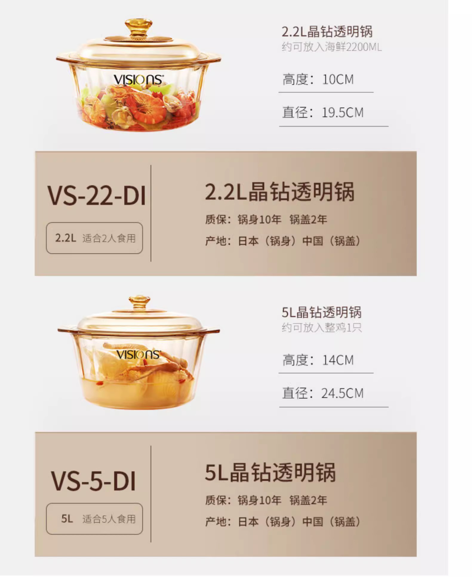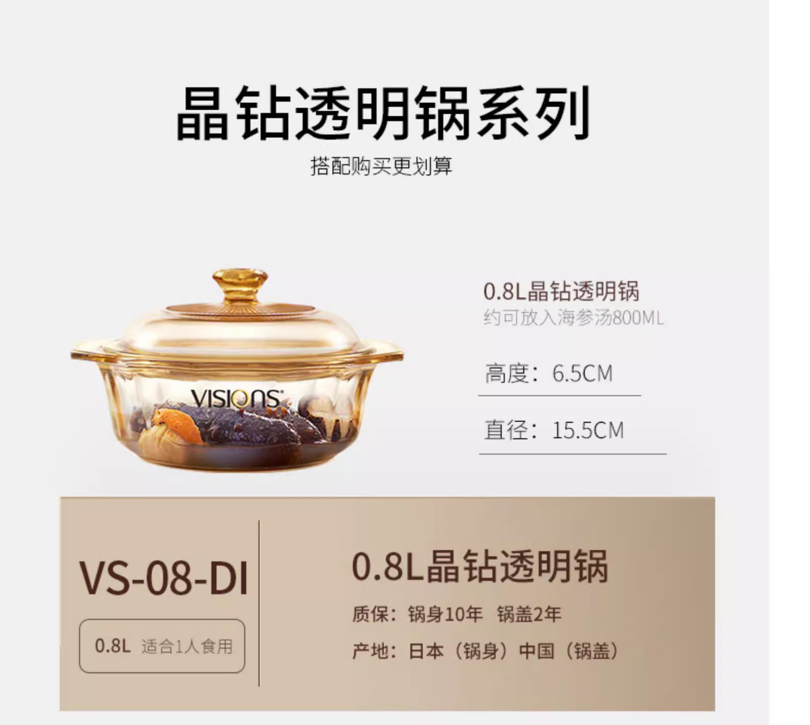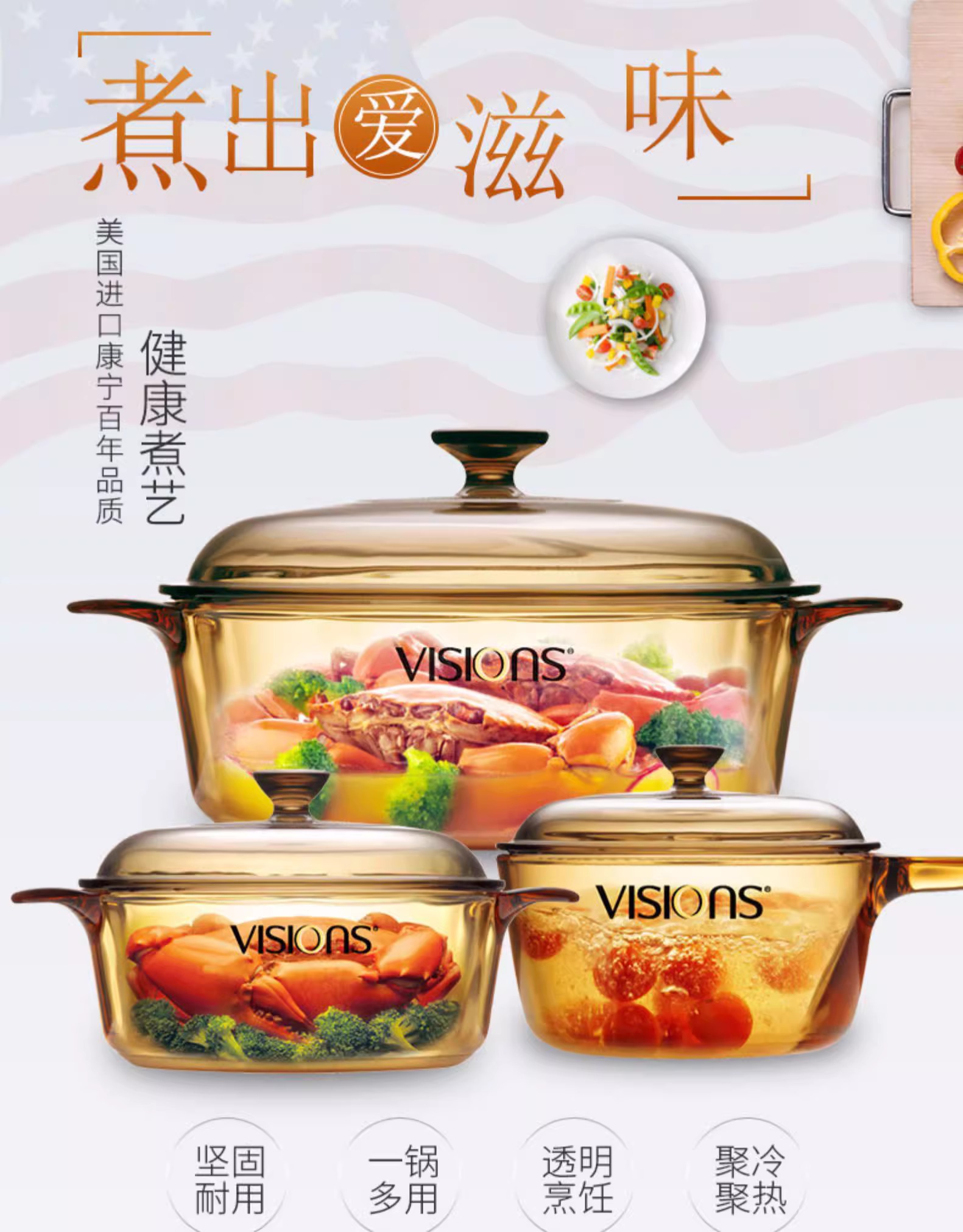 康宁玻璃锅VISIONS琥珀透明家用汤锅炖锅正品晶彩双耳锅2.5L