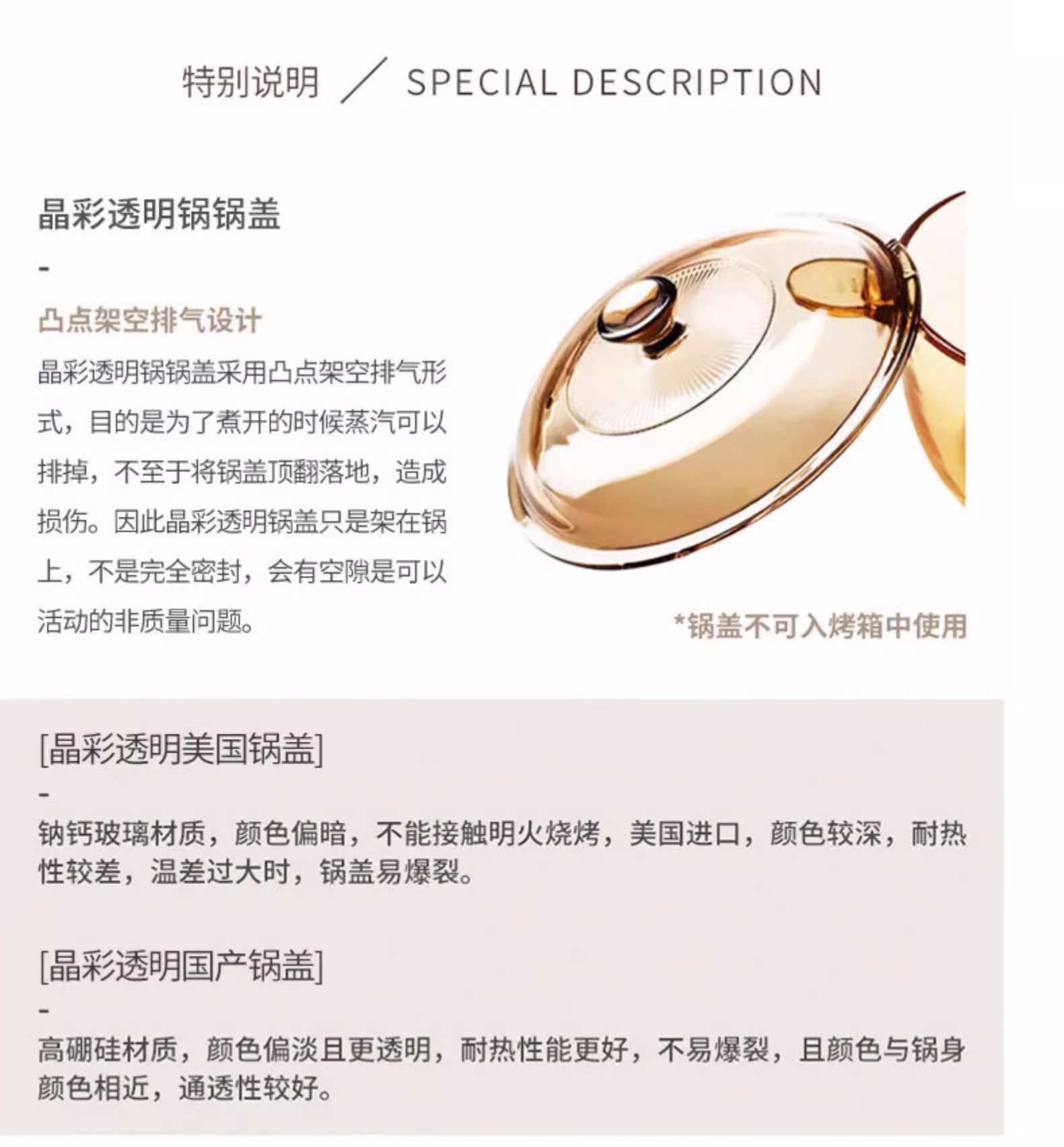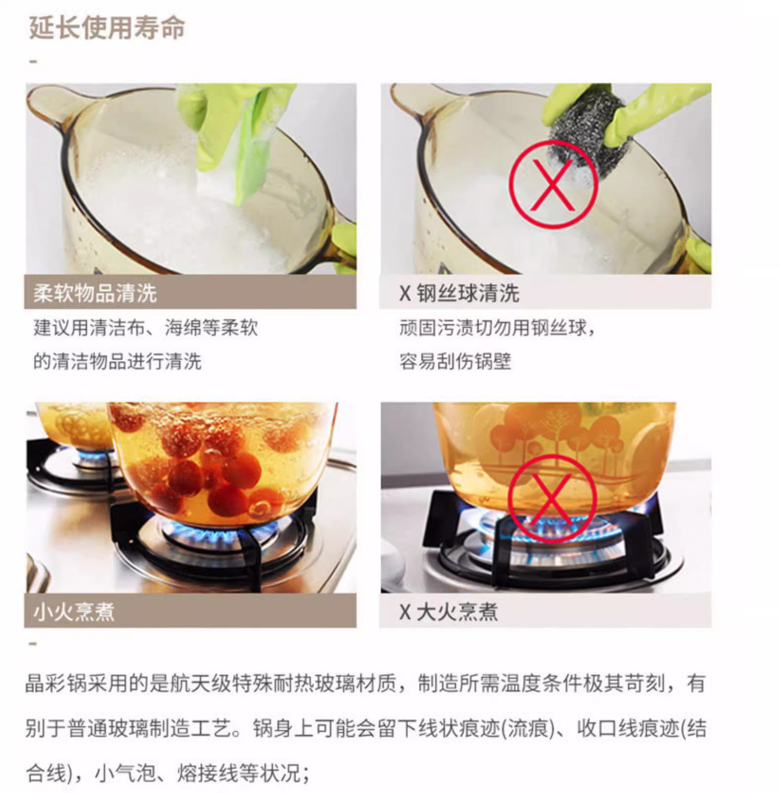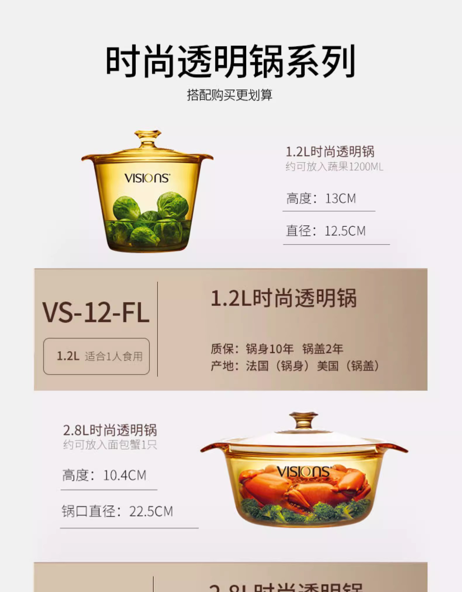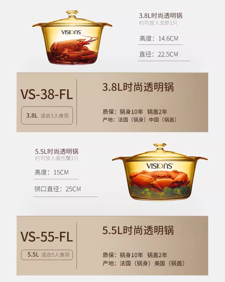 康宁玻璃锅VISIONS琥珀透明家用汤锅炖锅正品晶彩双耳锅2.5L