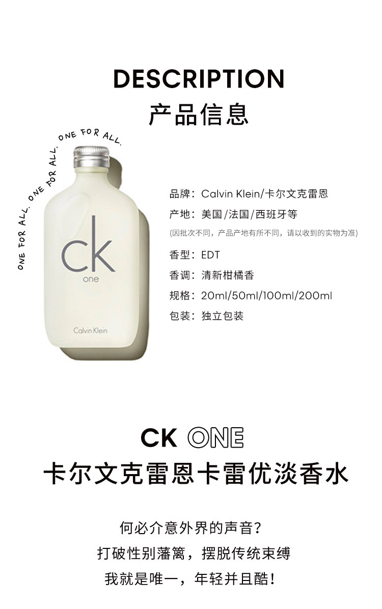 CK卡尔文·克莱 - CK One淡香水喷雾