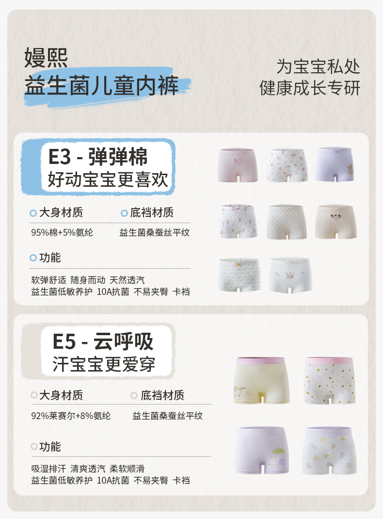 【婴童服配】嫚熙儿童内裤女童四角裤不夹屁屁宝宝纯棉a类平角裤