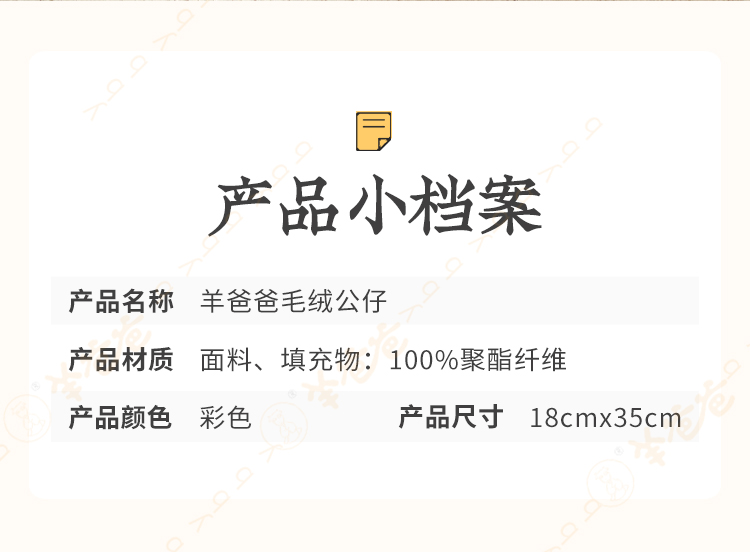 文创周边【羊爸爸公仔】亲肤绒面、手洗快干