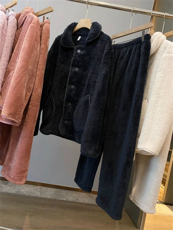 【高性价比·情侣款高奢雪花绒睡衣套装家居服】双面舒棉绒北极绒黑科技 贴身不起静电加绒加厚睡衣家居服女