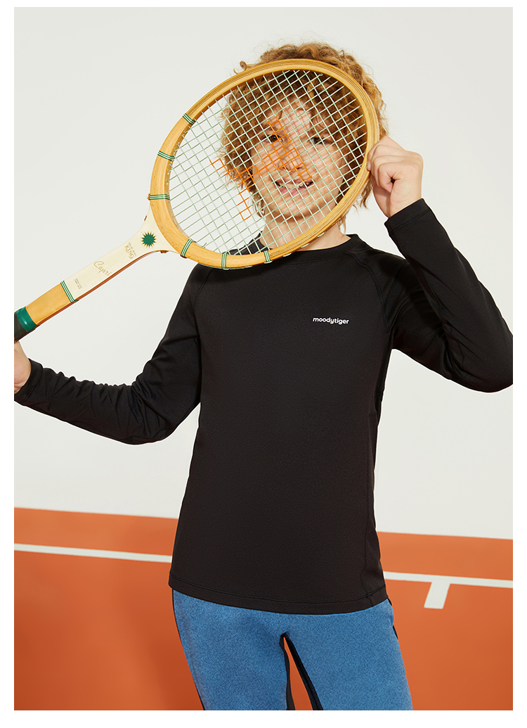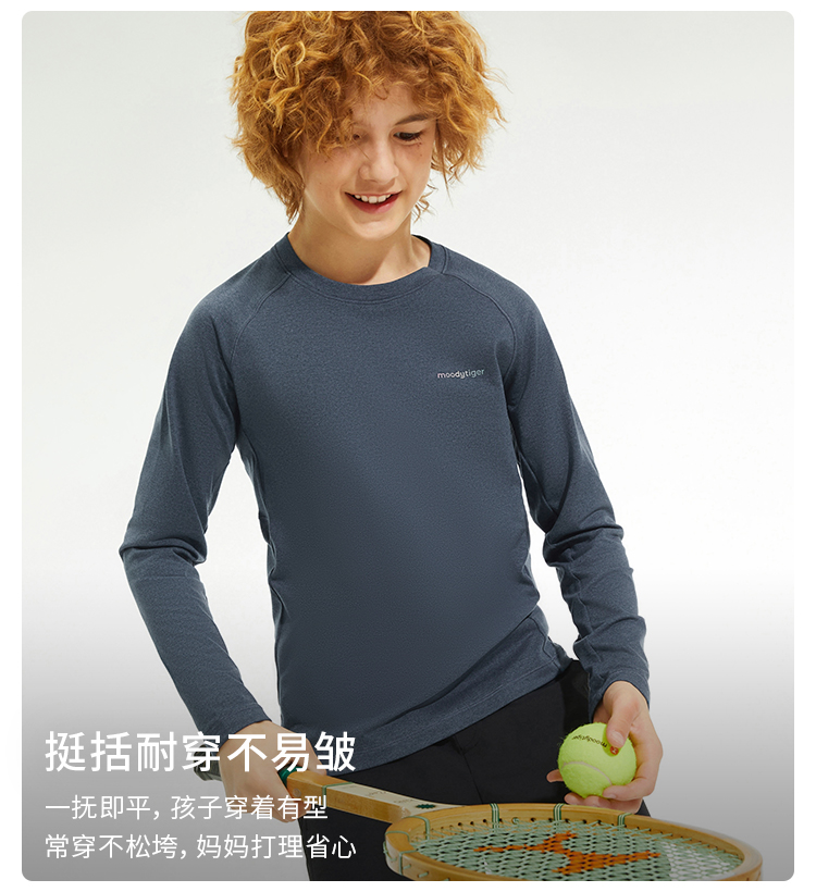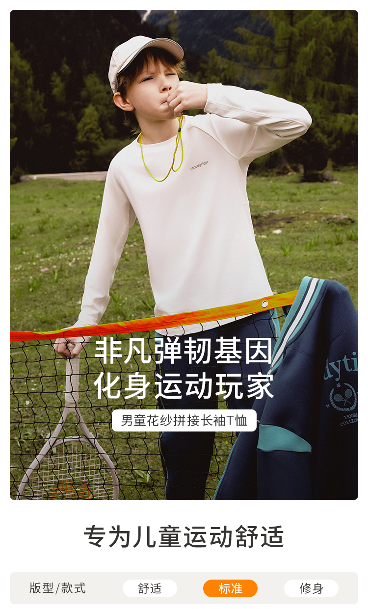 【24年秋新】【网球系列】moodytiger14秋新男童长袖T恤拼接透气户外运动长袖43110103