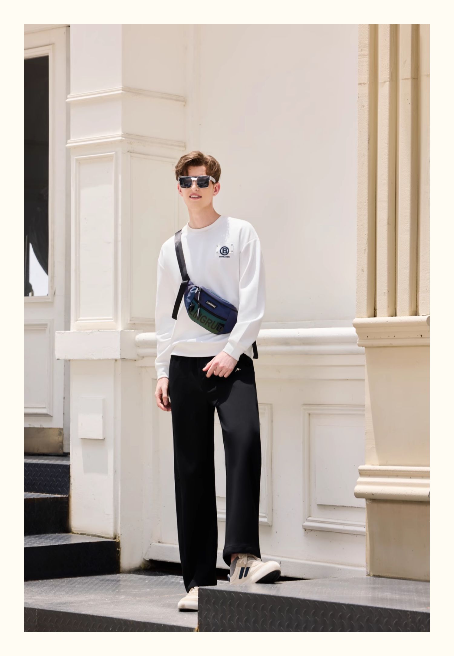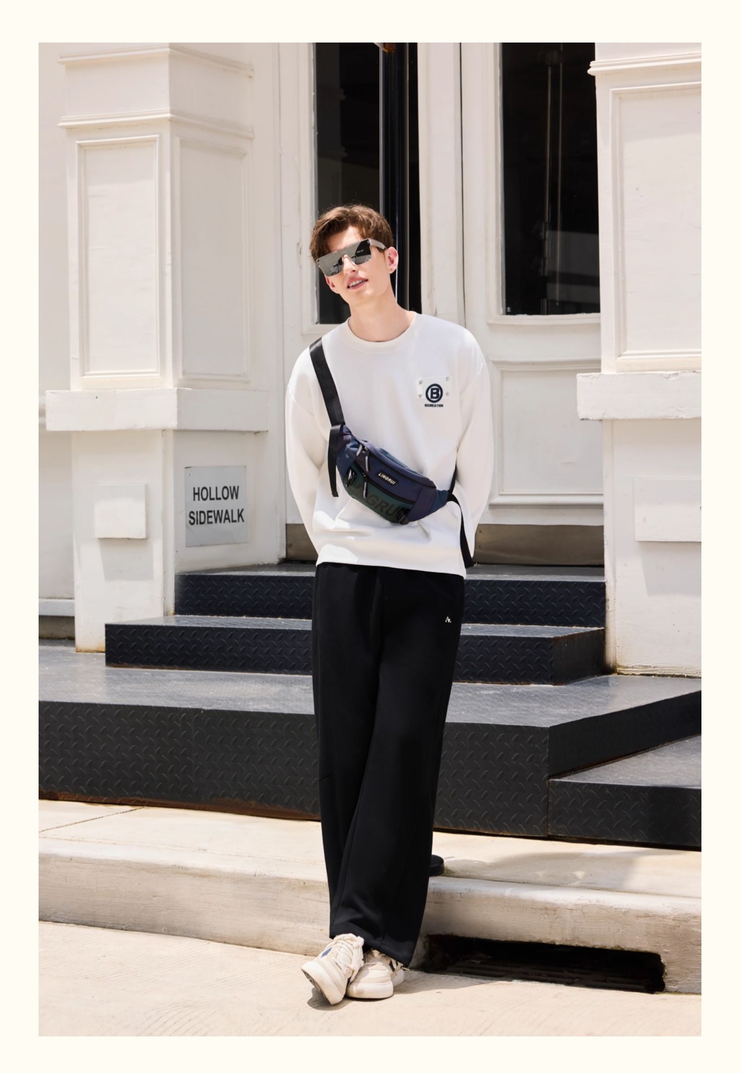 半身缘男裤 秋季宽松针织空气层面料卫裤休闲裤253201P17730070