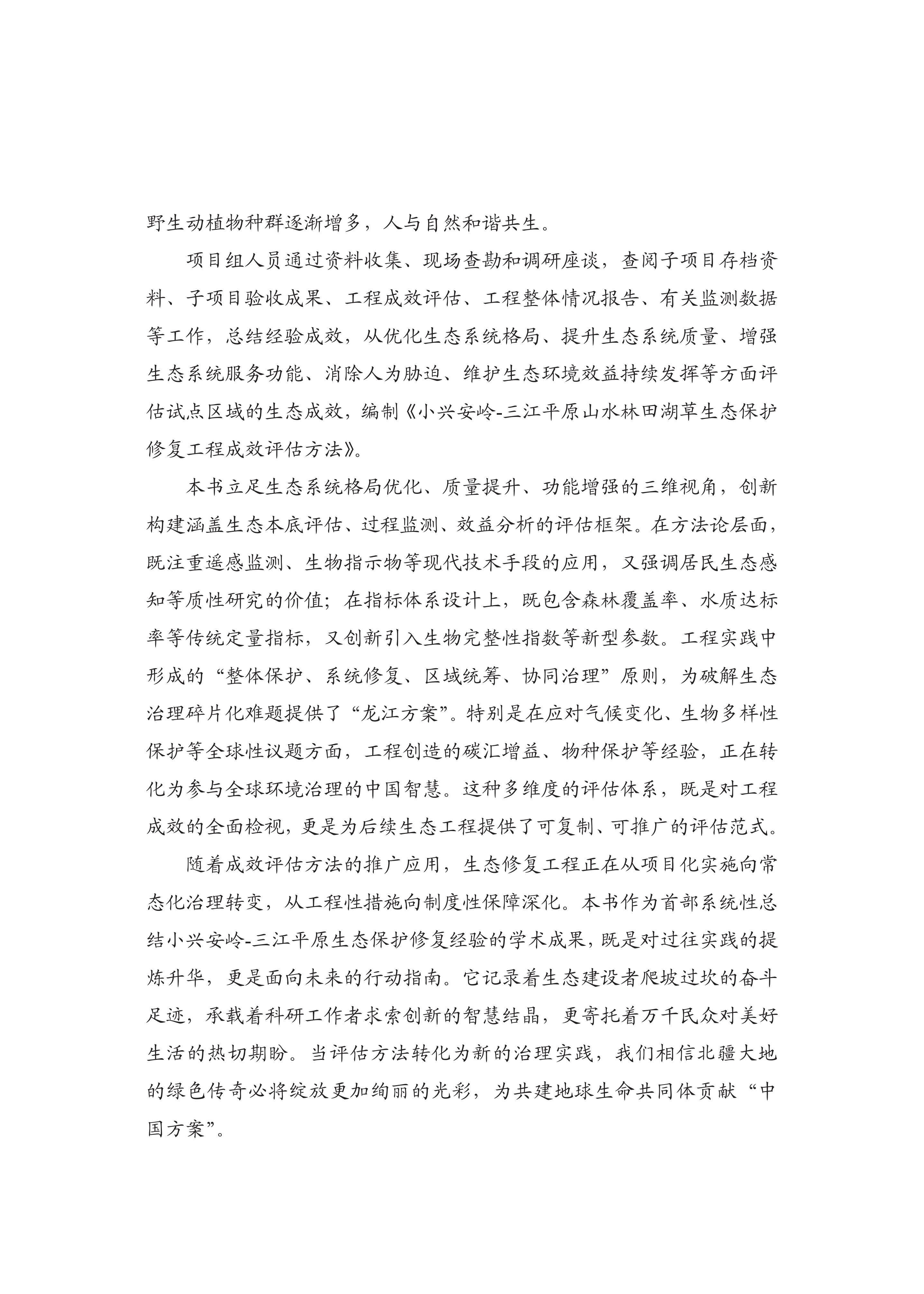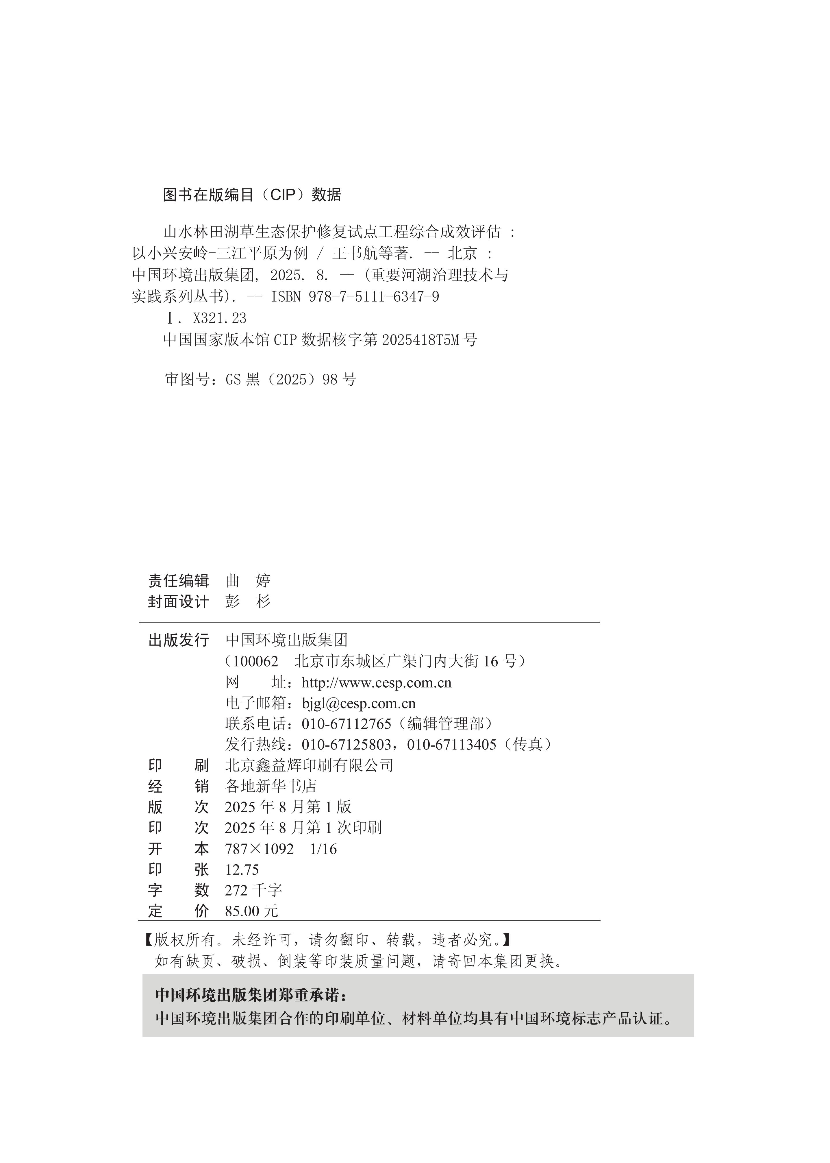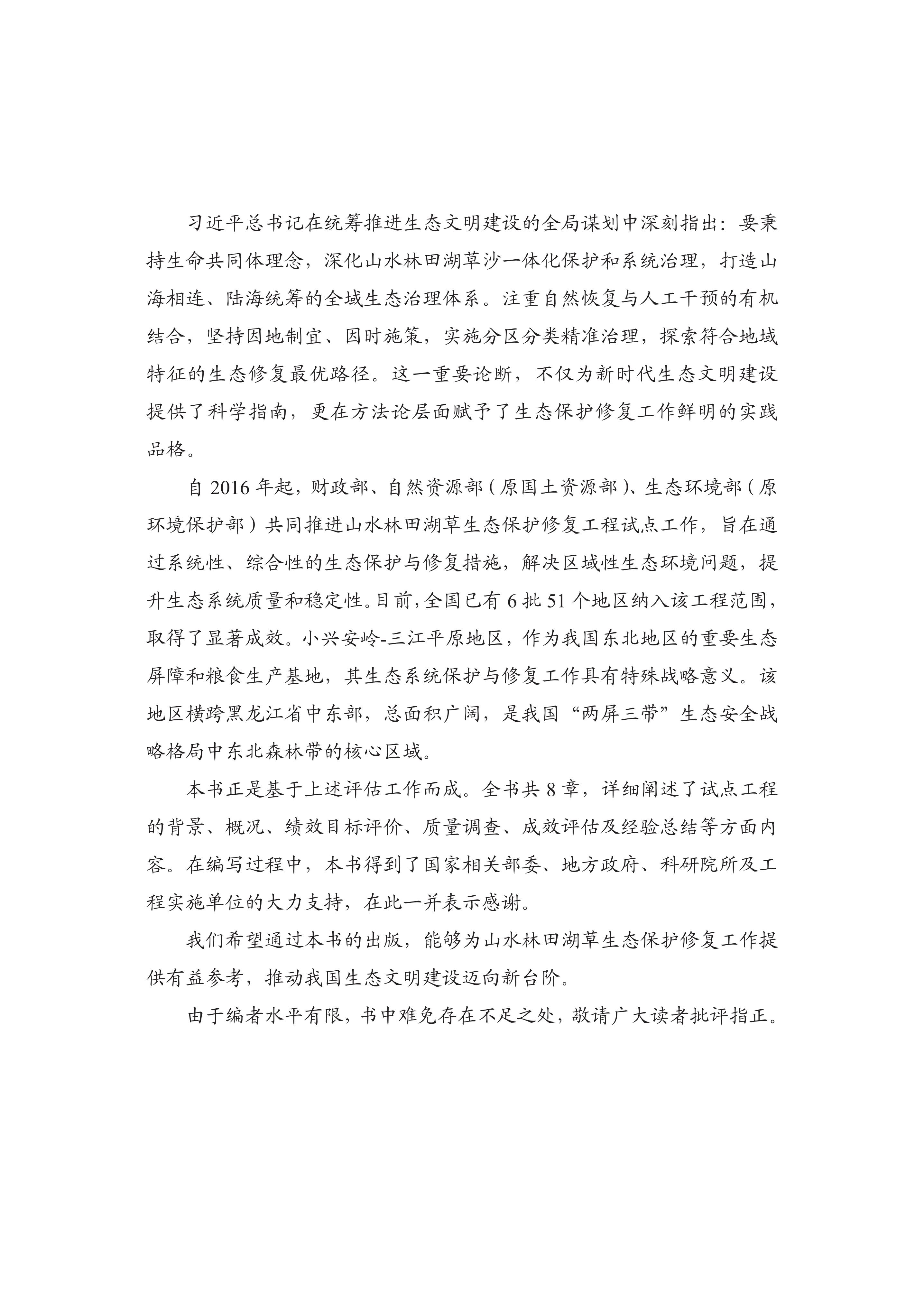 山水林田湖草生态保护修复试点工程综合成效评估 : 以小兴安岭——三江平原为例9787511163479