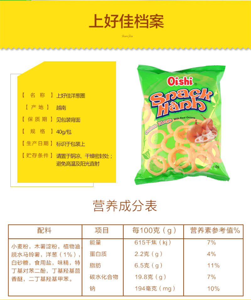 上好佳进口洋葱圈40g*5袋【XPTX】
