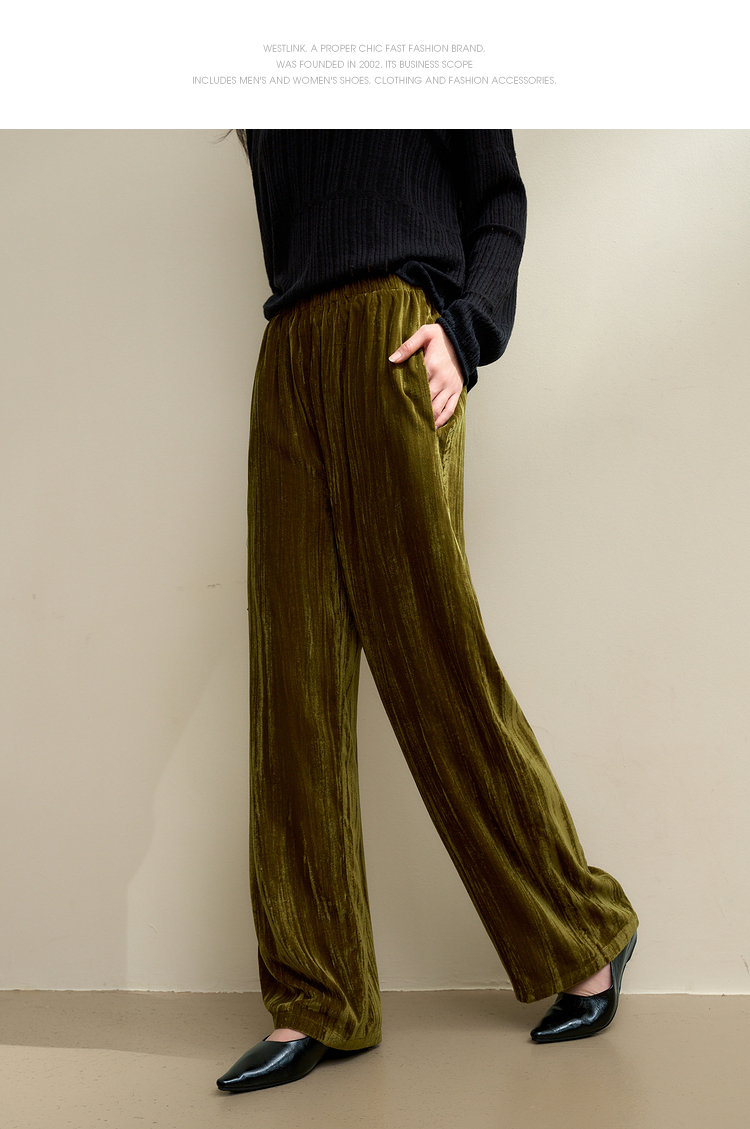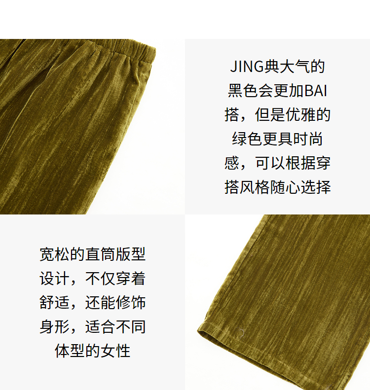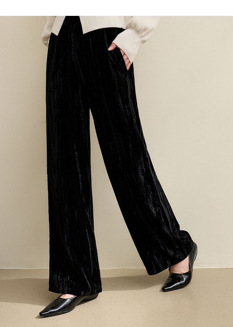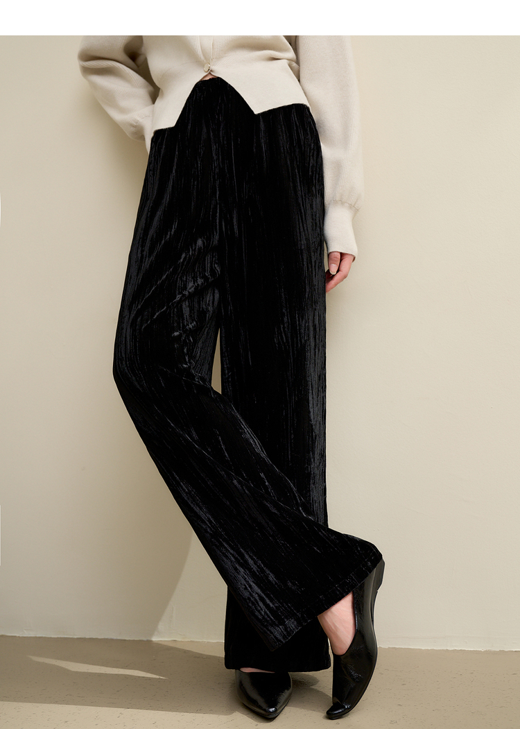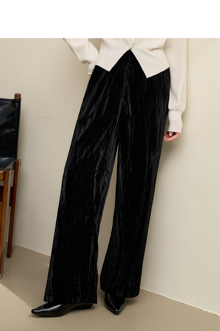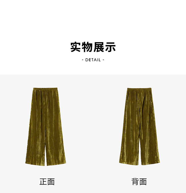 经典百搭简约丝绒直筒裤女秋冬松紧腰加厚保暖显瘦阔腿裤V3842948