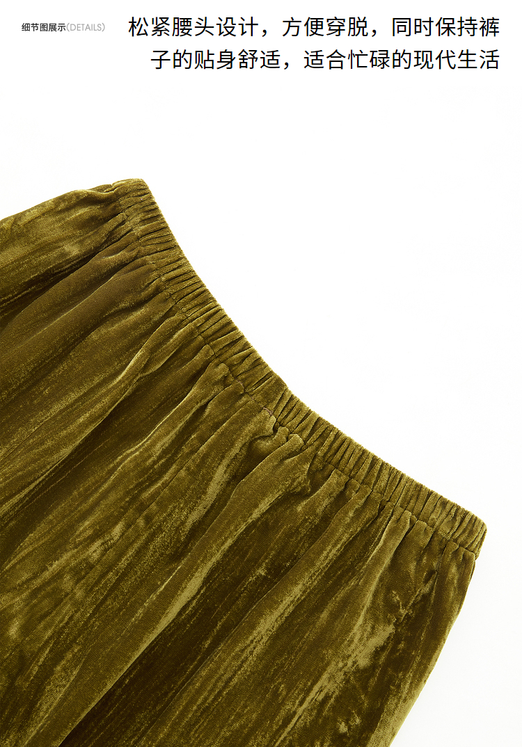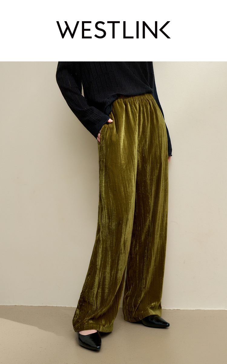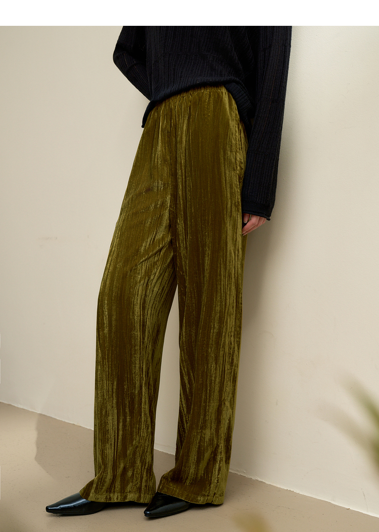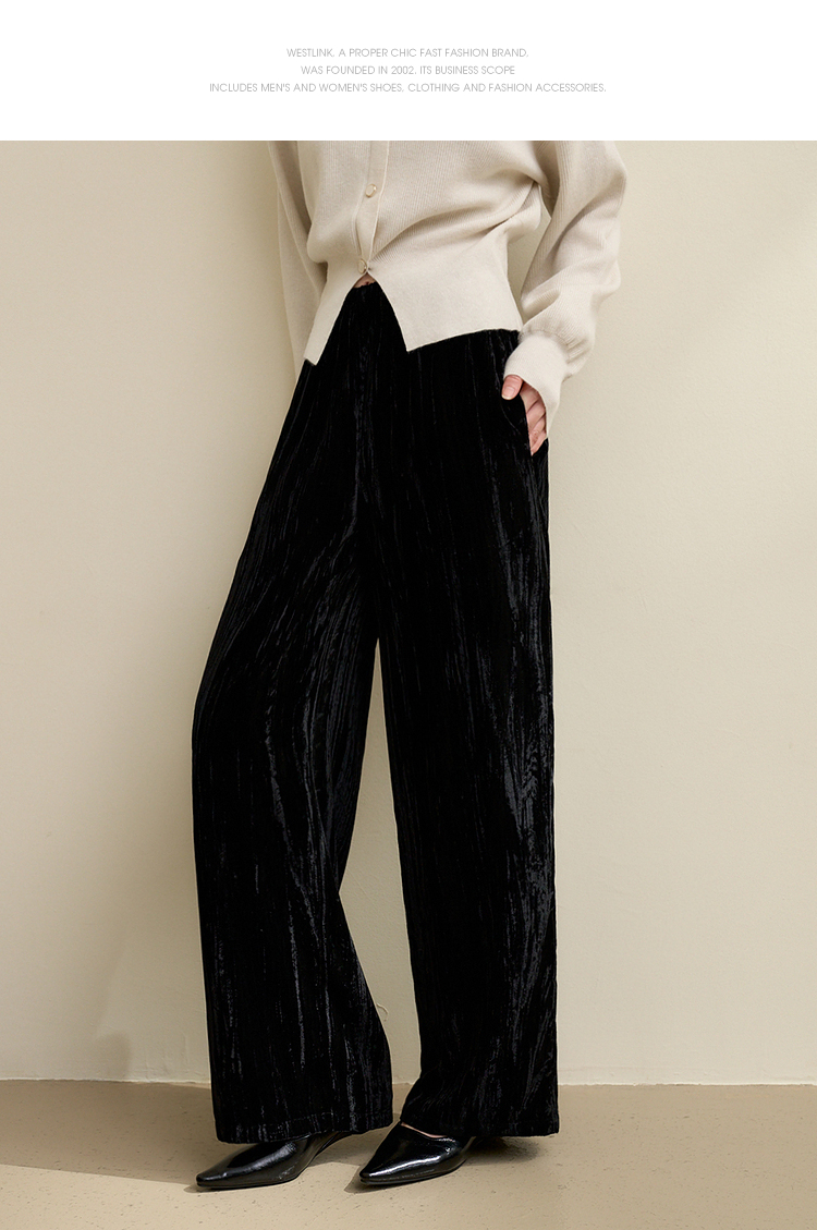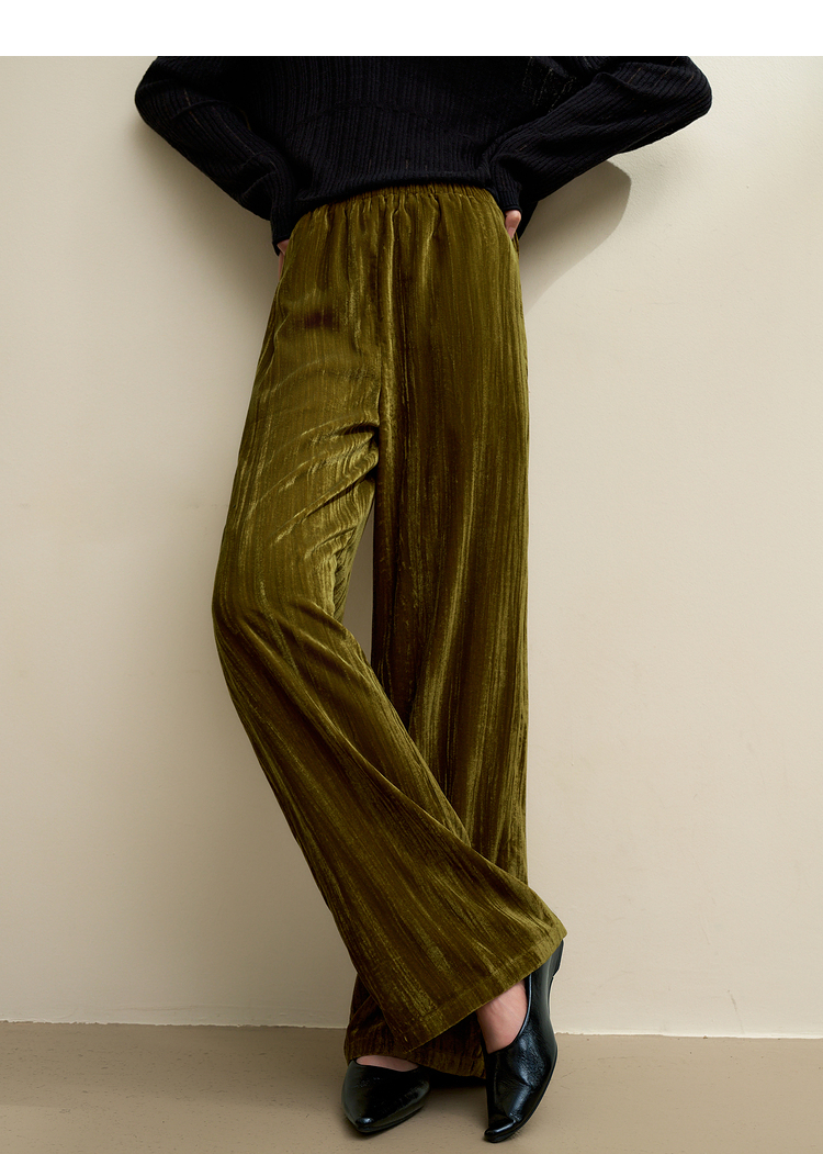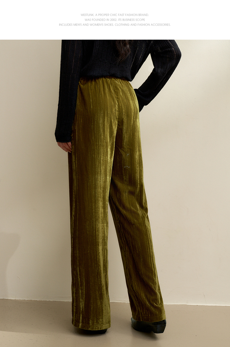 经典百搭简约丝绒直筒裤女秋冬松紧腰加厚保暖显瘦阔腿裤V3842948