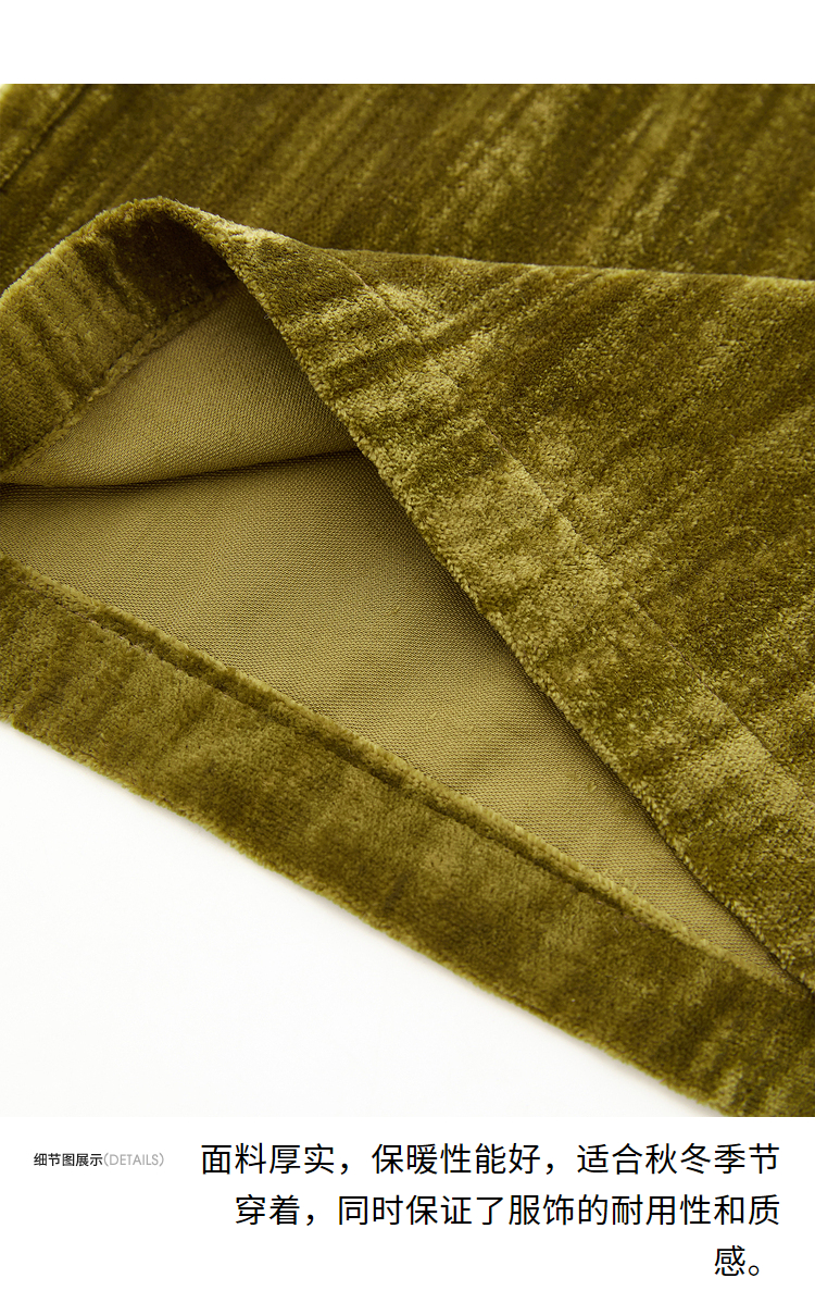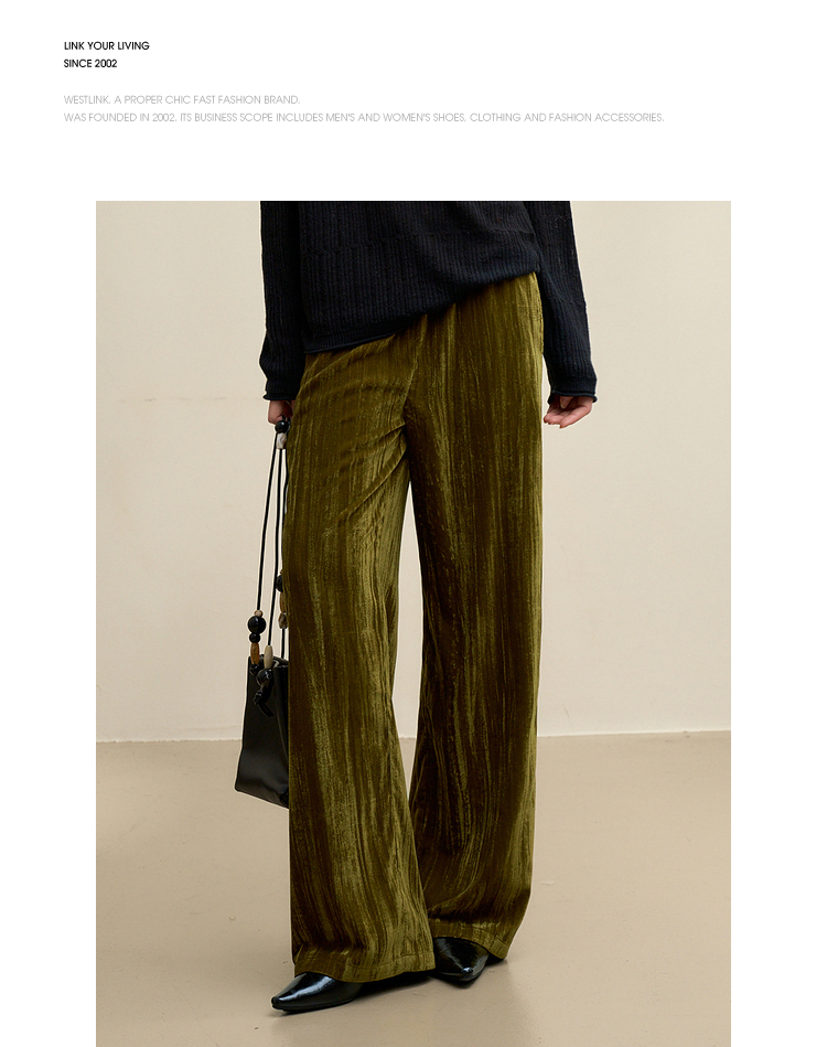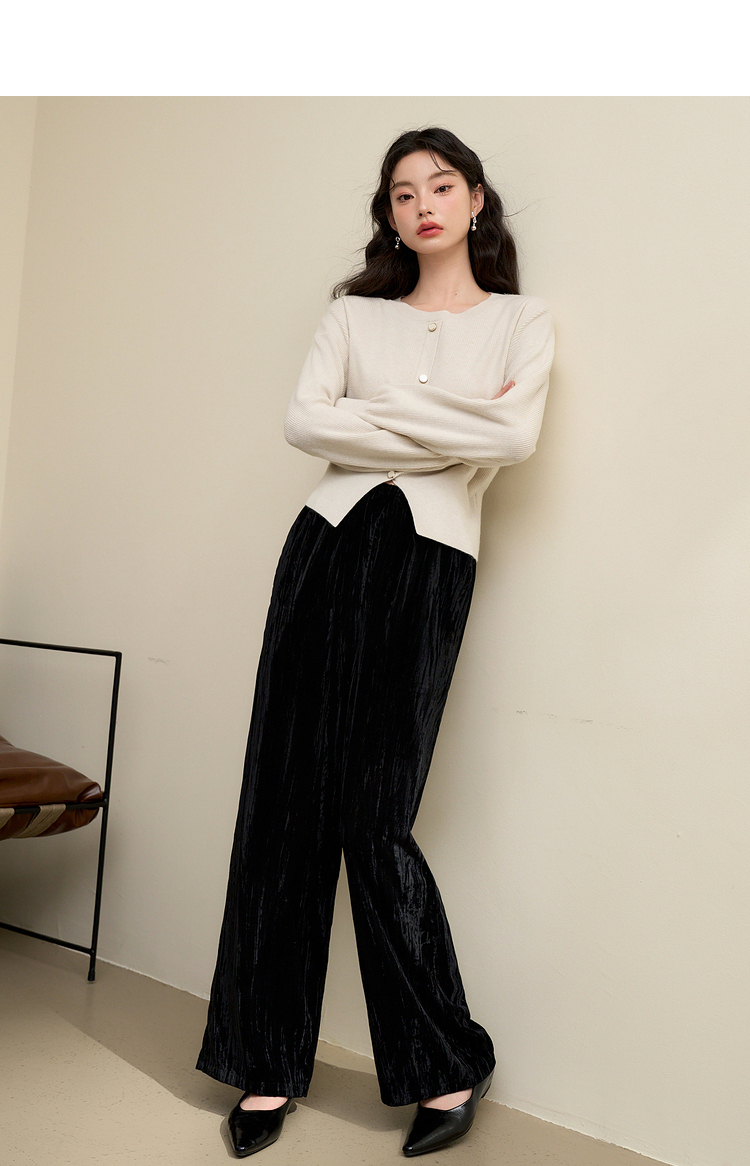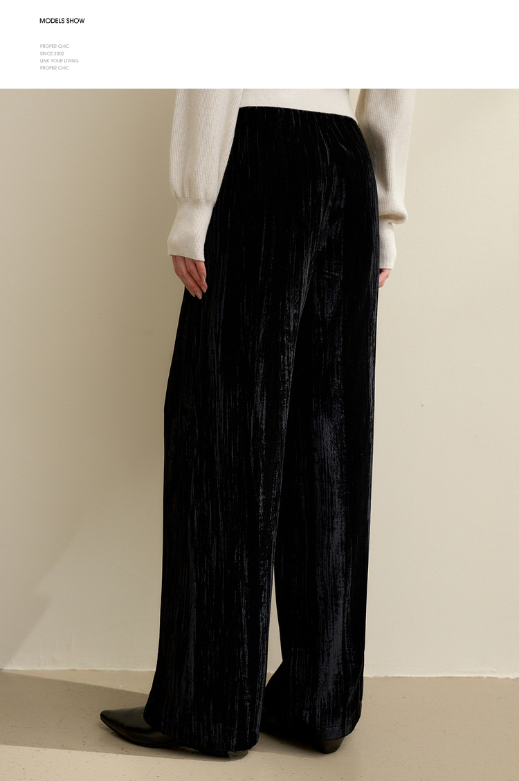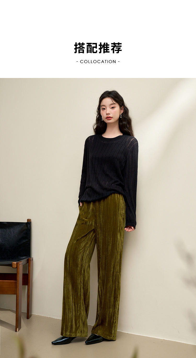 经典百搭简约丝绒直筒裤女秋冬松紧腰加厚保暖显瘦阔腿裤V3842948