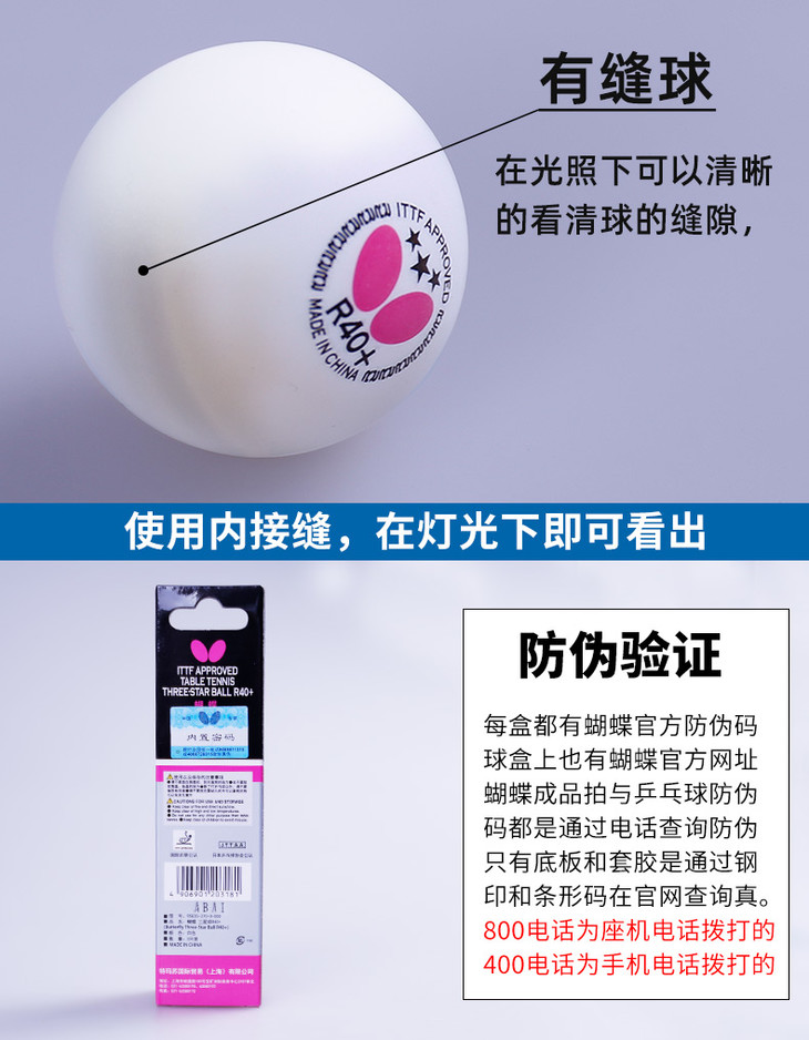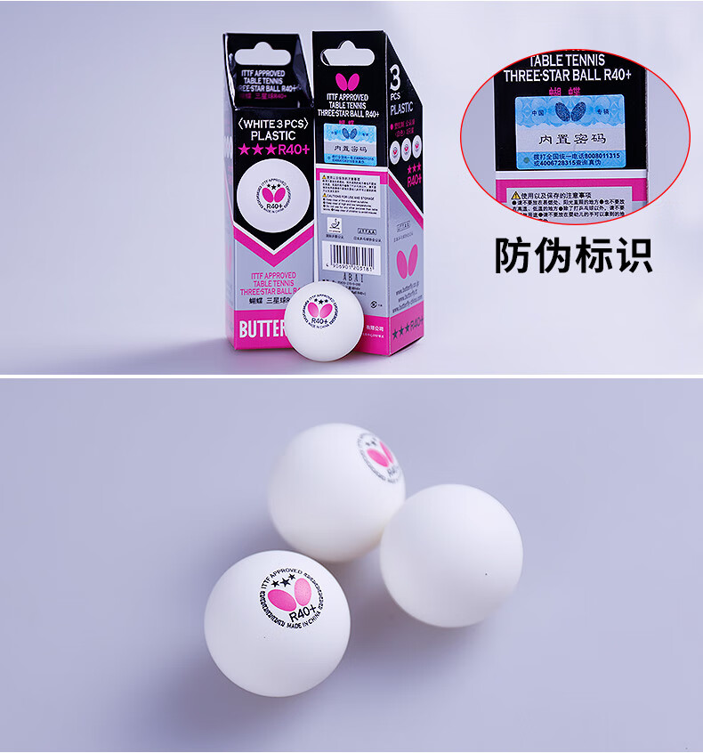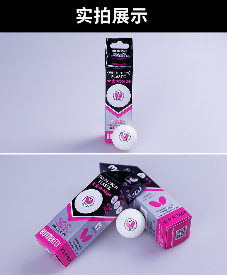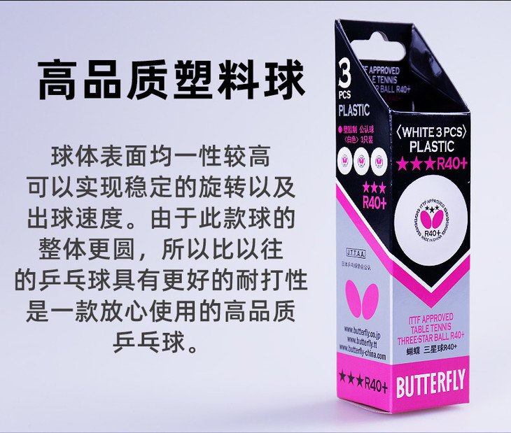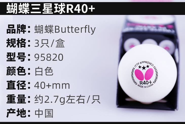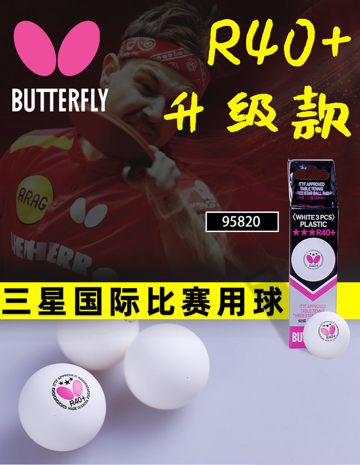 蝴蝶塑料三星R40+乒乓球95820(三只装)