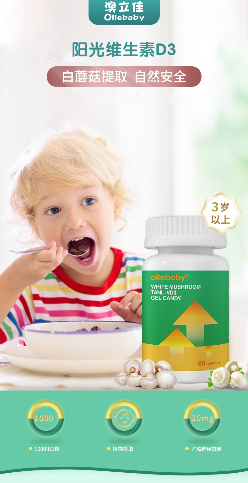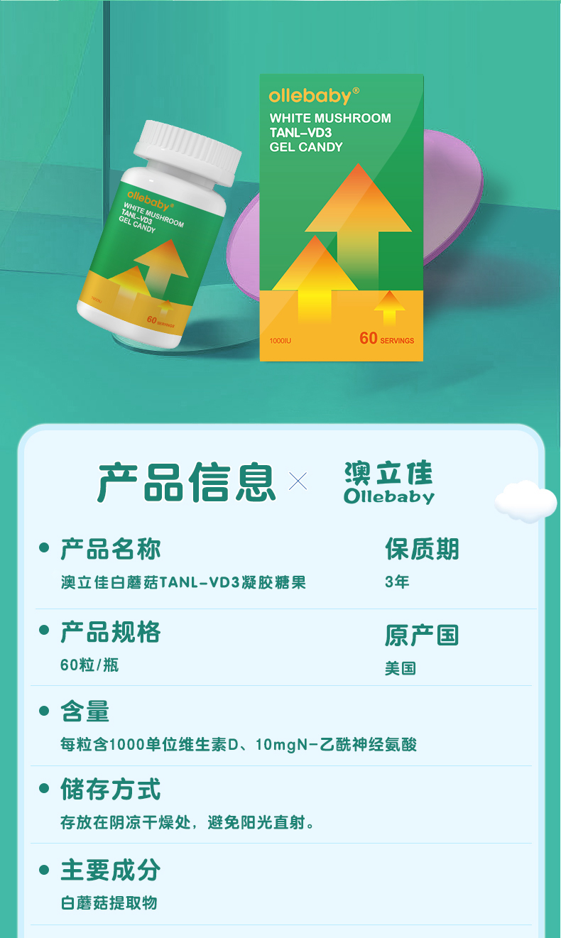 【官方直营】澳立佳ollebaby美国进口高含量维D凝胶糖果