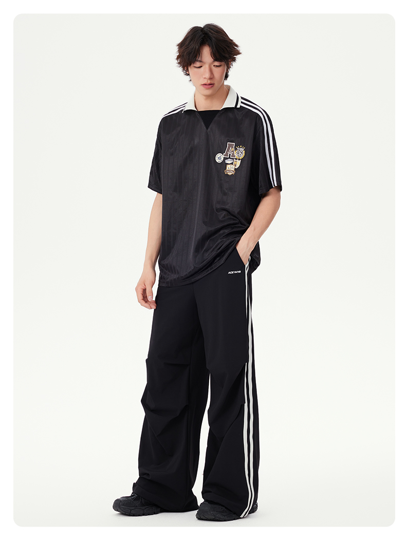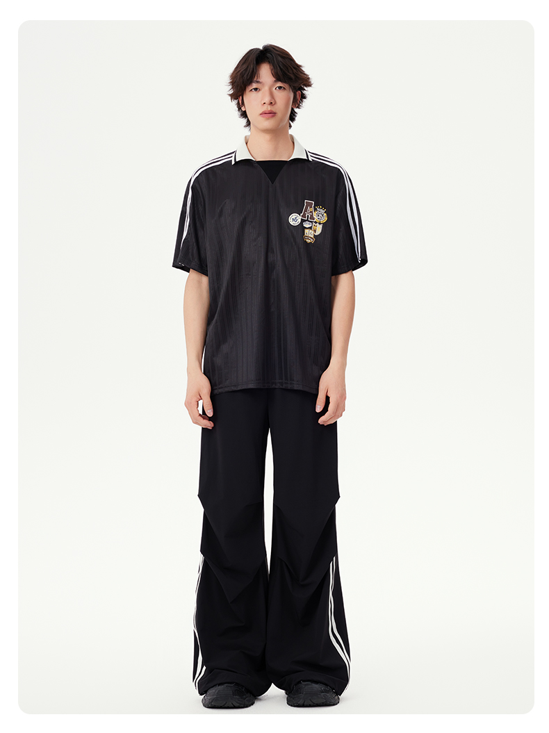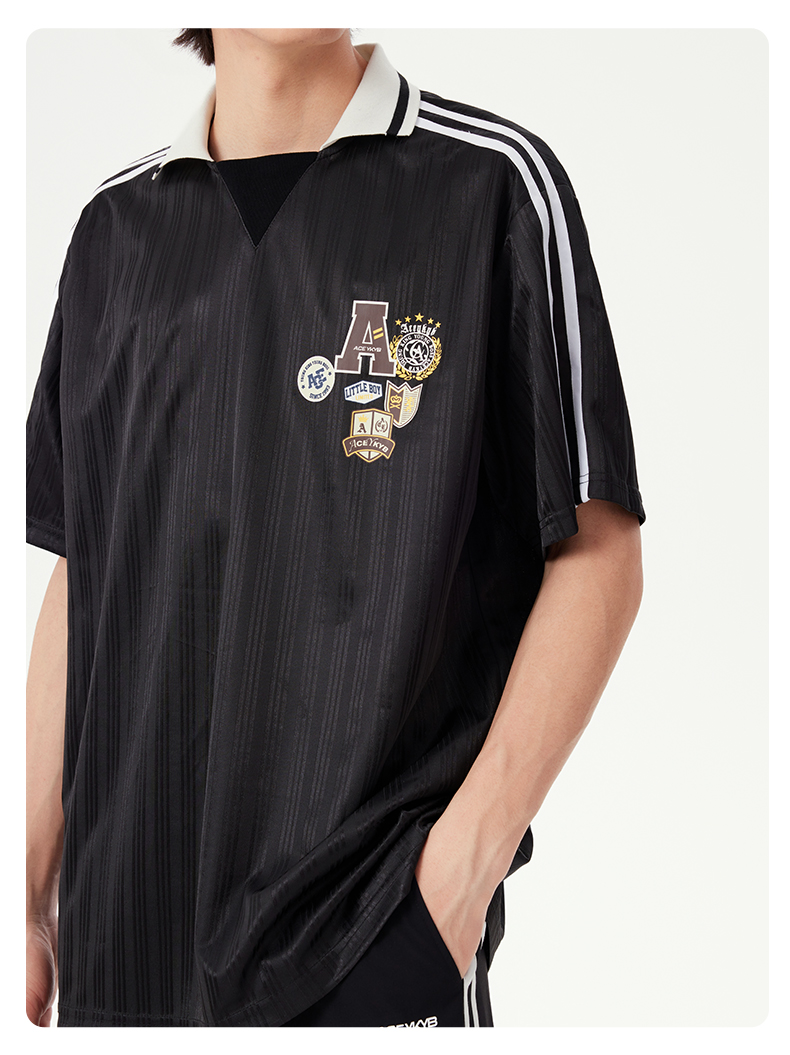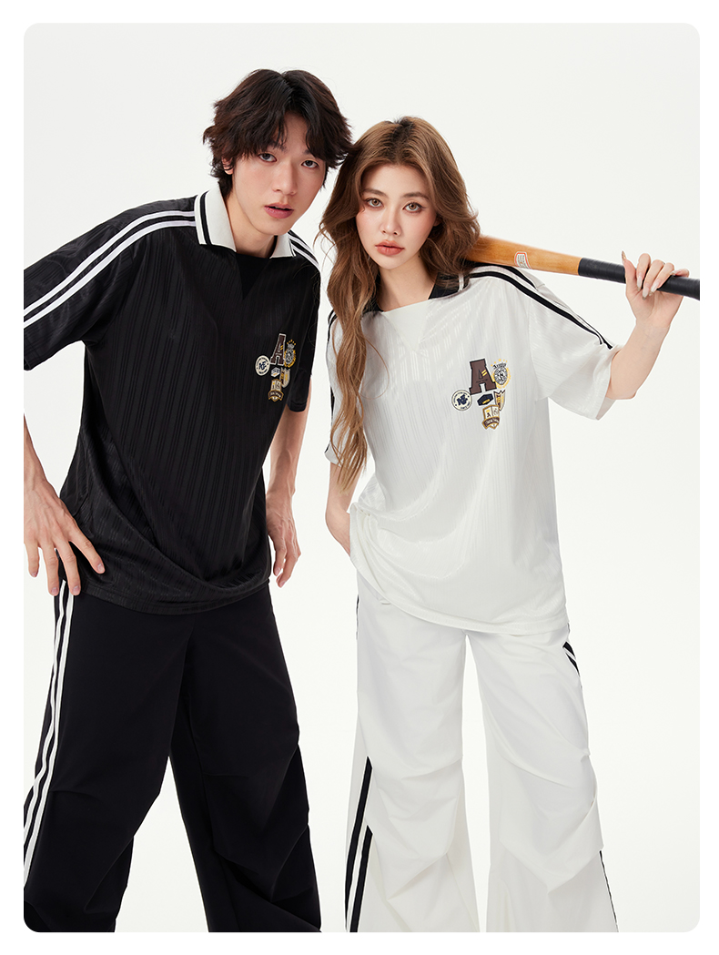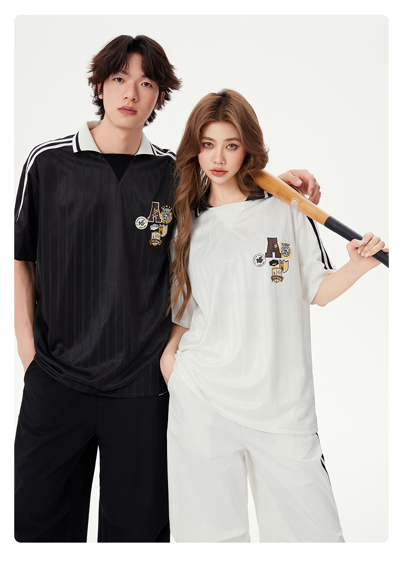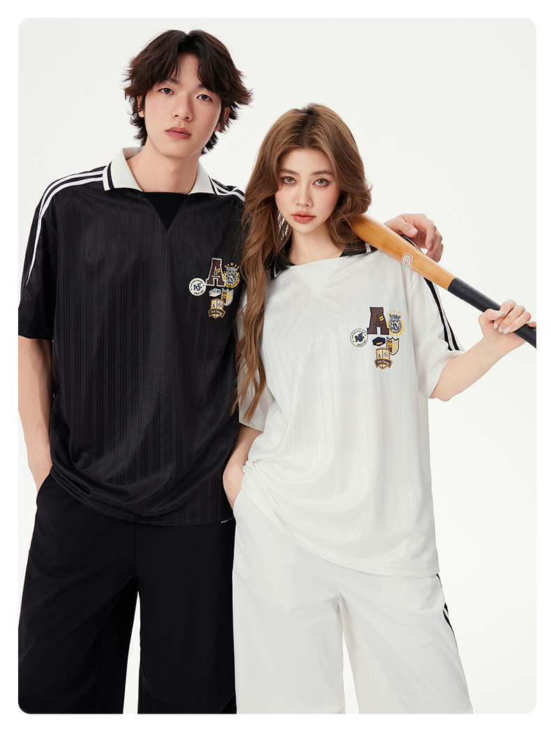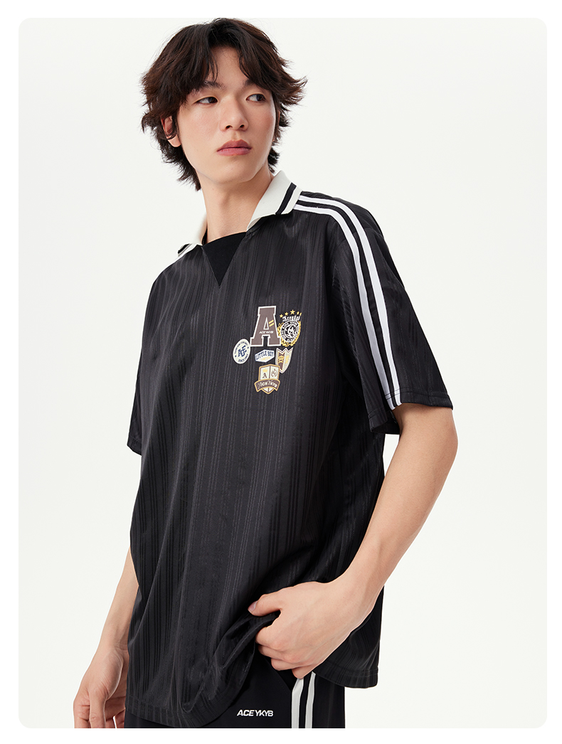 YKYB黄子韬POLO衫情侣装街头潮流学院风透气吸湿时尚复古混纺足球条纹上衣Y52NPL057