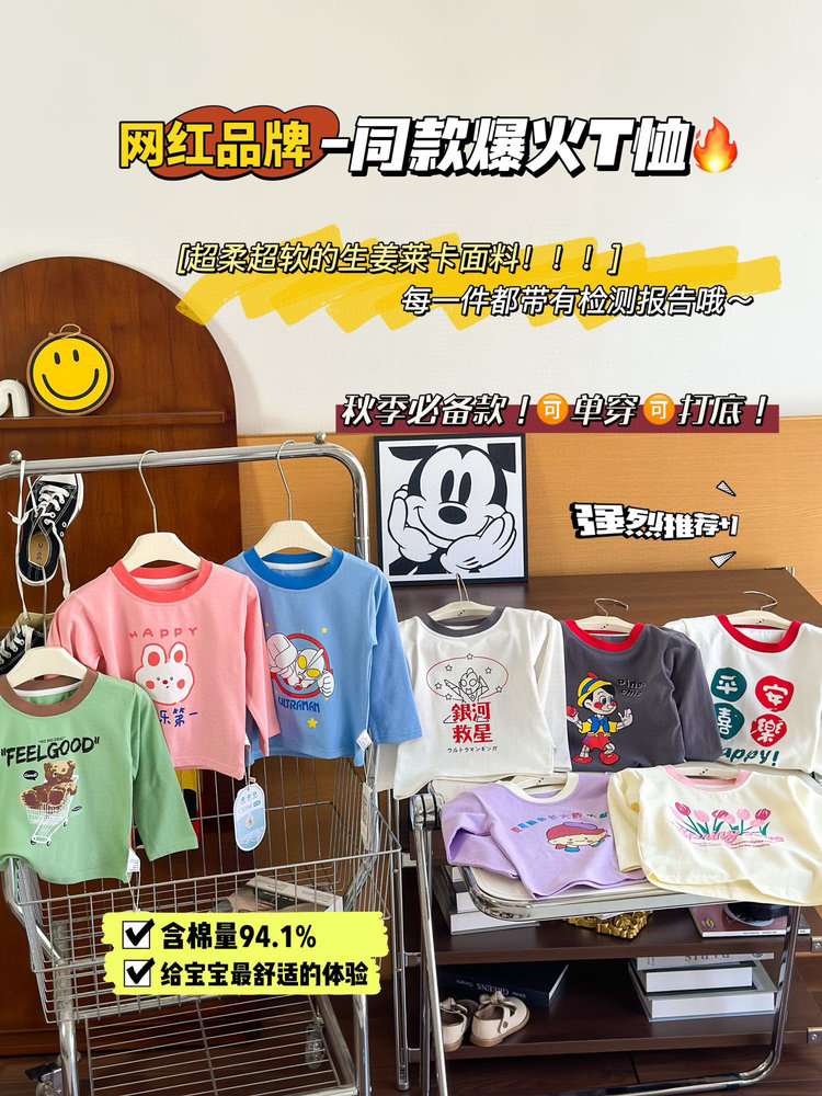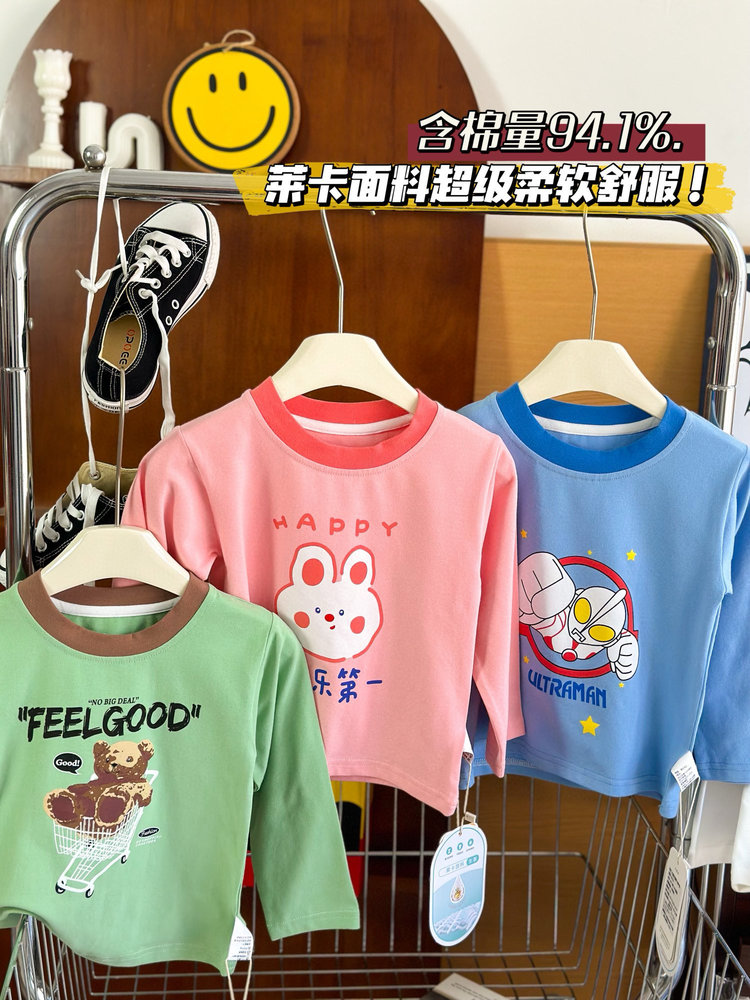 第二件0元,加入购物车下单【3A生姜抗菌莱卡插肩长袖T】血亏款 卡通图案精致萌趣 亲肤透气 单穿打底都合适