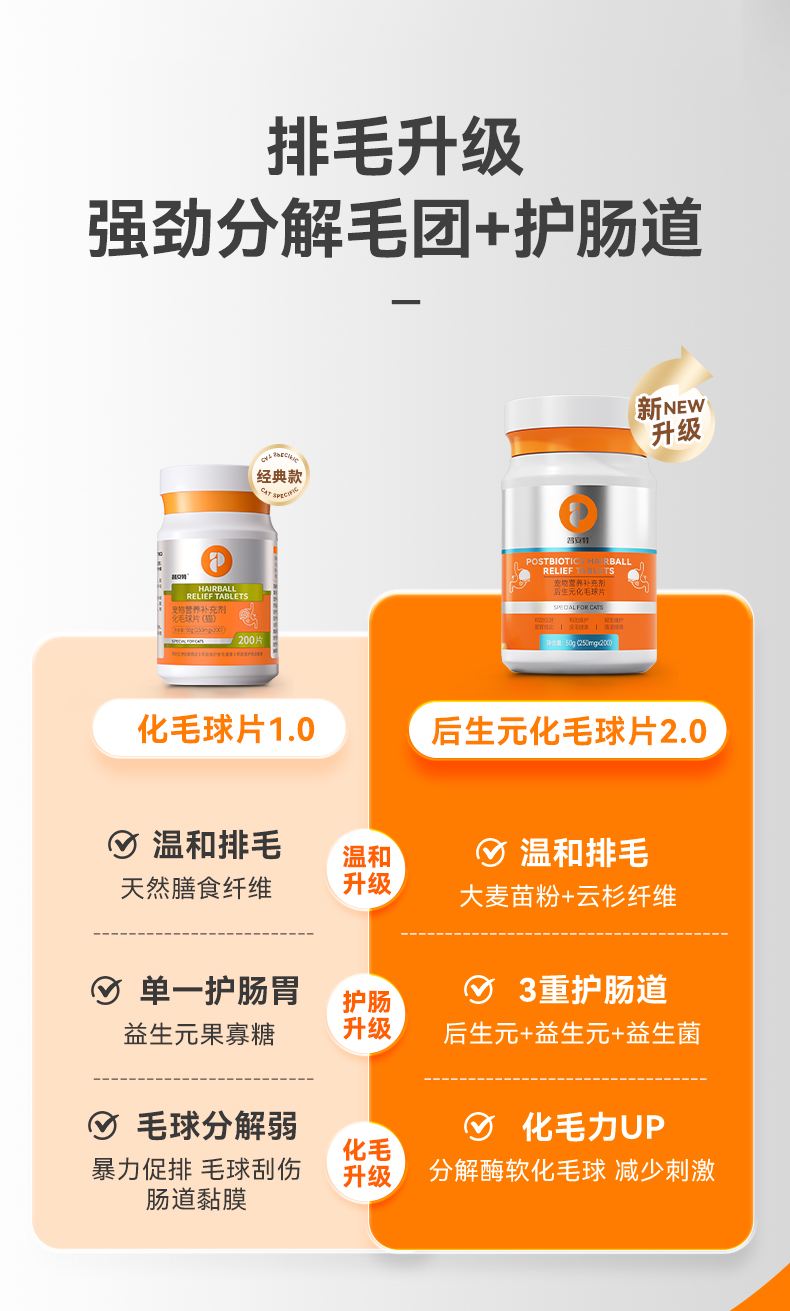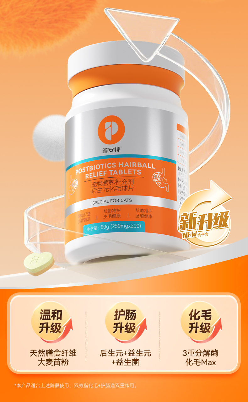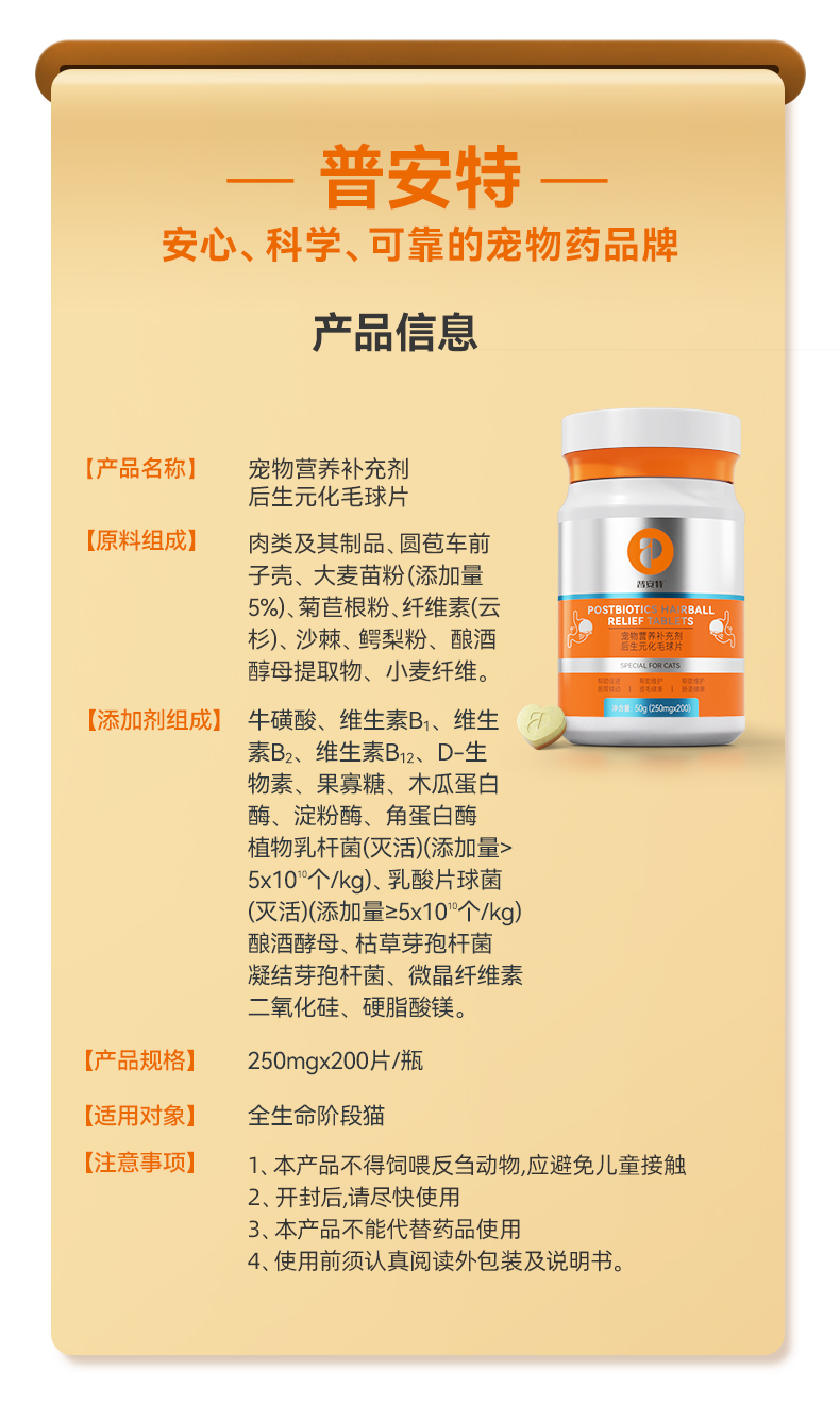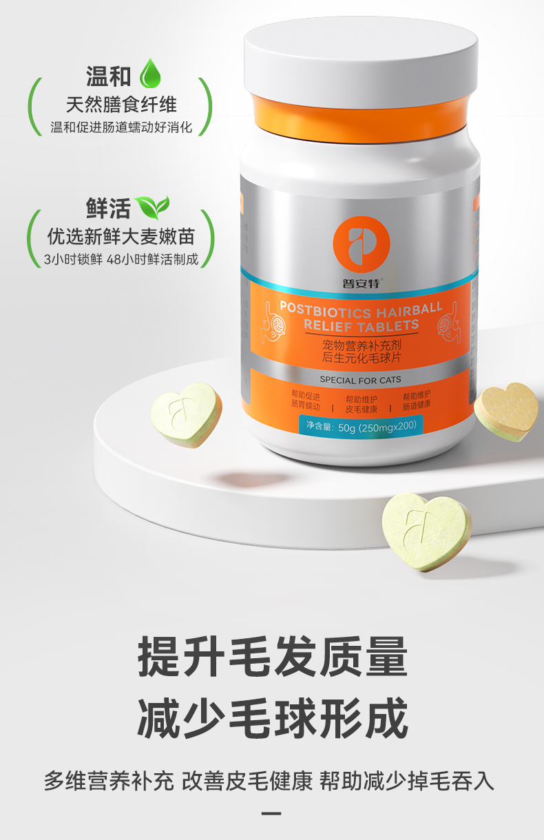 【65元任选2件】普安特后生元化毛球片双色双效猫用化毛片