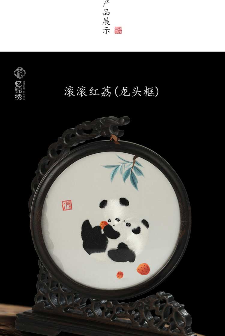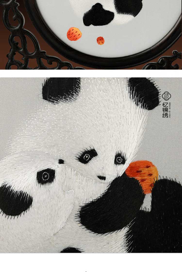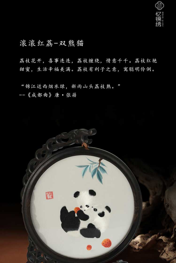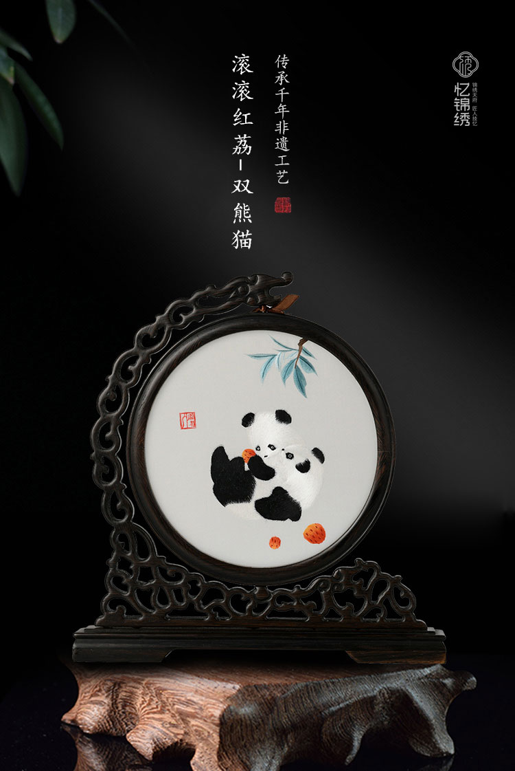 蜀绣滚滚红荔双熊猫非遗手工工艺