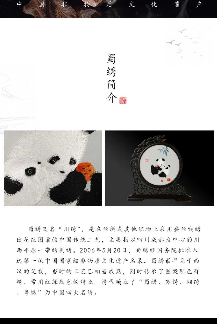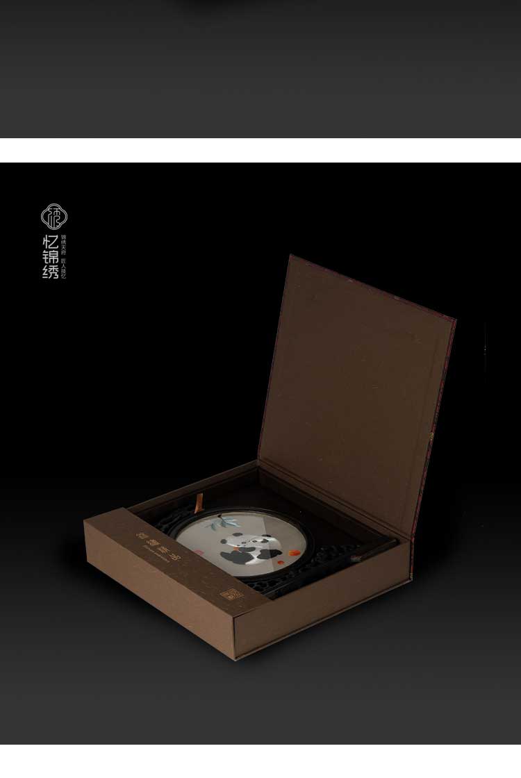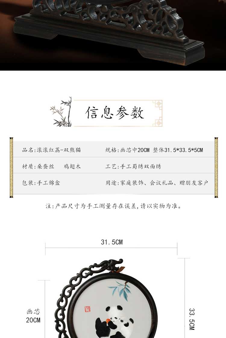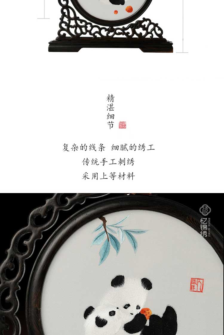 蜀绣滚滚红荔双熊猫非遗手工工艺