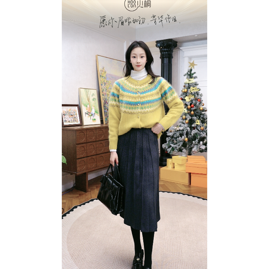 火桐hooton 绵羊毛百褶毛呢半身裙9966