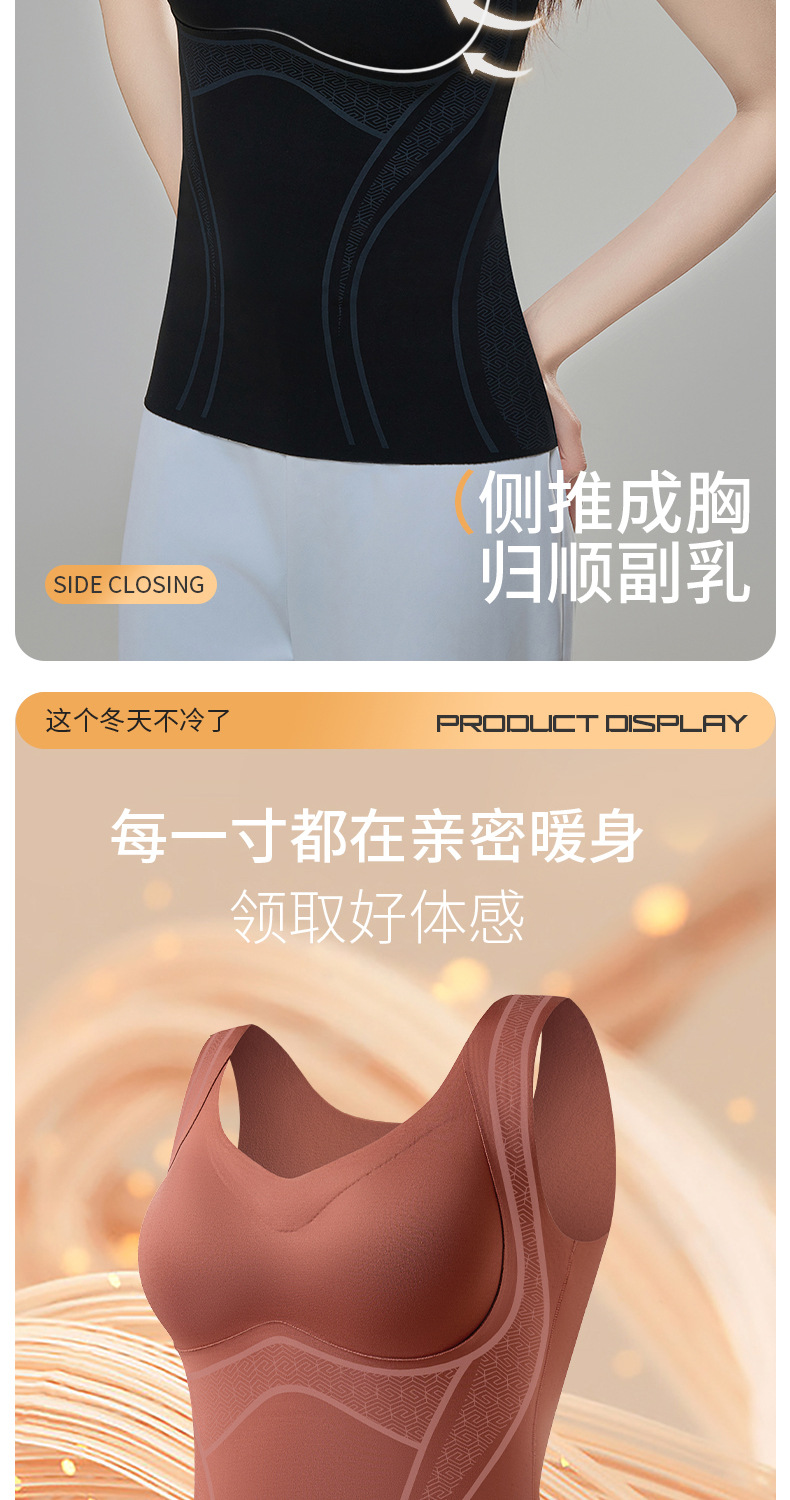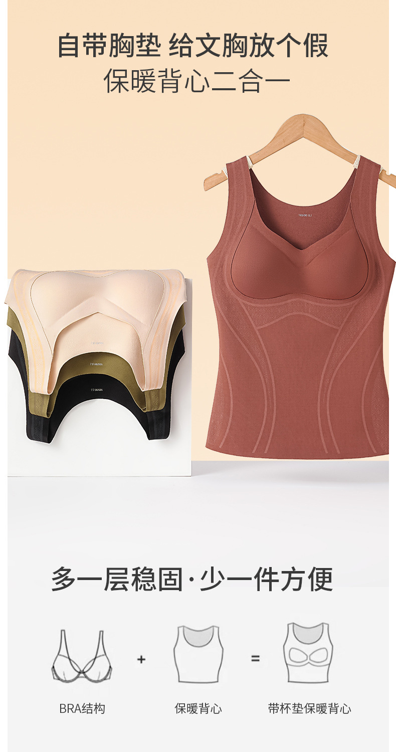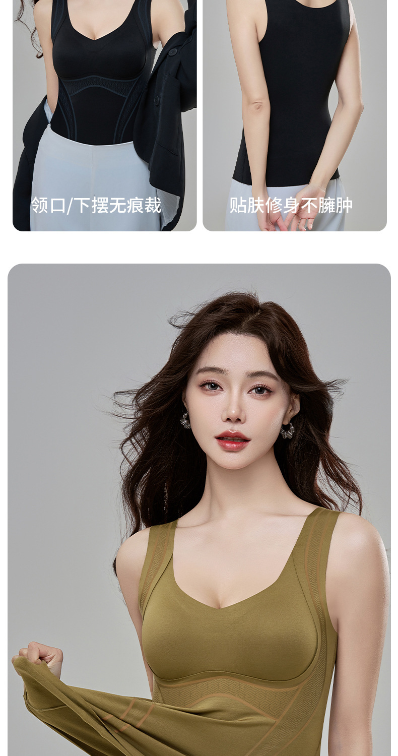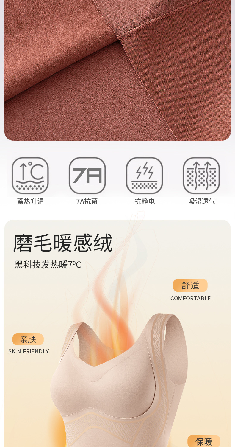 【内外兼修,温暖舒适】7A仰菌蚕丝羊绒背心,轻盈却具保暖性,让您在冬季户外自由穿行。加厚发热加绒,双层固定杯设计,舒适无痕!