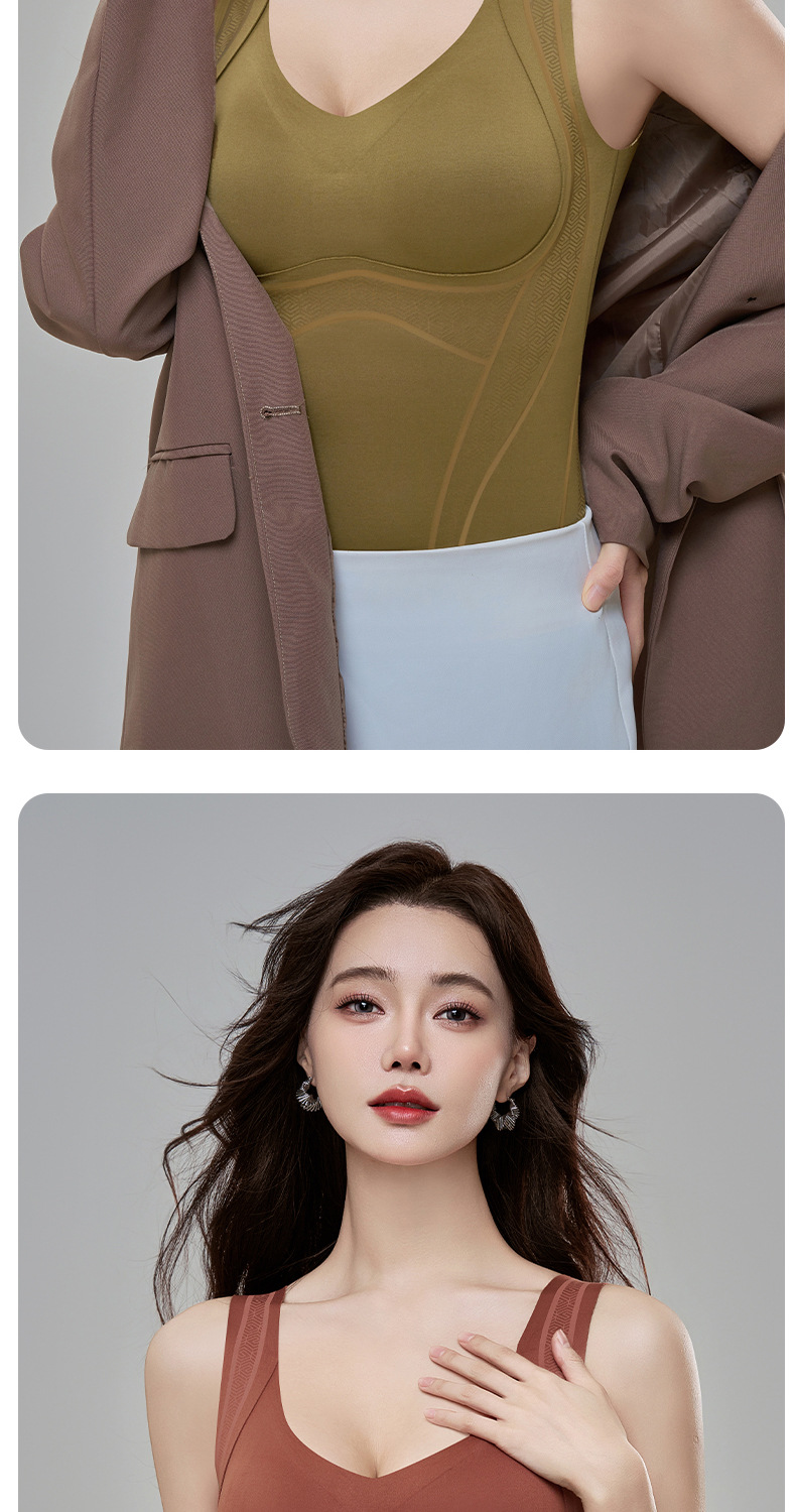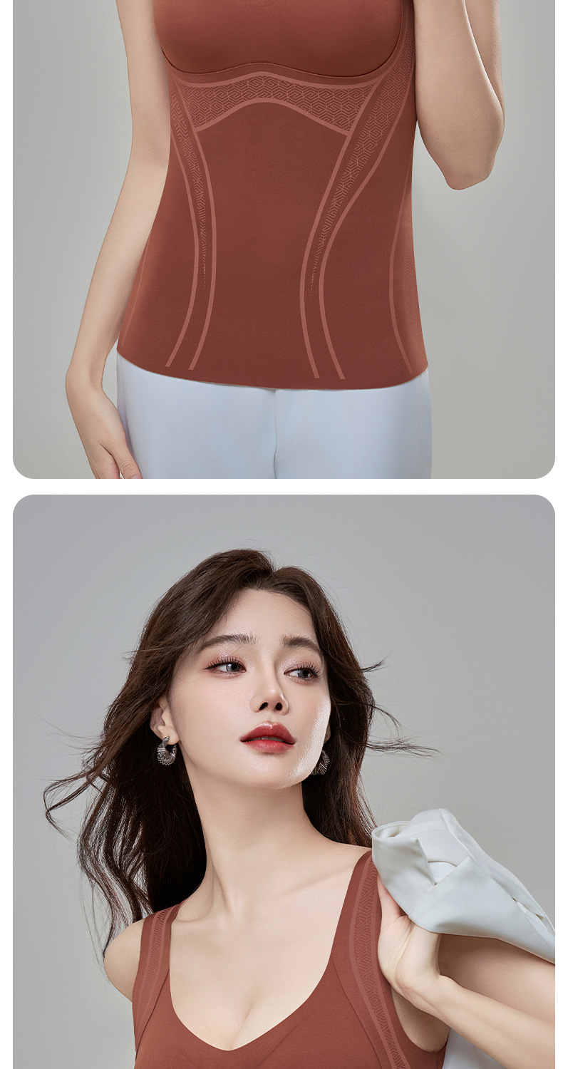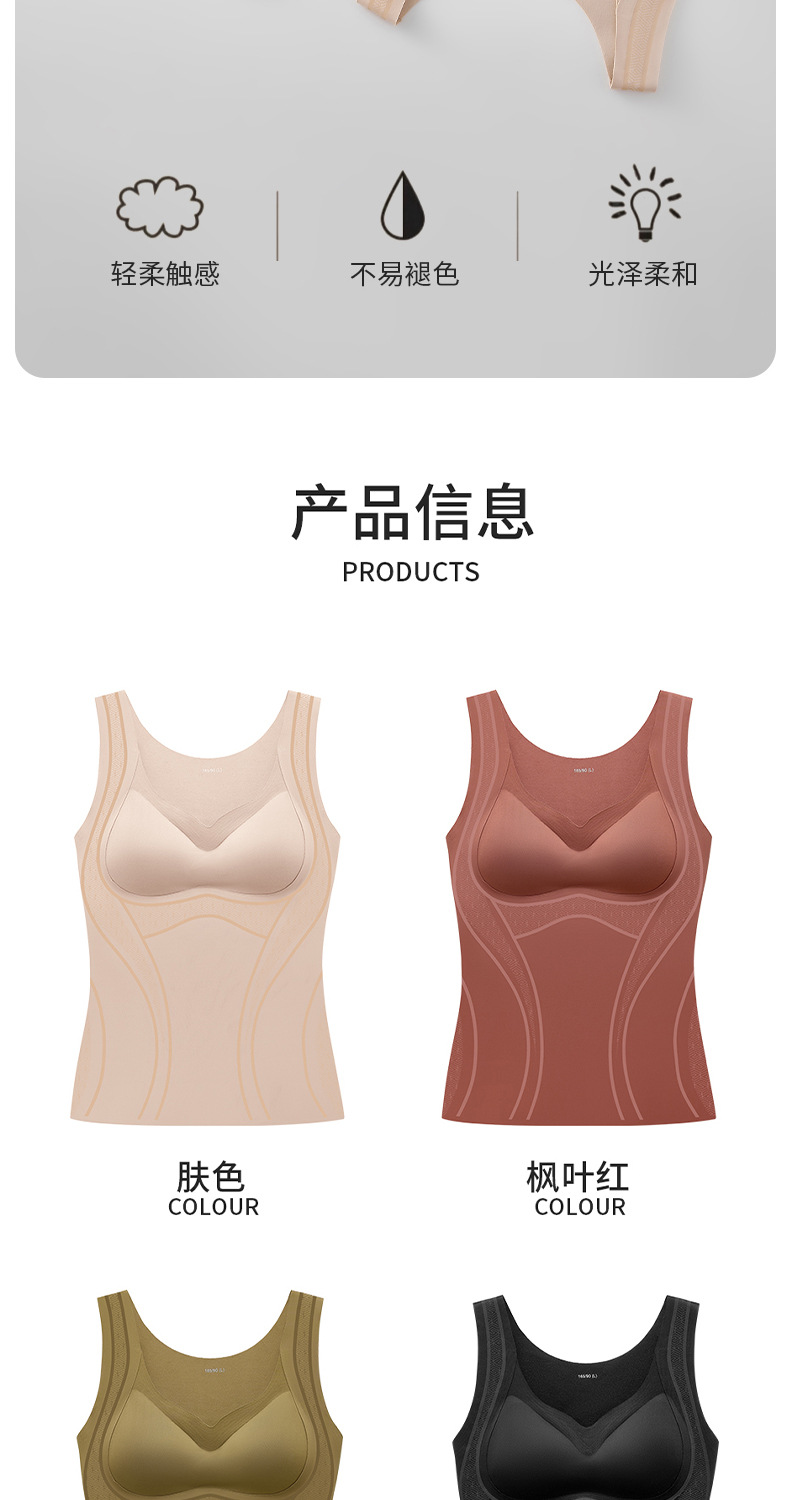 【内外兼修,温暖舒适】7A仰菌蚕丝羊绒背心,轻盈却具保暖性,让您在冬季户外自由穿行。加厚发热加绒,双层固定杯设计,舒适无痕!