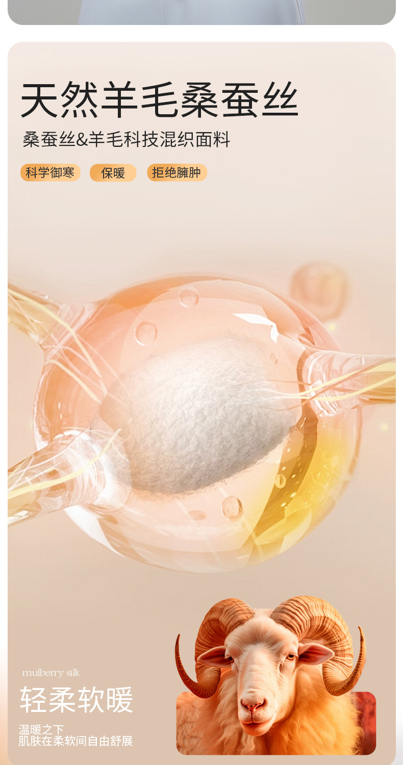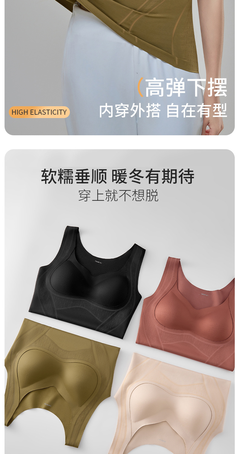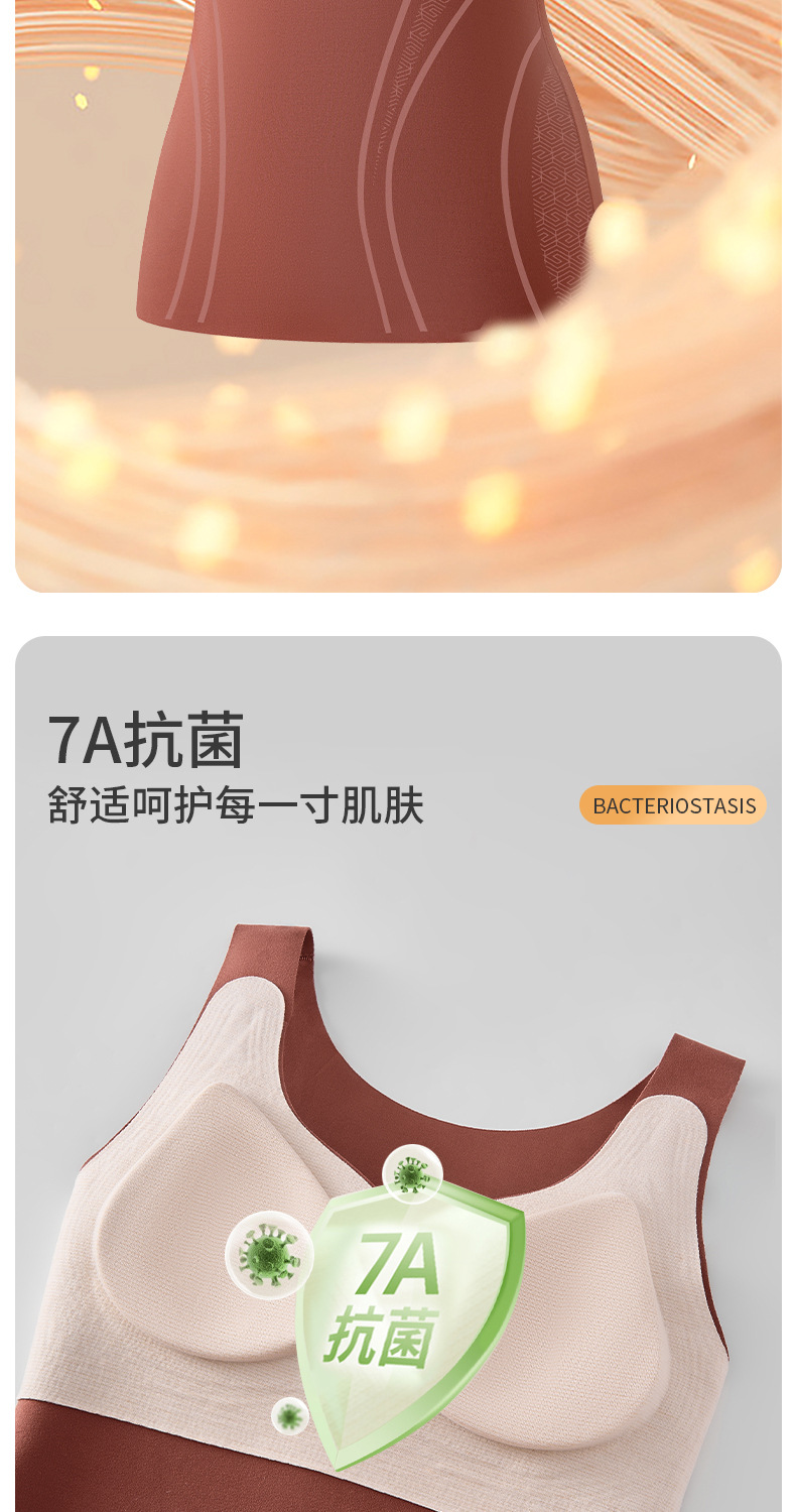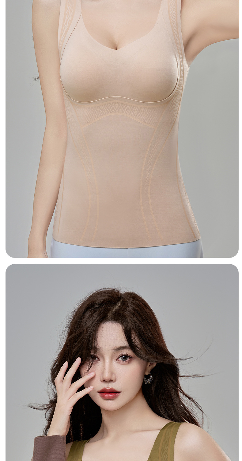 【内外兼修,温暖舒适】7A仰菌蚕丝羊绒背心,轻盈却具保暖性,让您在冬季户外自由穿行。加厚发热加绒,双层固定杯设计,舒适无痕!