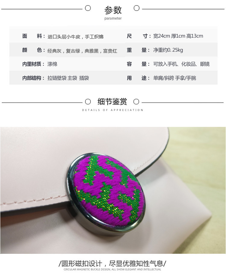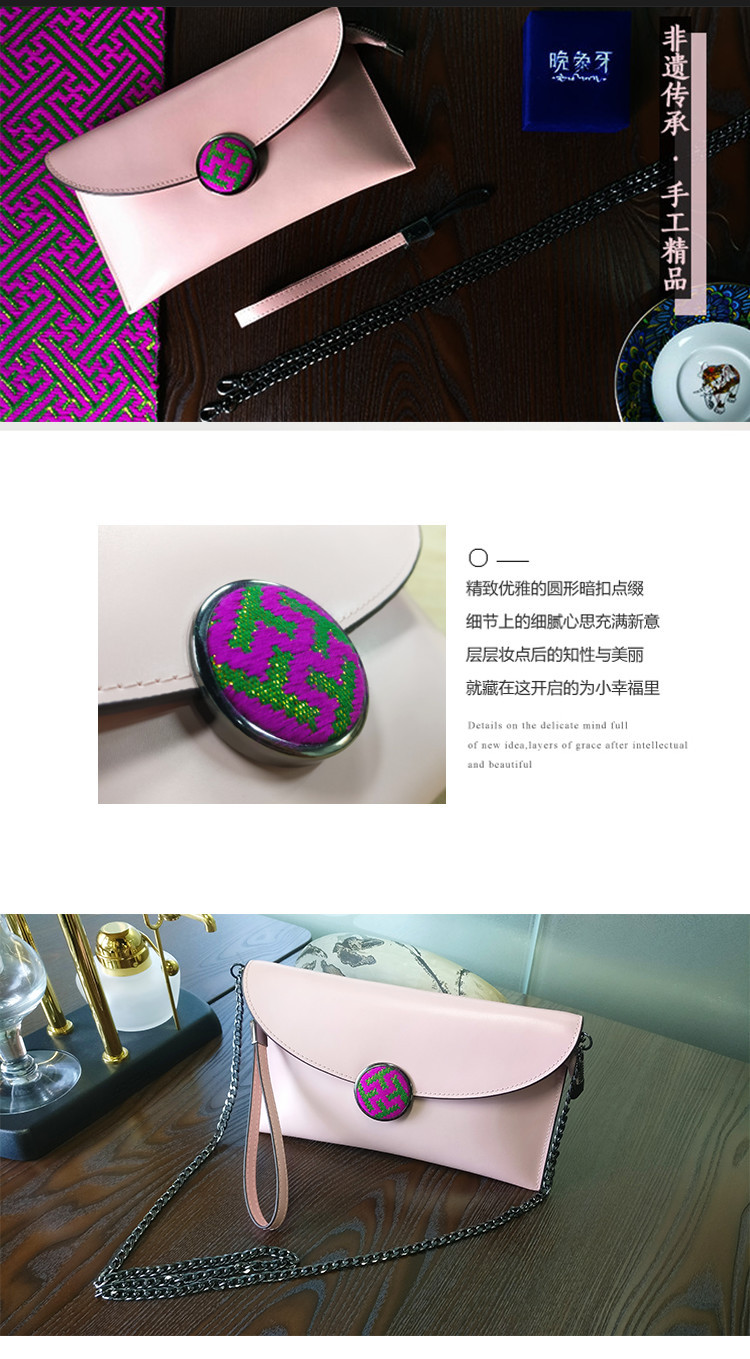 【非遗】织锦圆扣牛皮手拎包