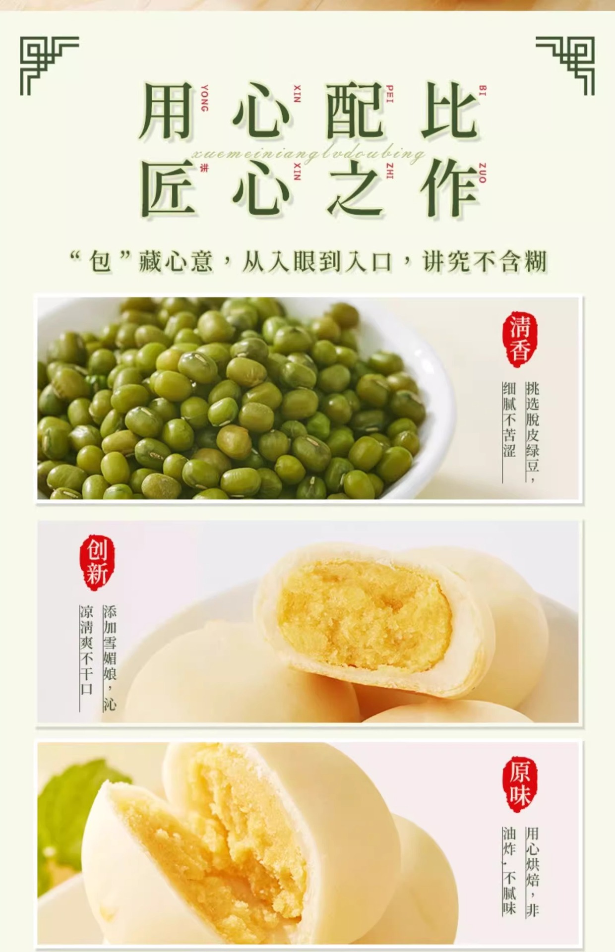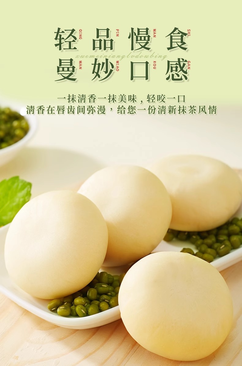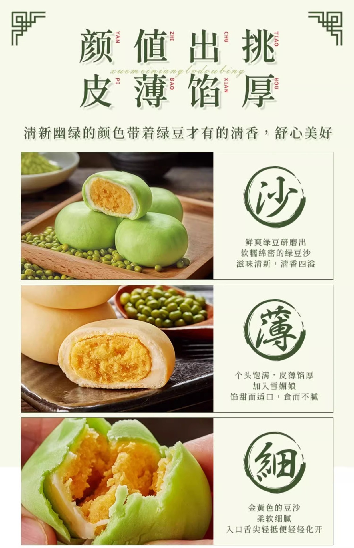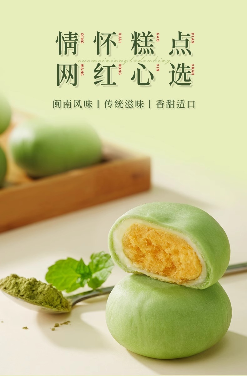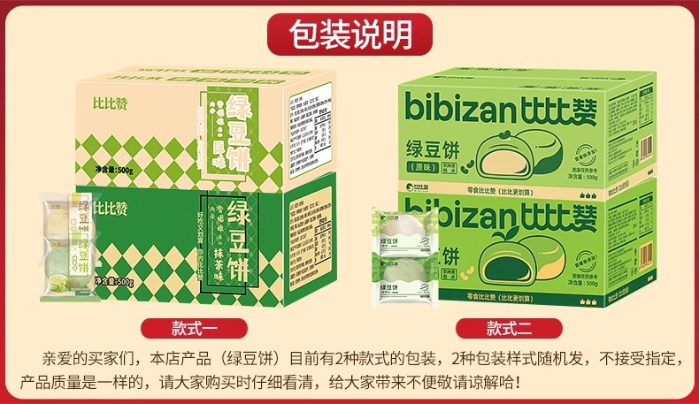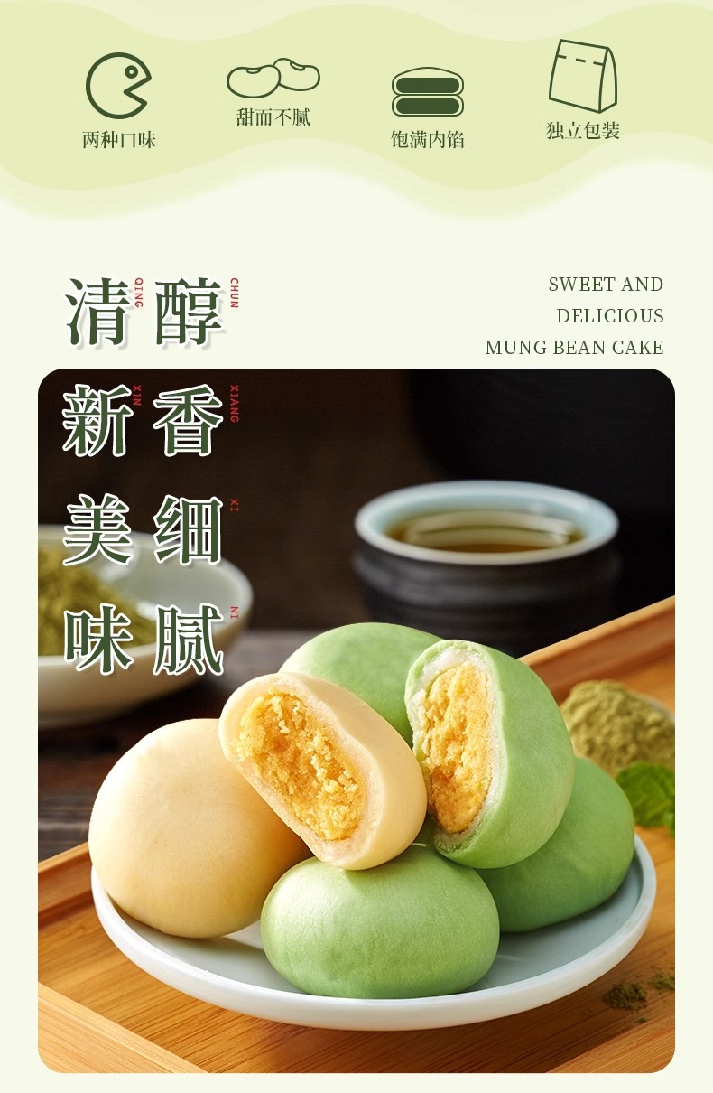 「皮薄馅多!独立包装」比比赞抹茶绿豆饼500g/箱 老式绿豆糕点面包整箱早餐解馋零食小吃休闲食品