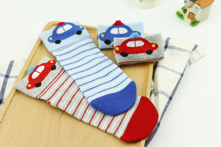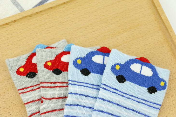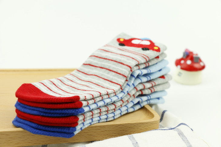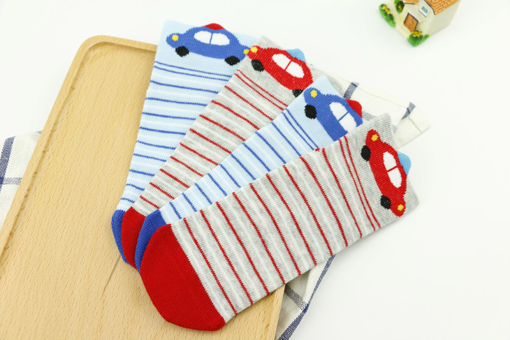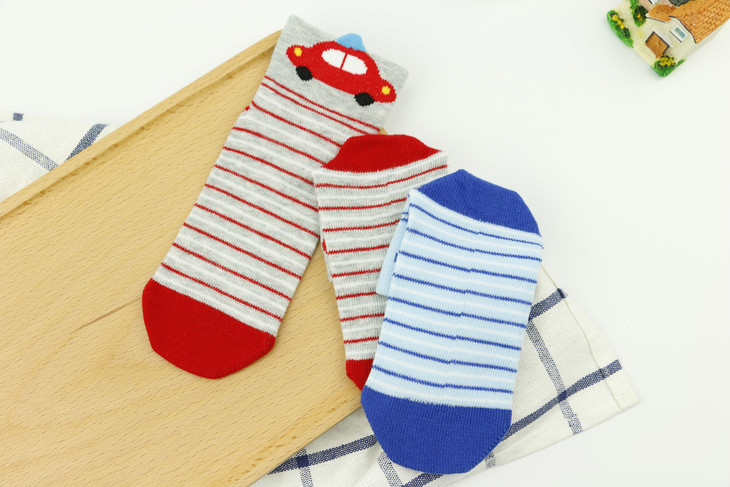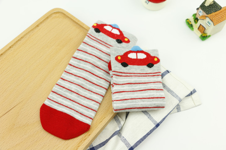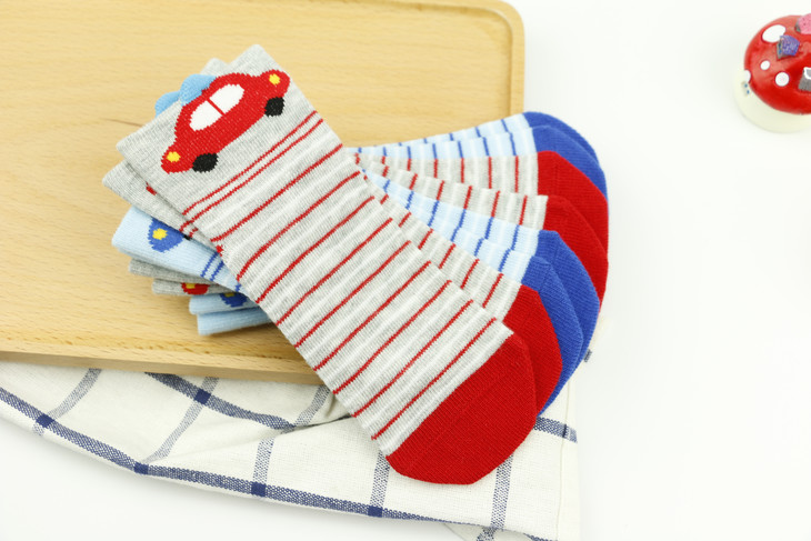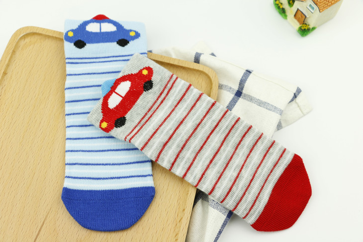 【19元6双】3-5岁丨小童条纹直板袜子 汽车彩色精梳棉袜字【813206】