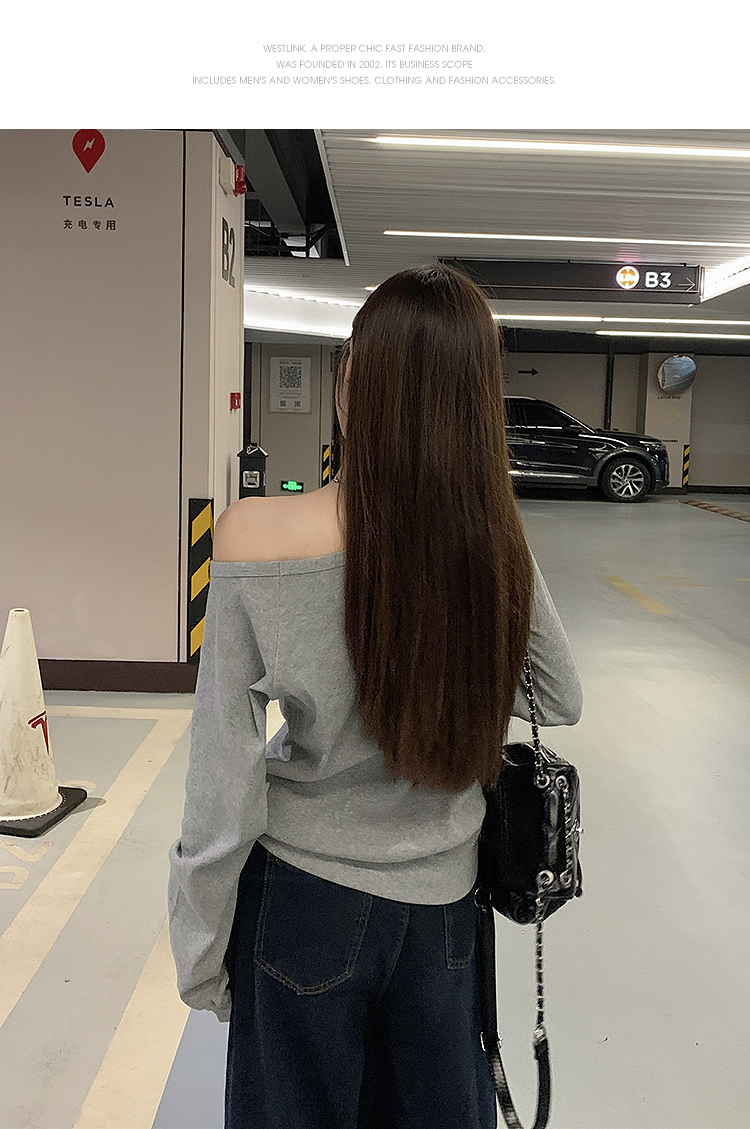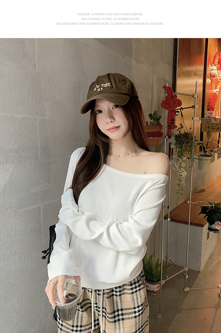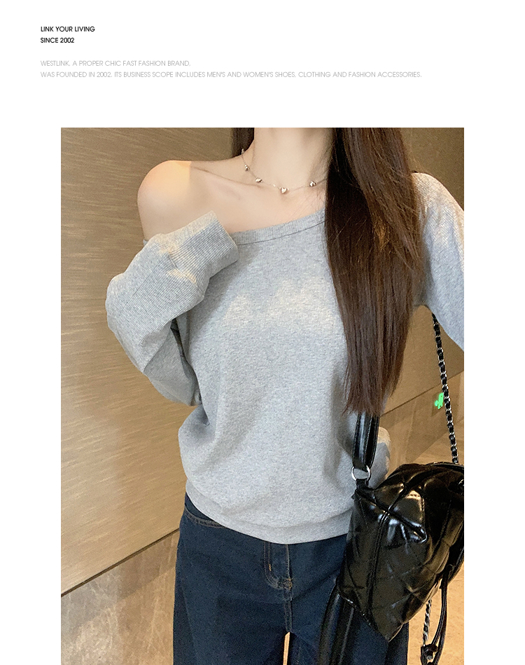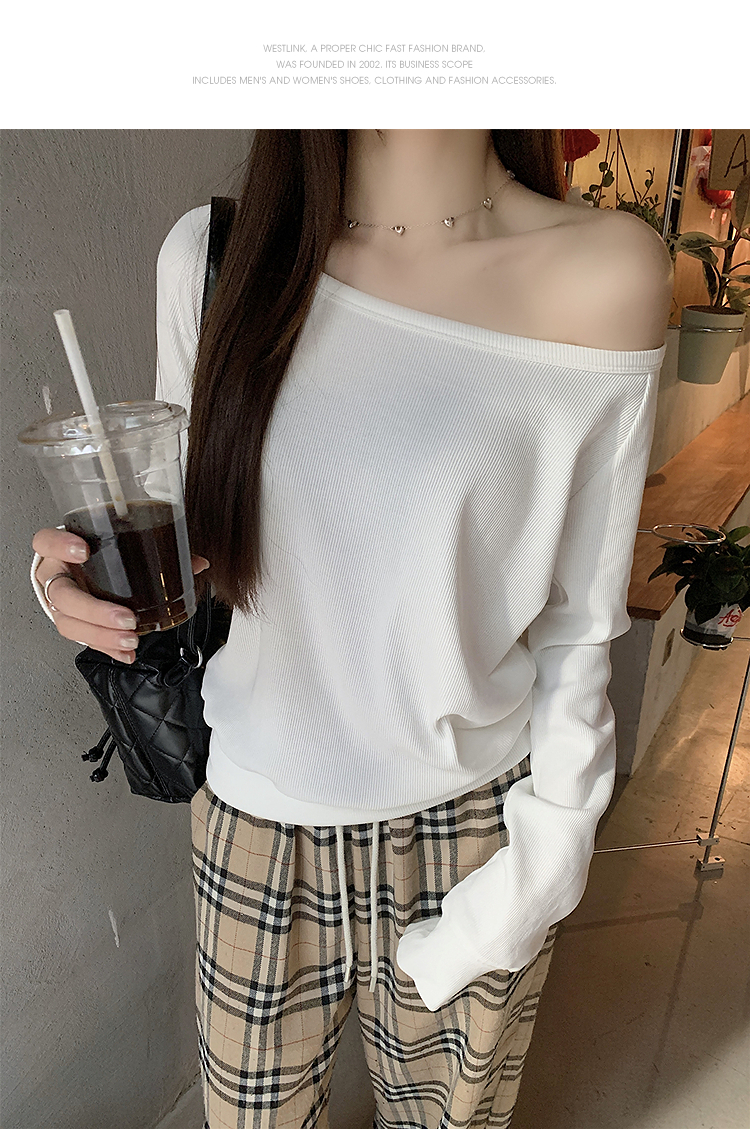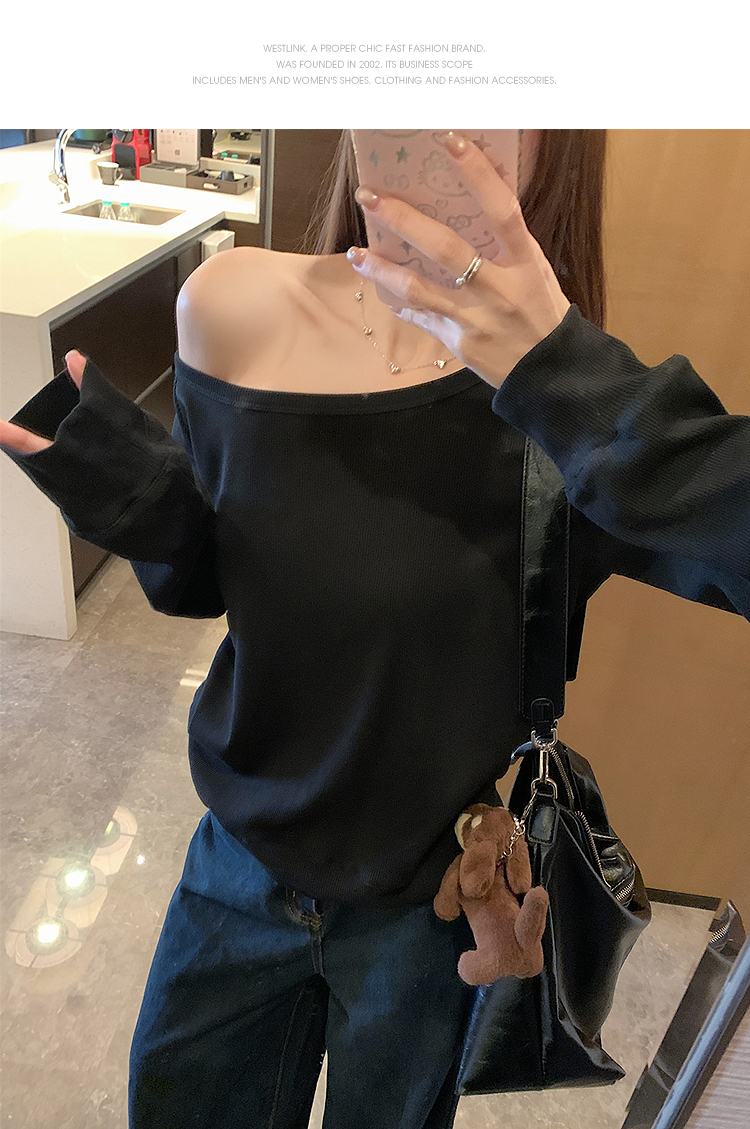 西遇宽松斜肩上衣女新款露肩内搭打底衫慵懒风长袖t恤SS150212