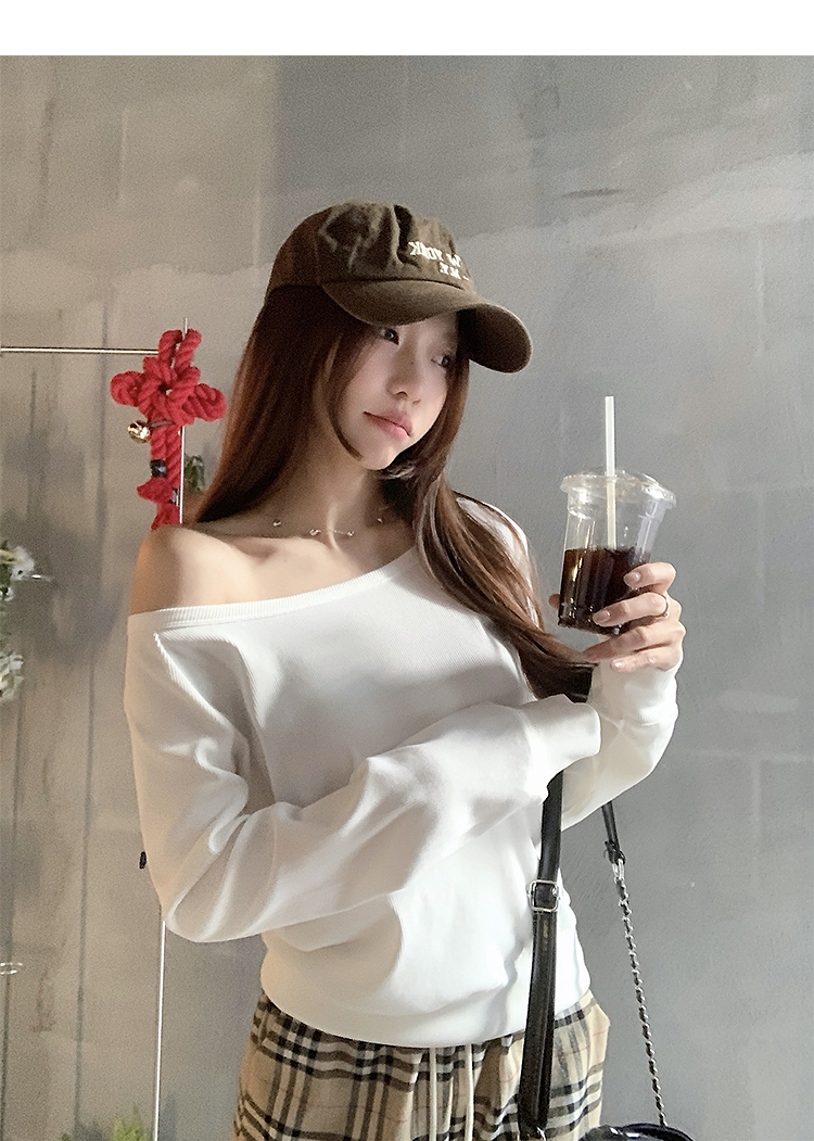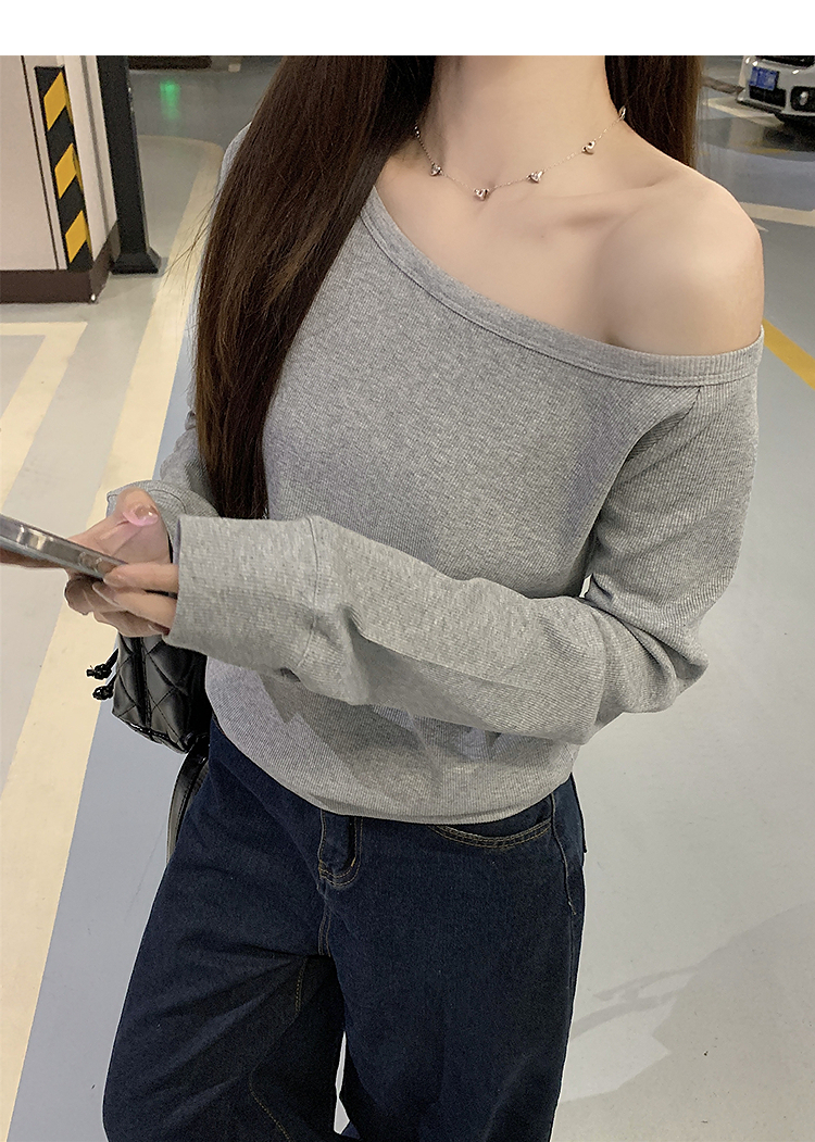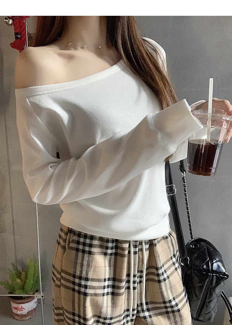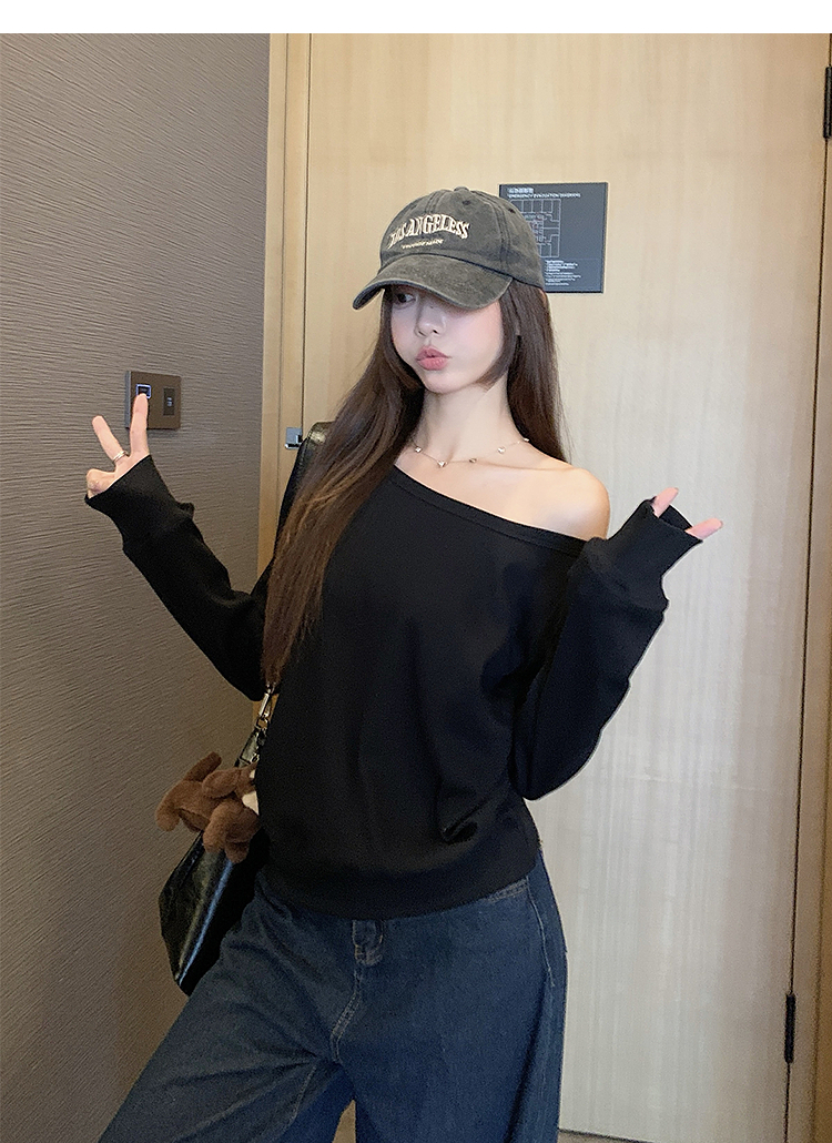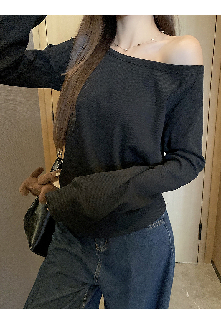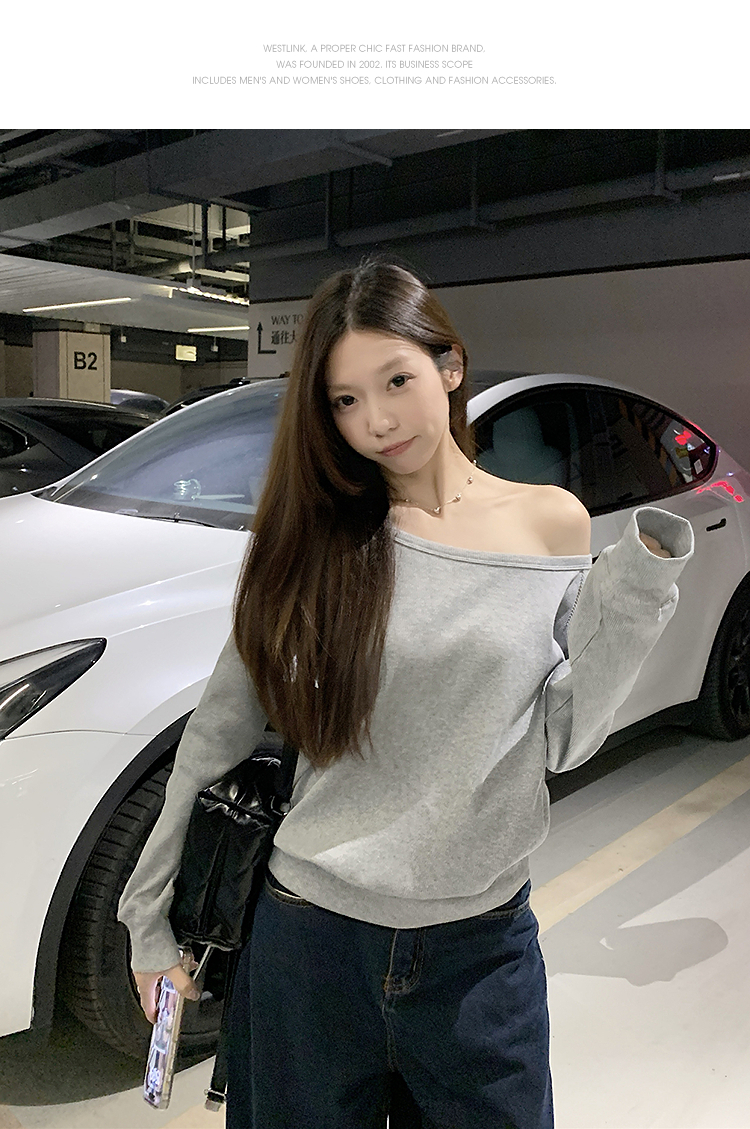 西遇宽松斜肩上衣女新款露肩内搭打底衫慵懒风长袖t恤SS150212
