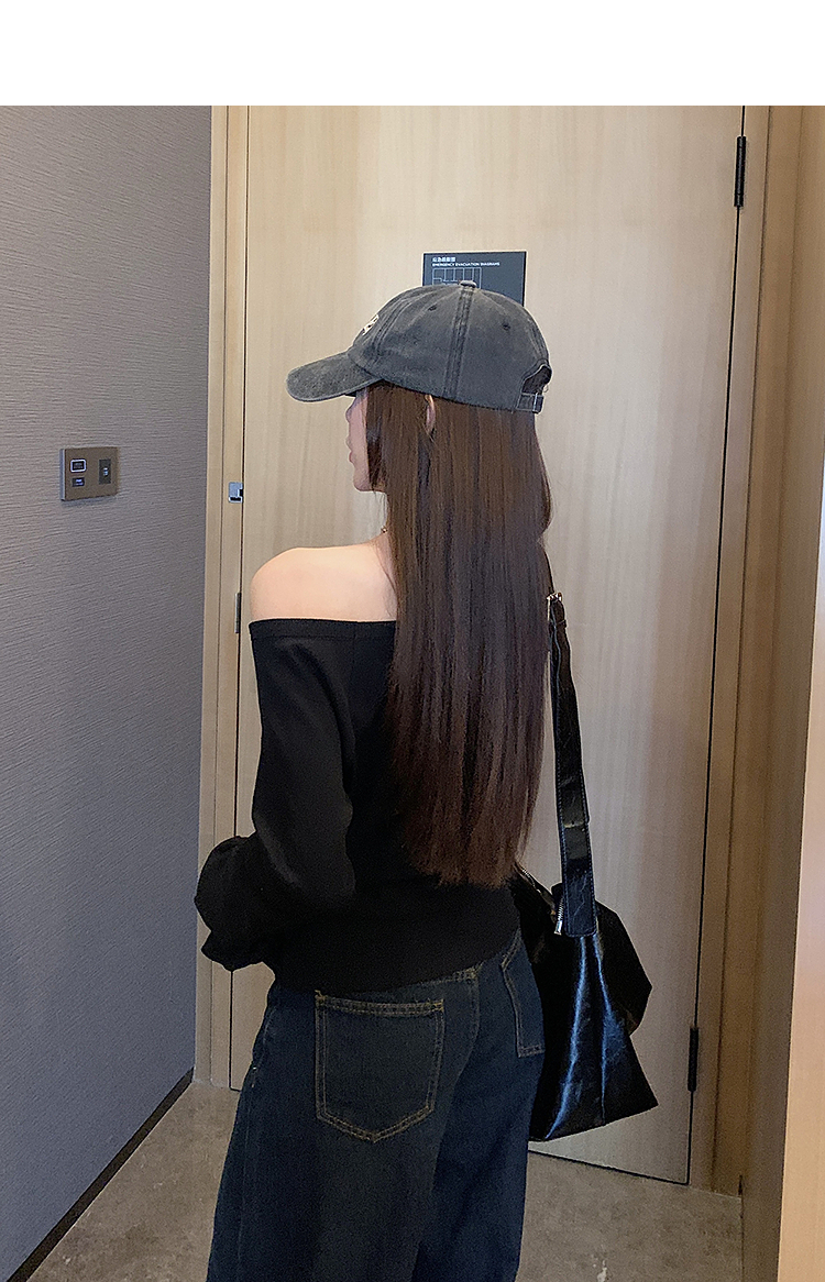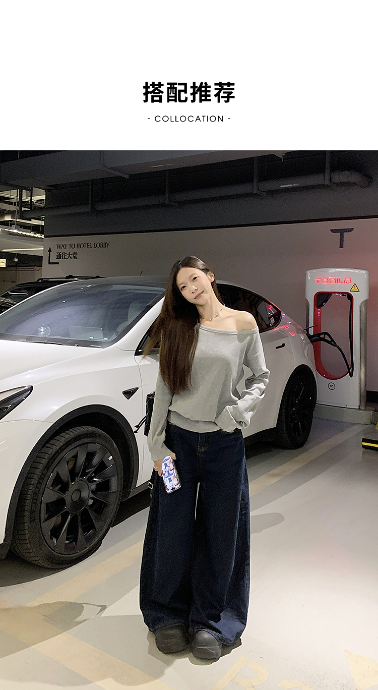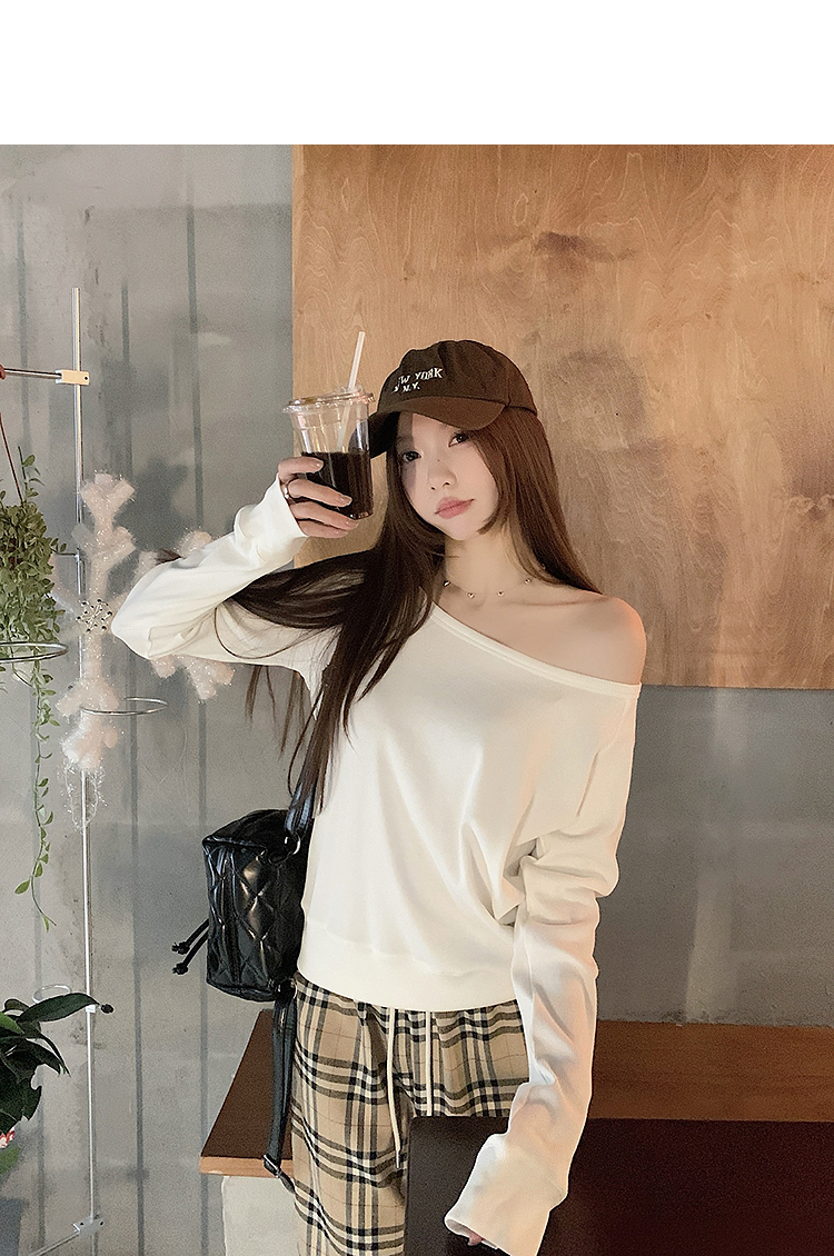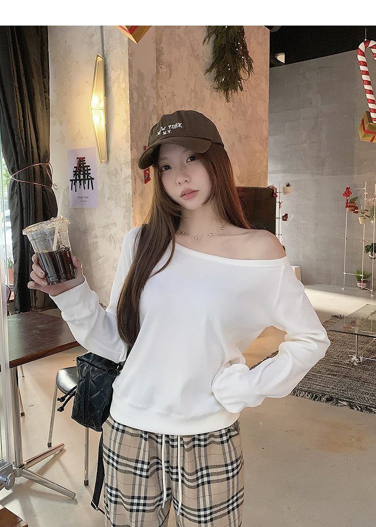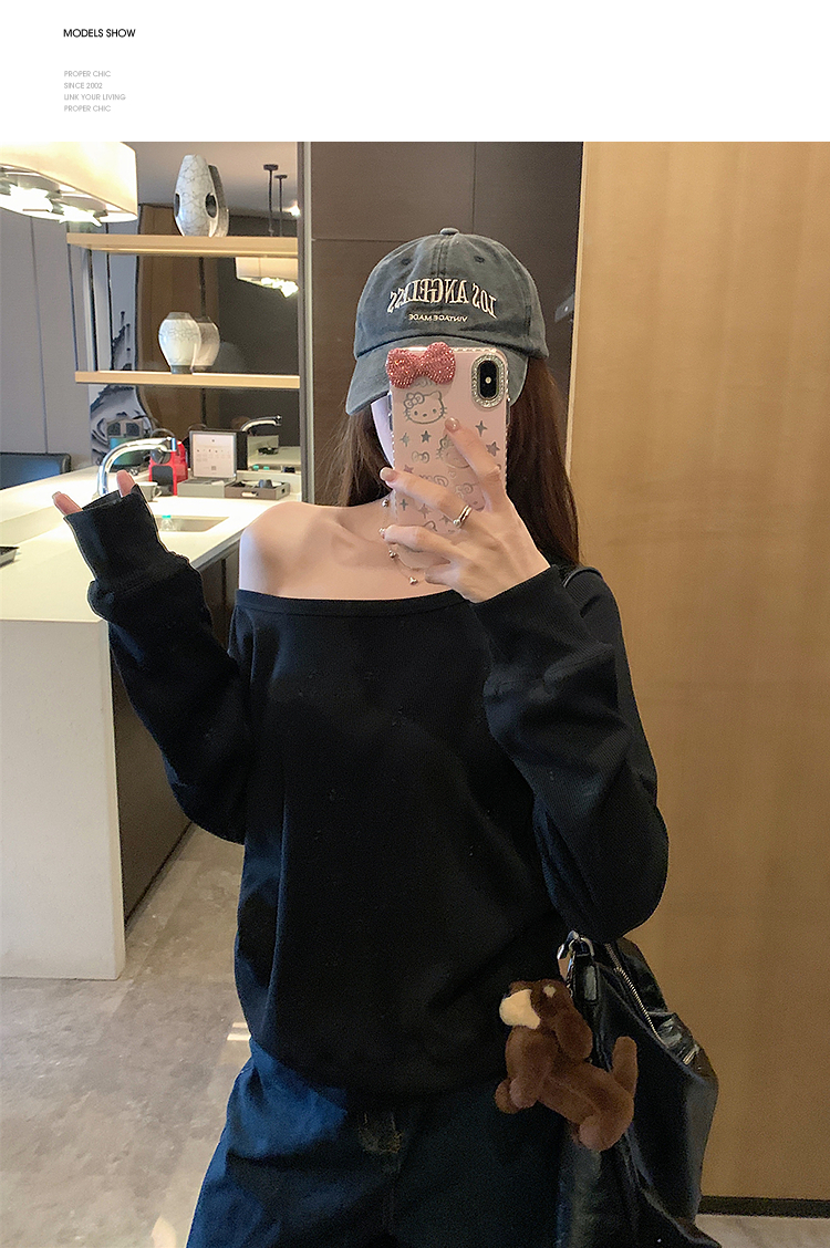 西遇宽松斜肩上衣女新款露肩内搭打底衫慵懒风长袖t恤SS150212