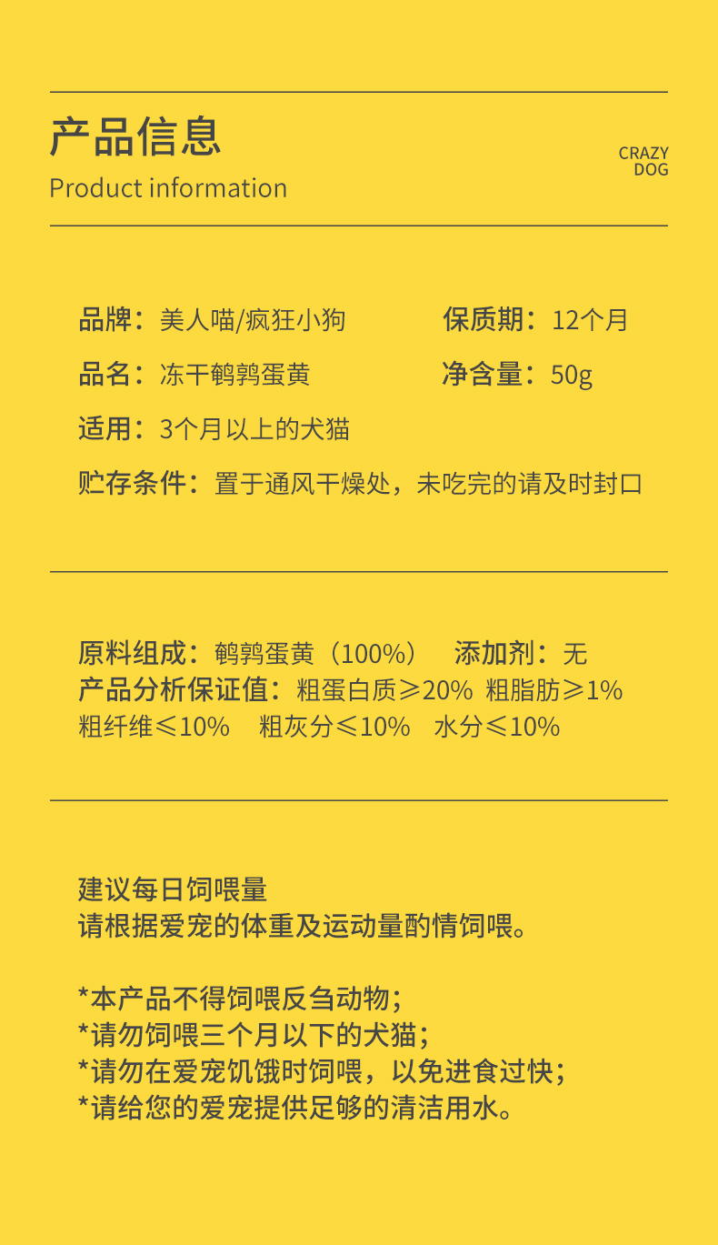 美人喵 犬猫零食 冻干鹌鹑蛋黄50g