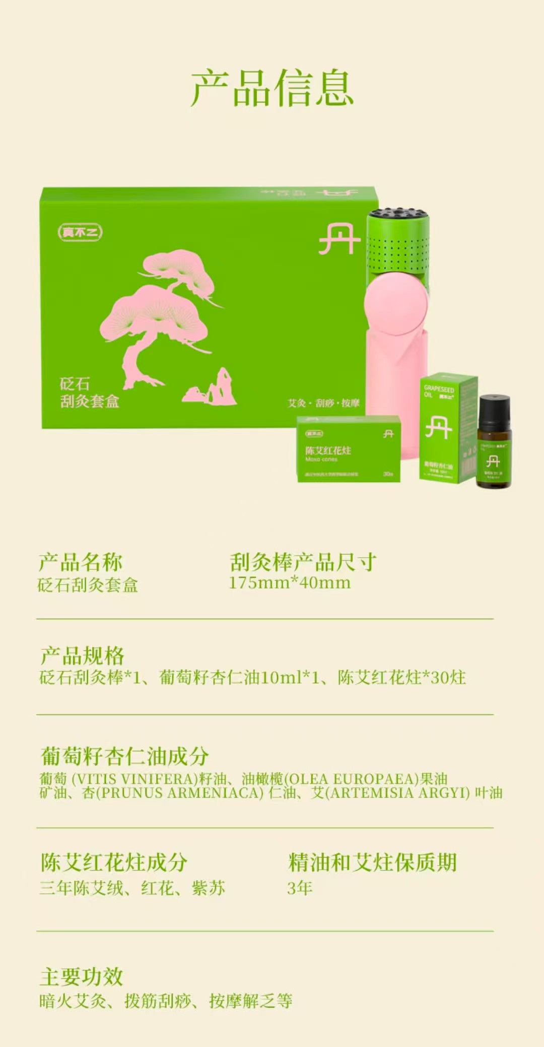 【产品名称】真不二刮灸仪套盒(内含仪器1台+艾柱30颗+精油ml)