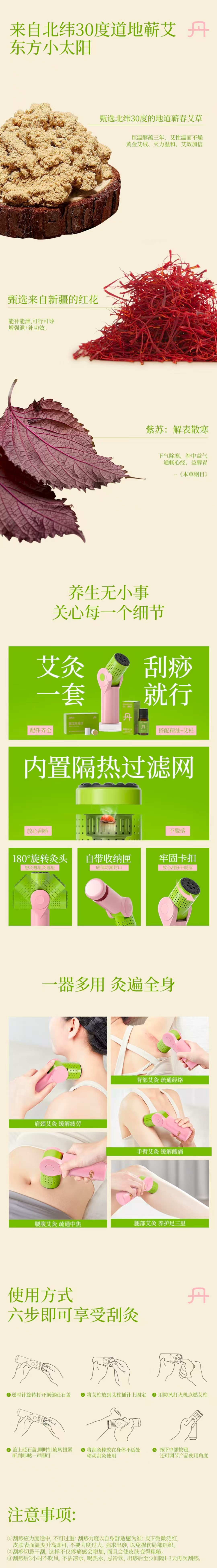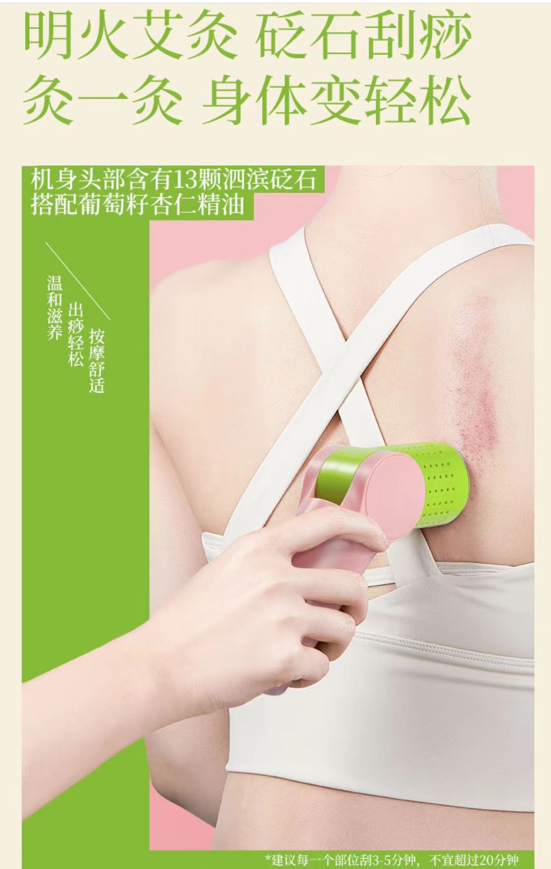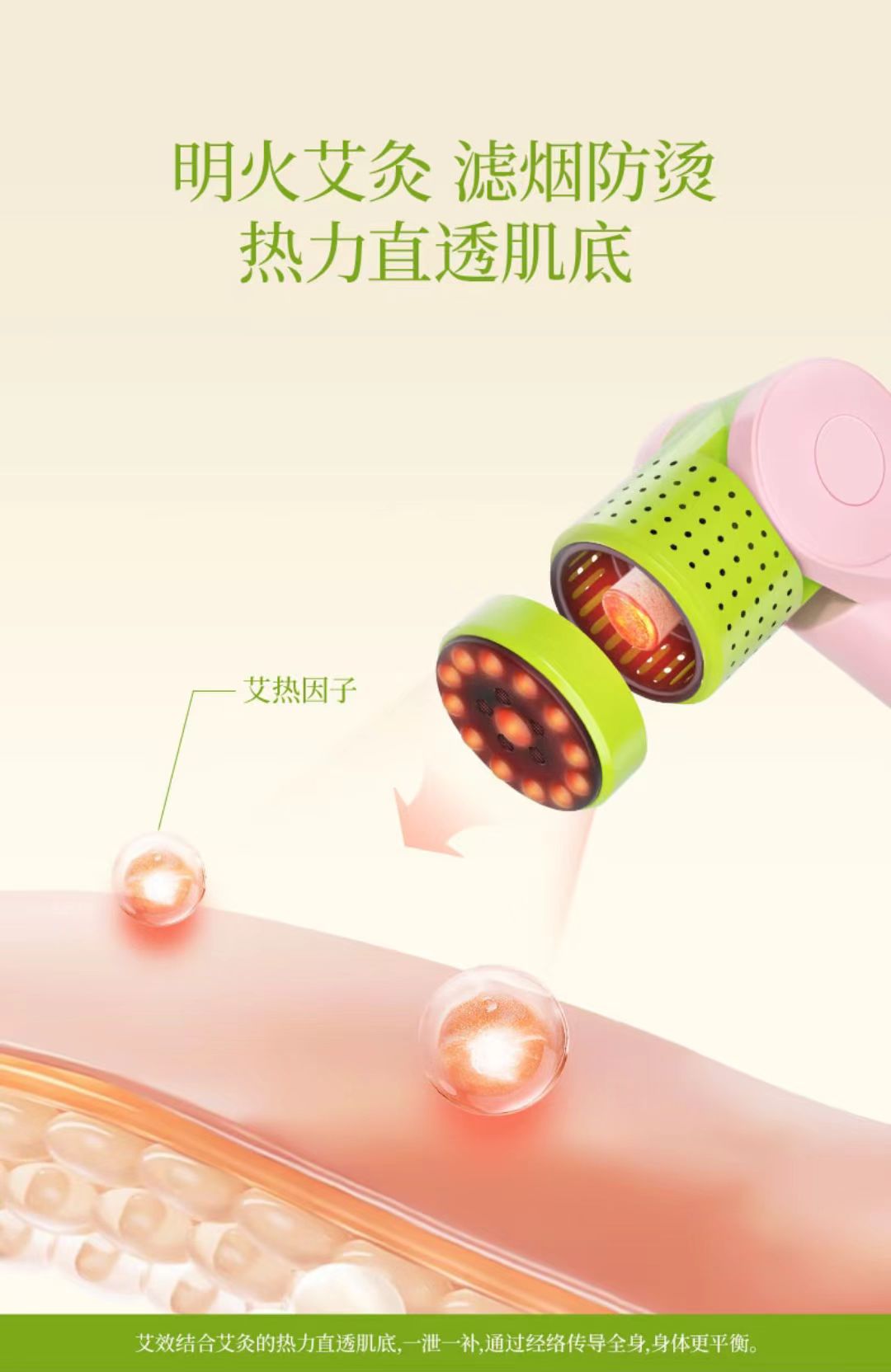 粉绿艾灸套盒包含:艾灸仪器1台➕艾柱30颗➕葡萄籽精油10ml➕刮灸指南